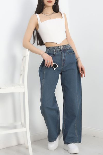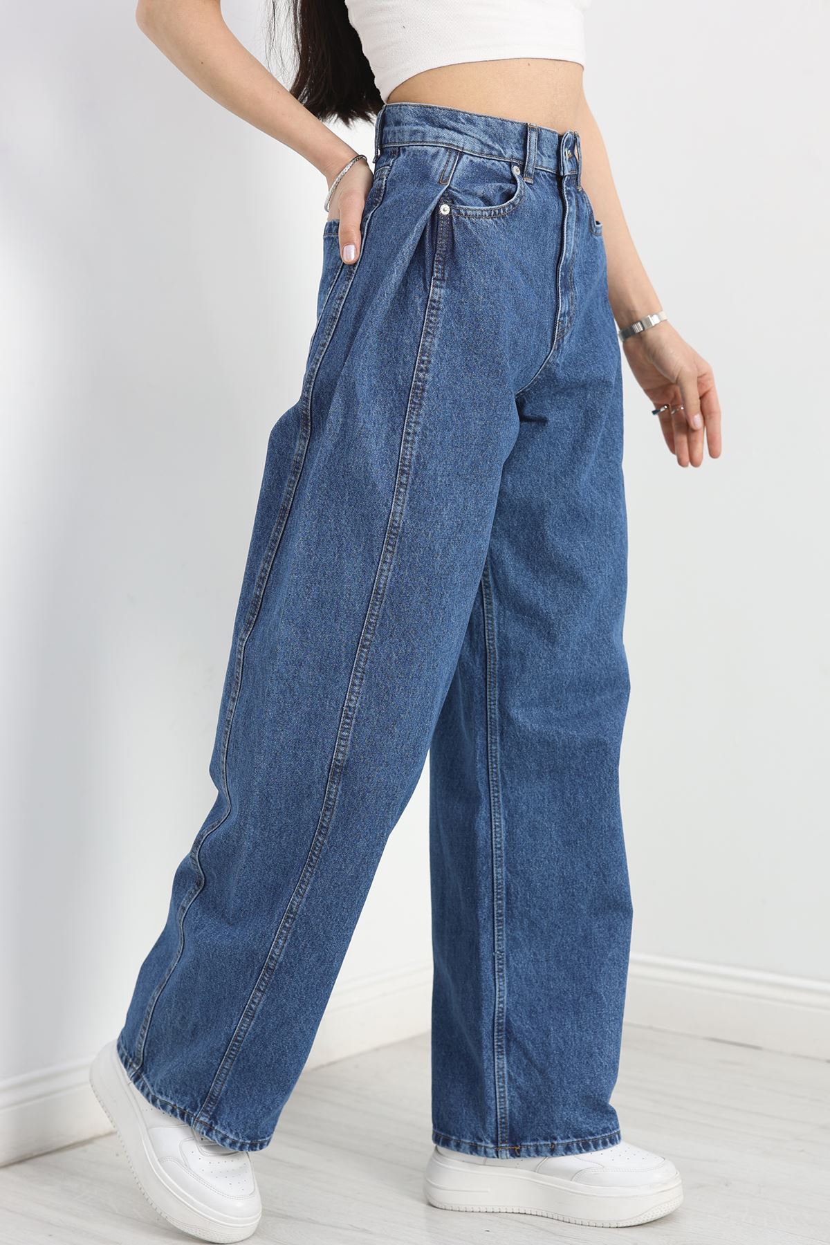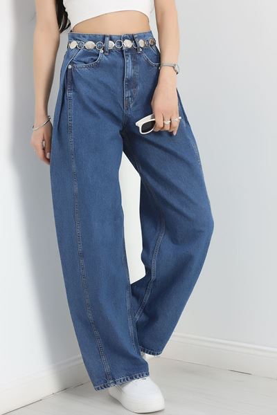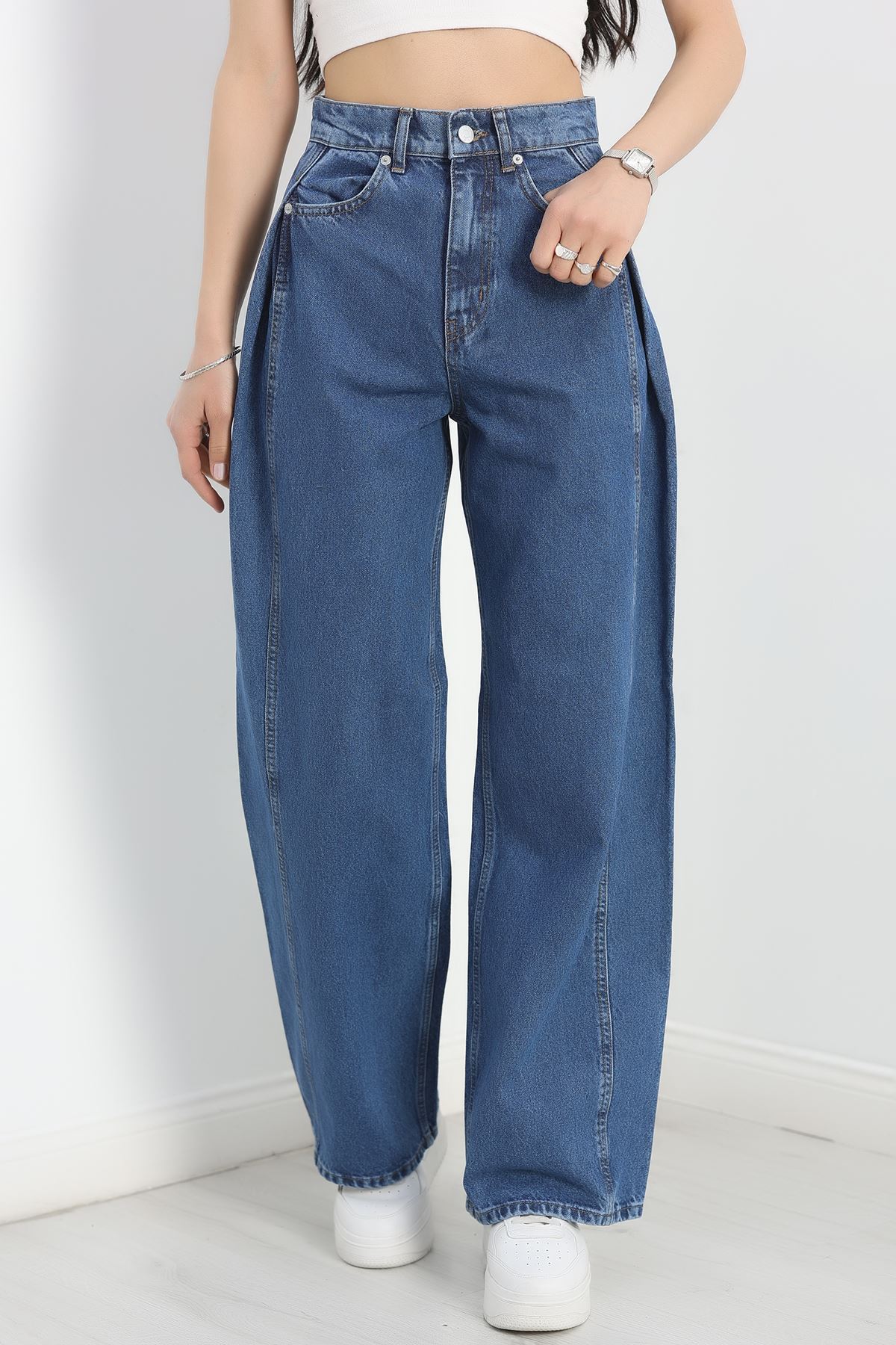 Büzgü Detaylı Baggy Kot Pantolon Lacivert - 30434.1966.