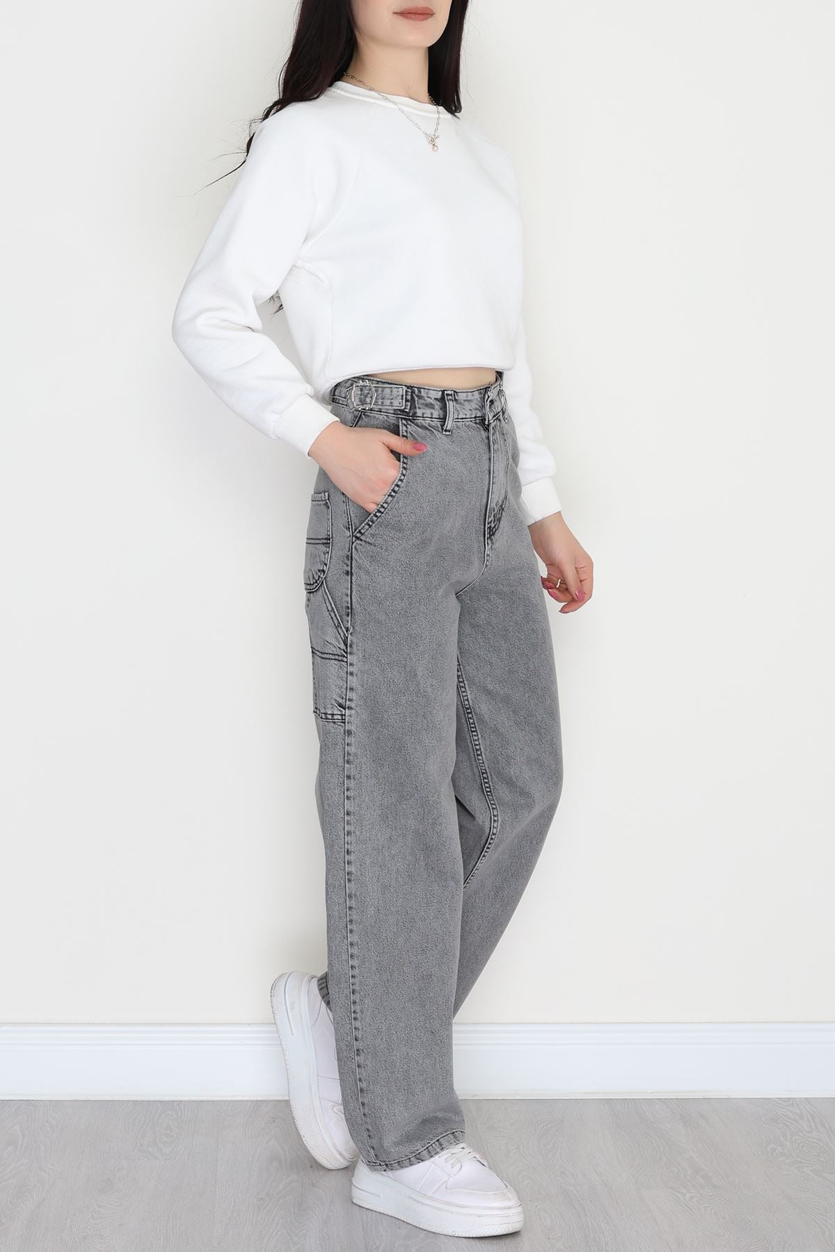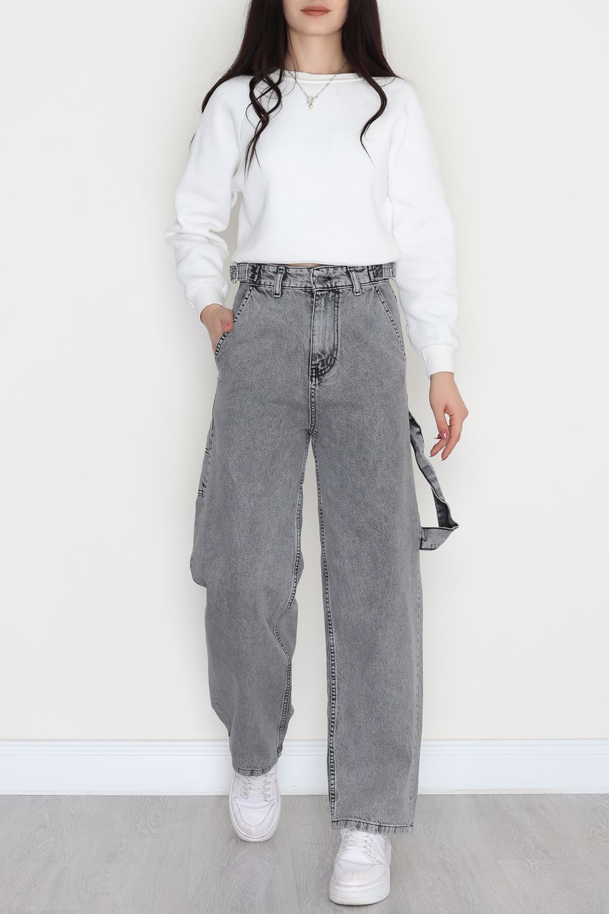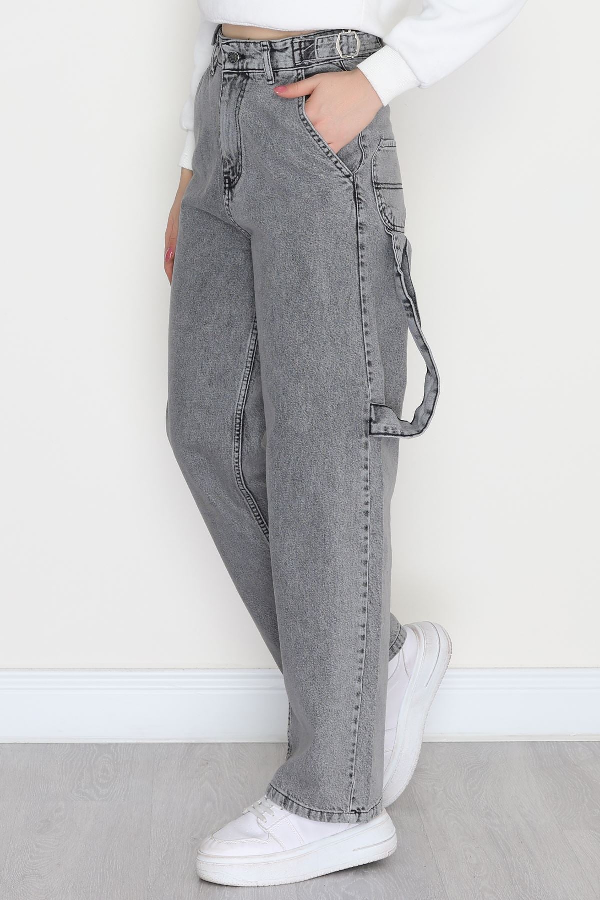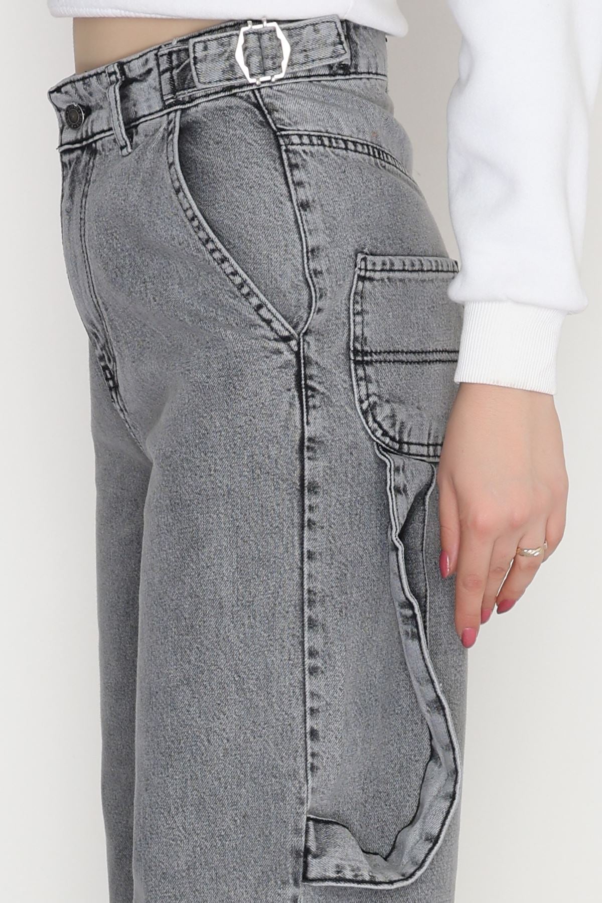 Carpenter Detaylı Baggy Kot Pantolon Gri - 31516.2001.