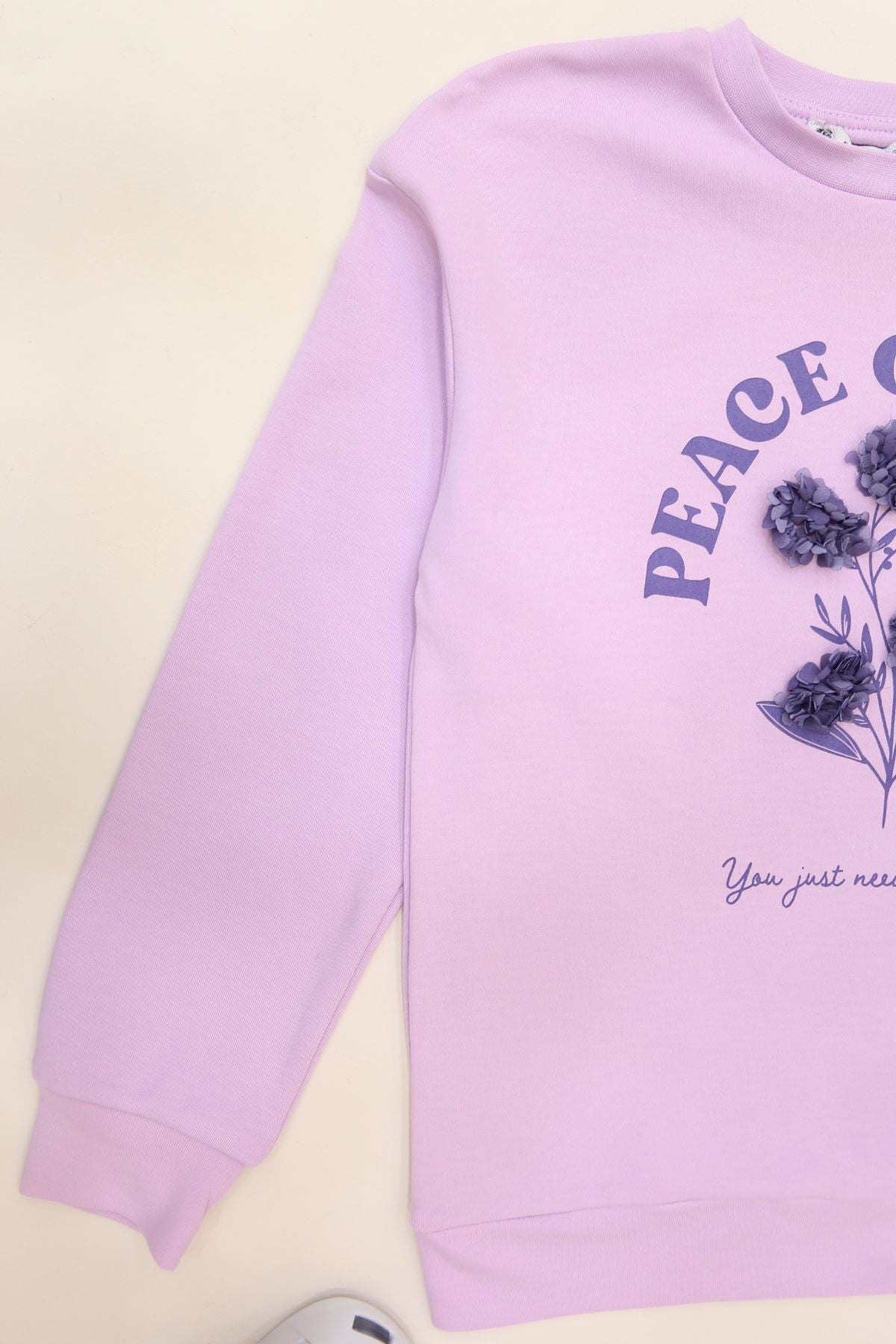 Çiçek Baskılı 8-12 Yaş Çocuk Sweatshirt Lila - 724869.1576.