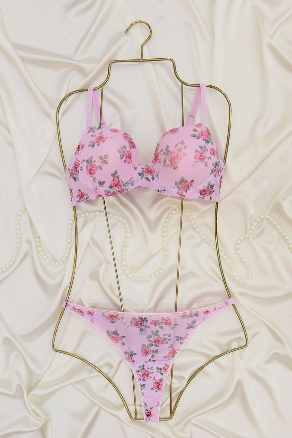 Çiçek Baskılı Tül Takım Dolu Kap Pembe - 2563.1783.