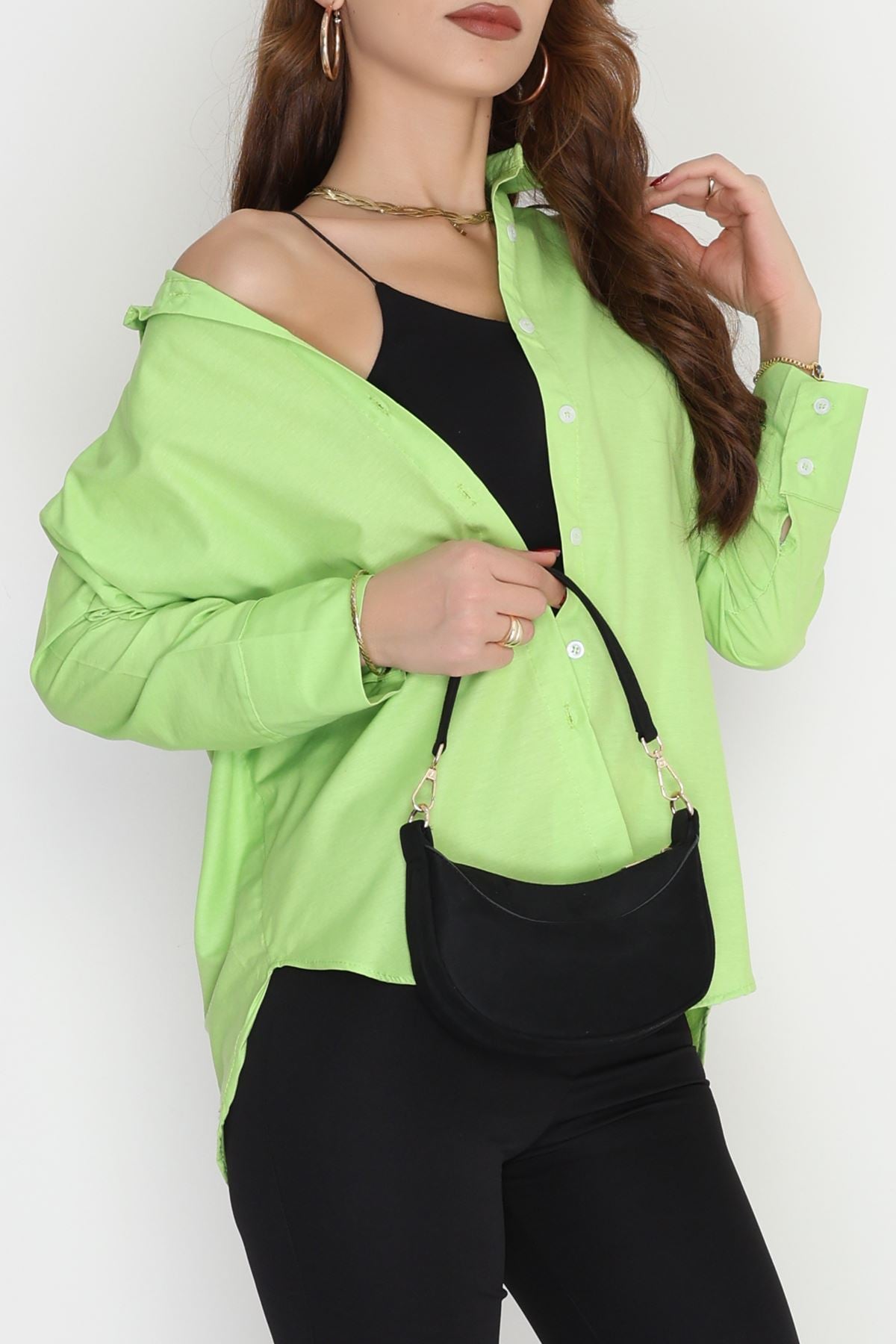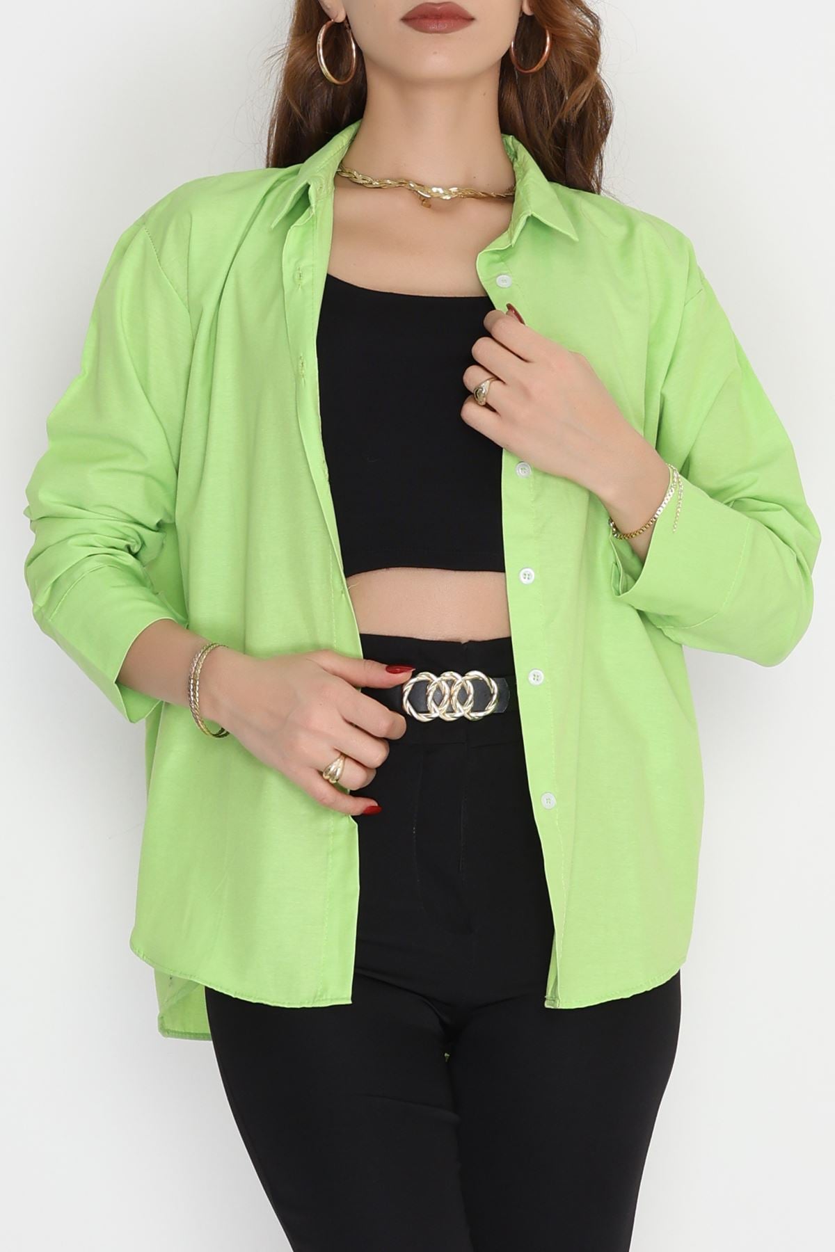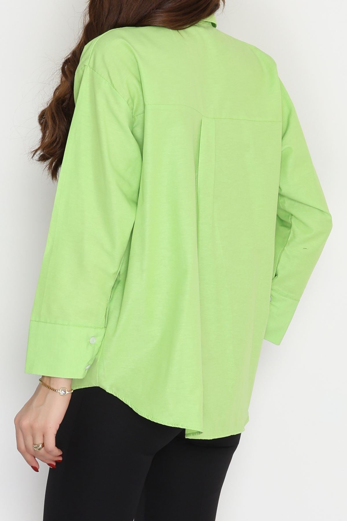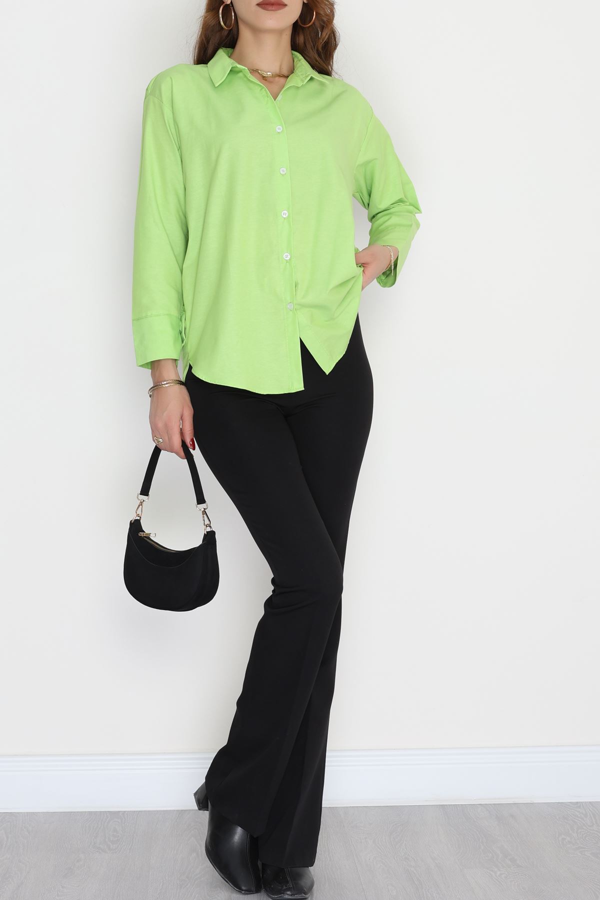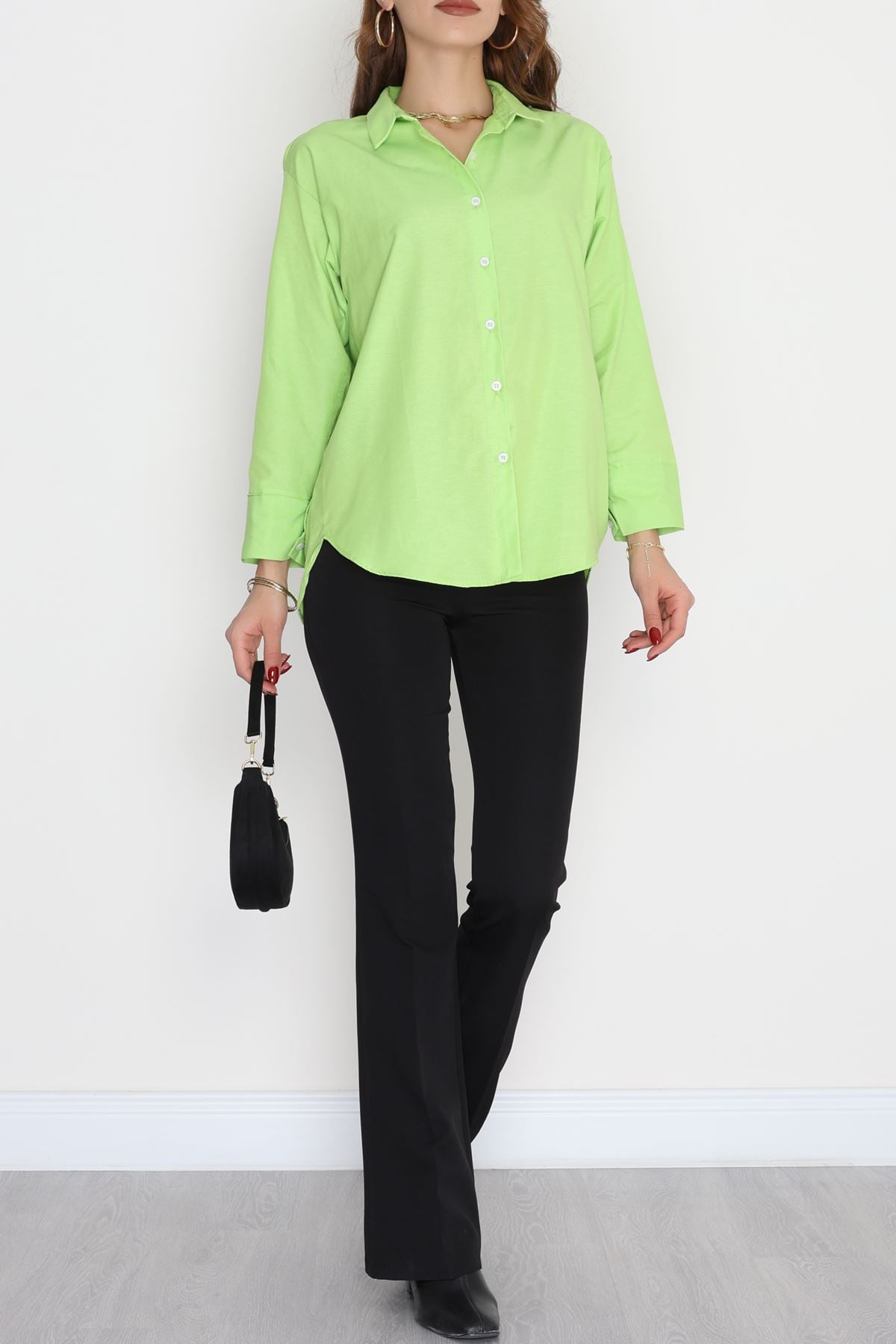Çift Düğme Manşetli Terikoton Gömlek Fıstıkyeşili - 90157.1949.