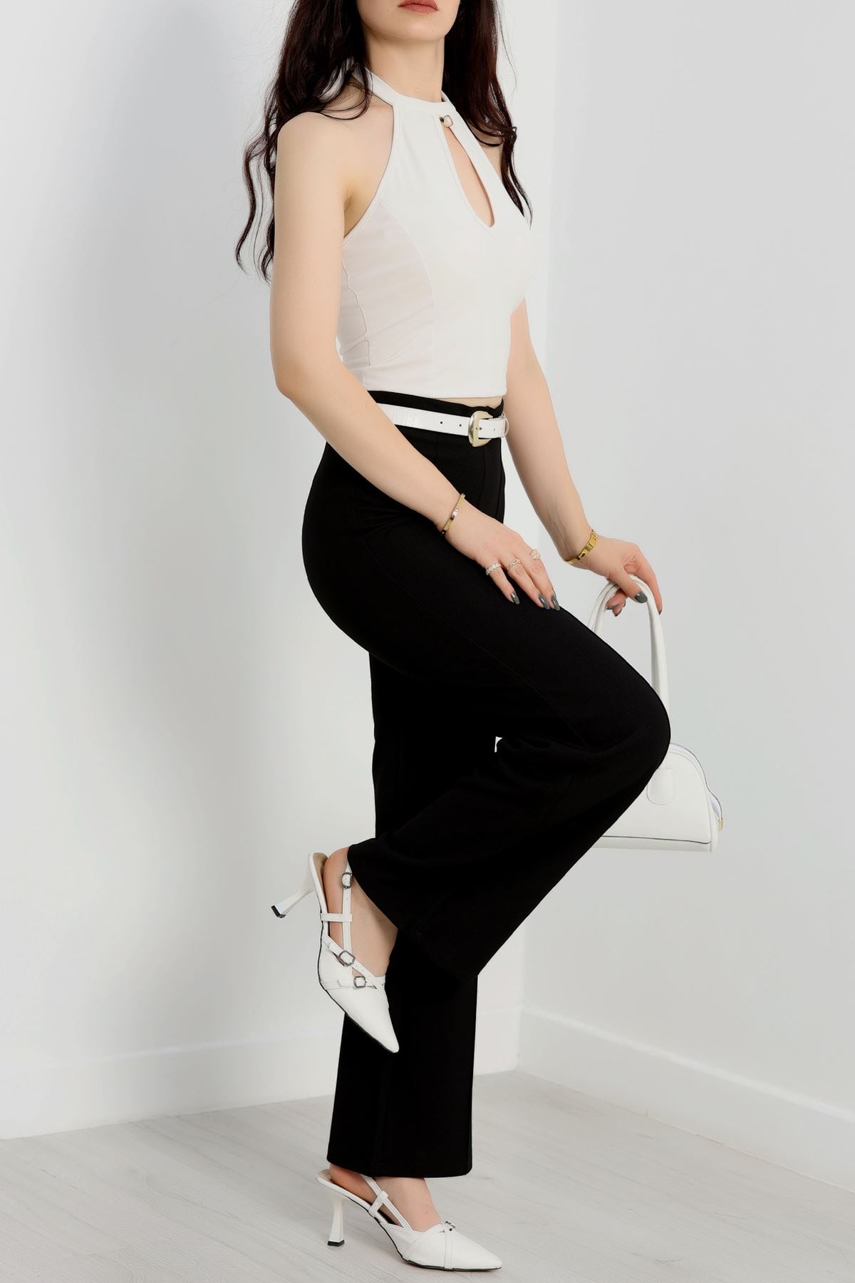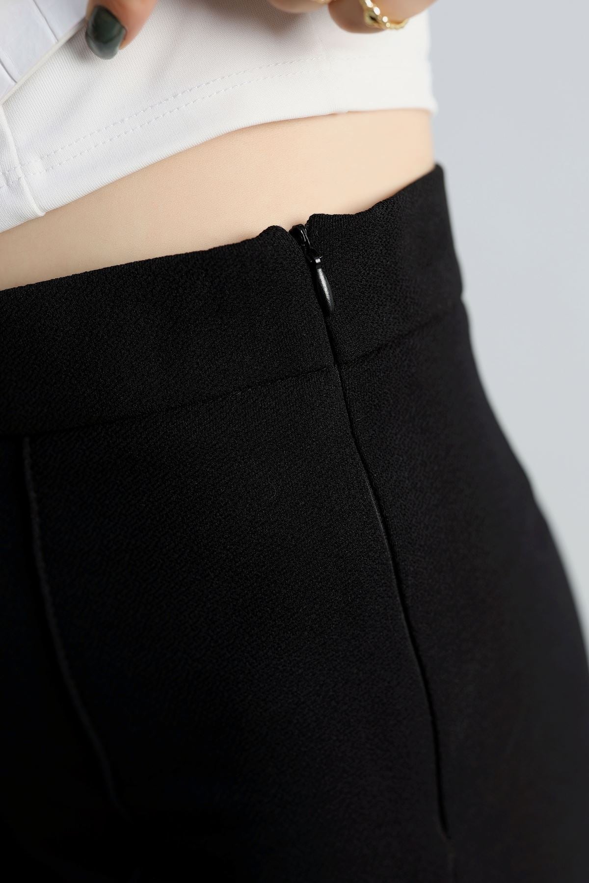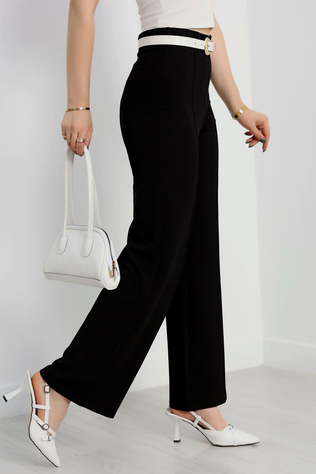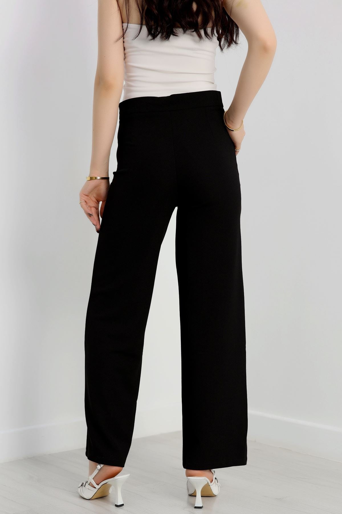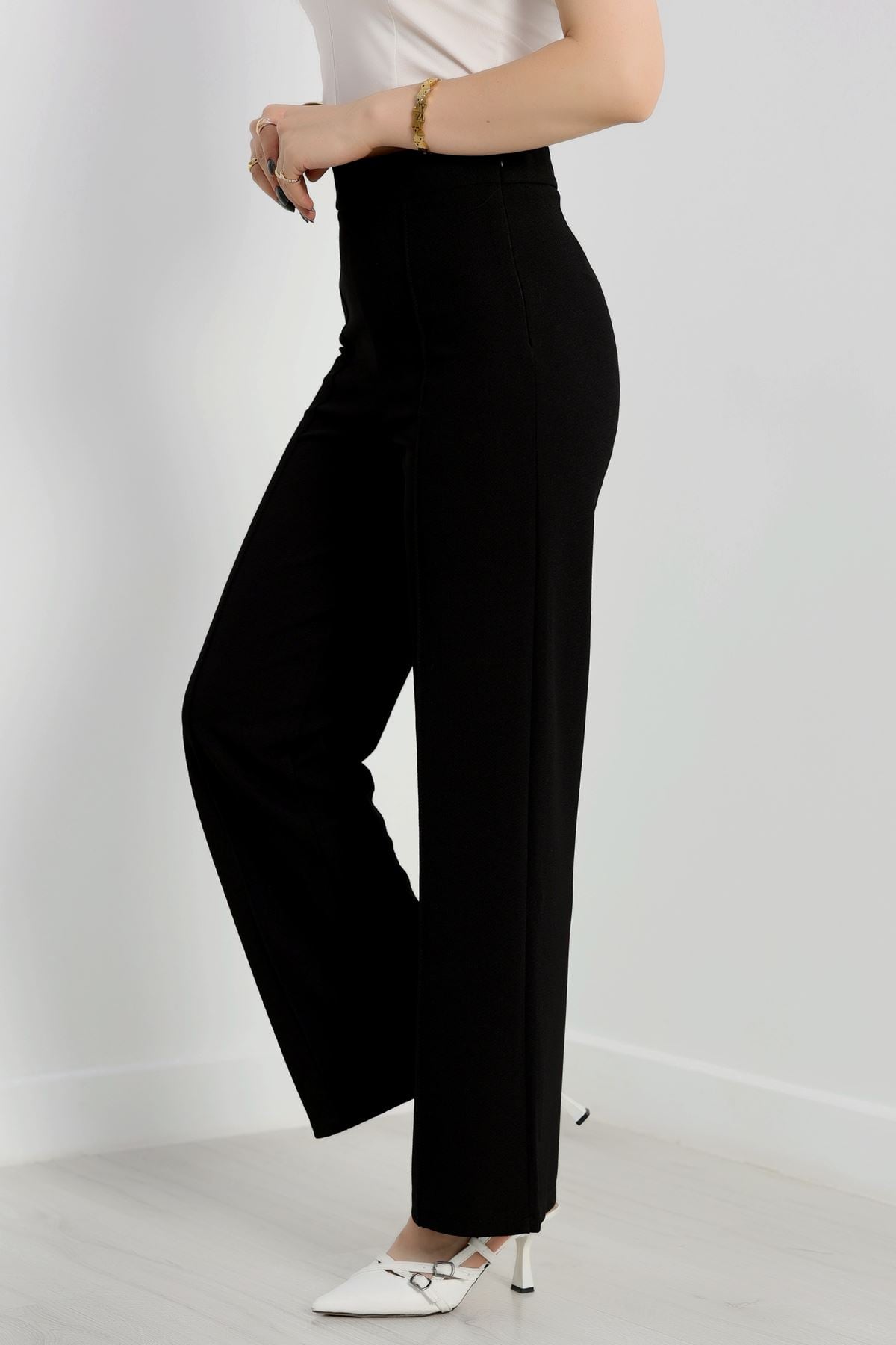 Yan Fermuarlı Çımalı En Boy Likra Palazzo Pantolon Siyah - 2133.1865.