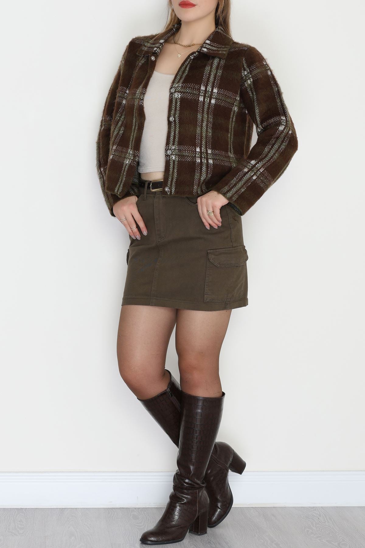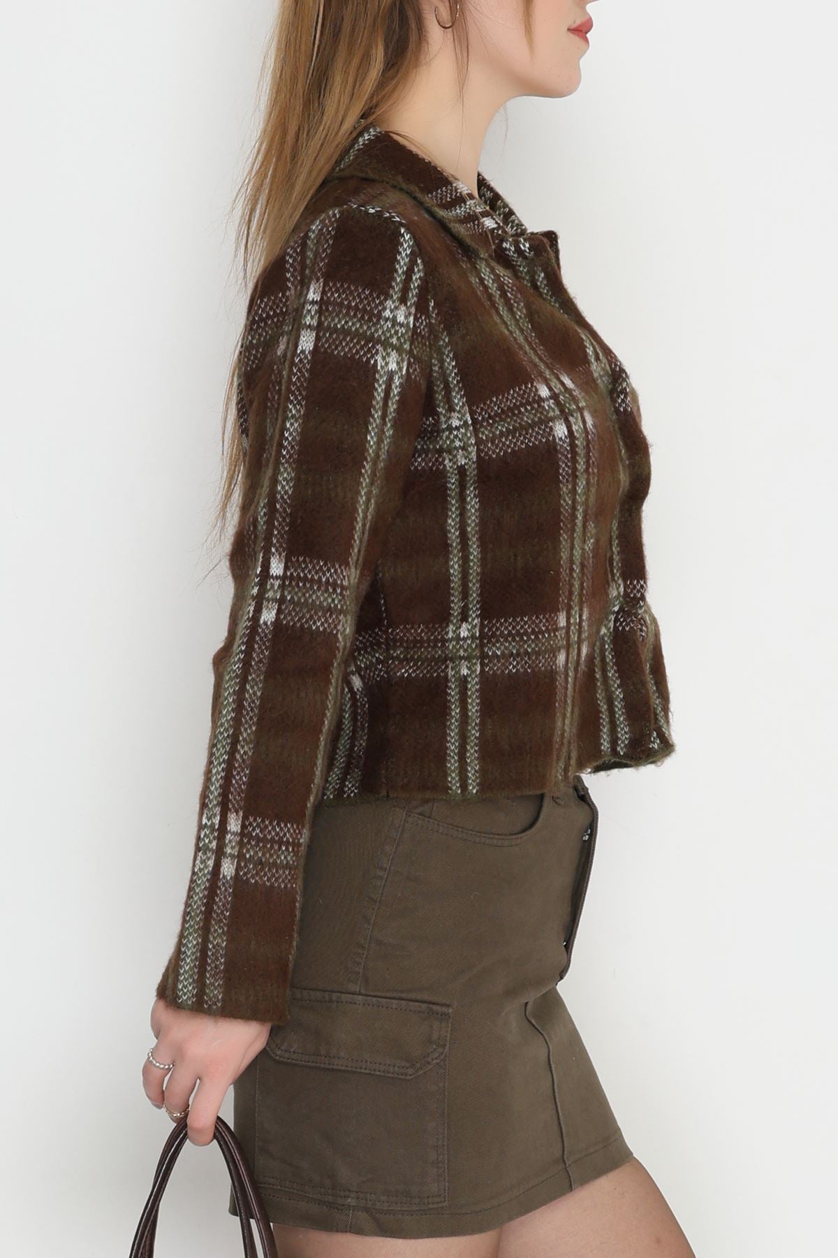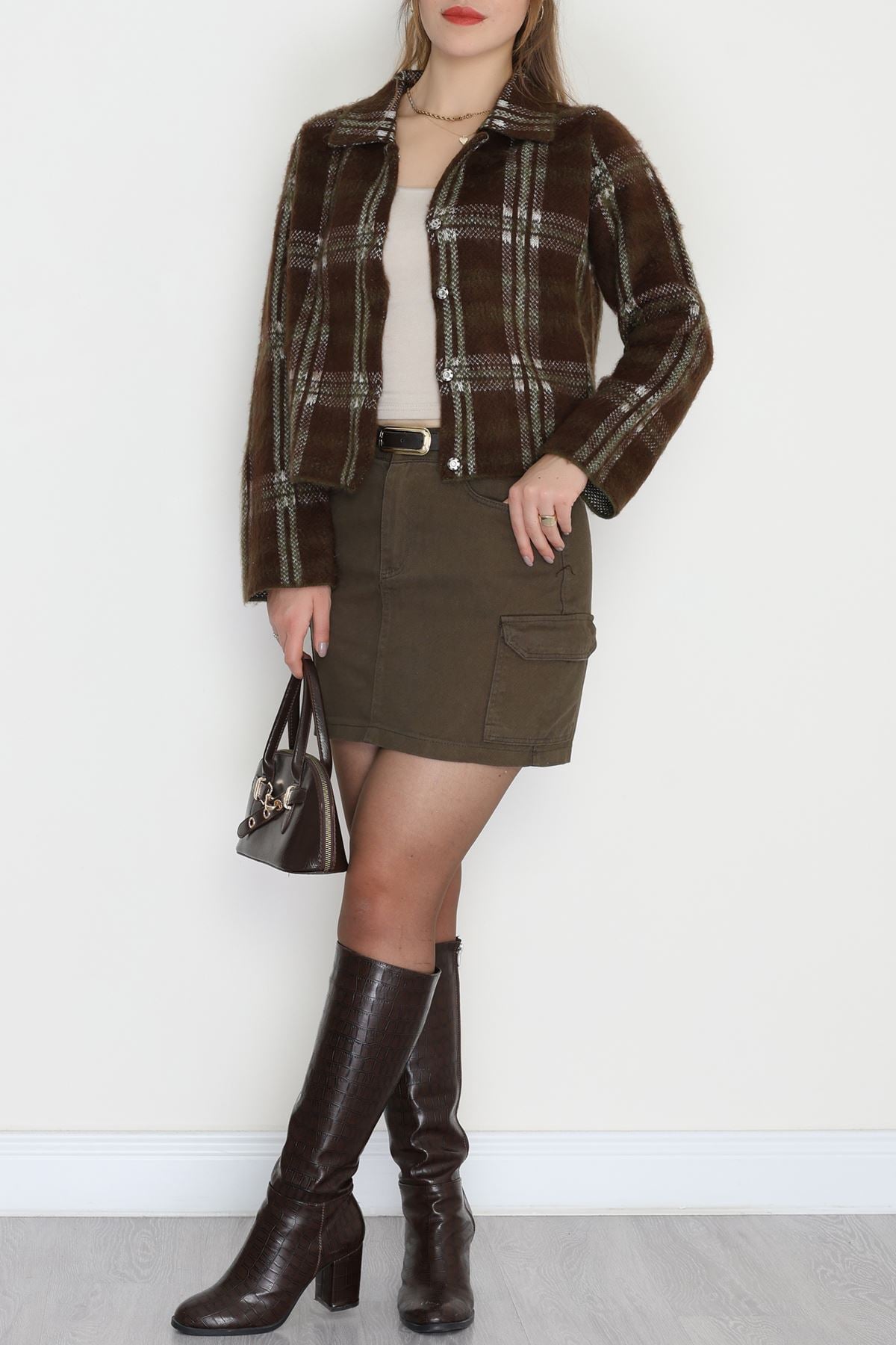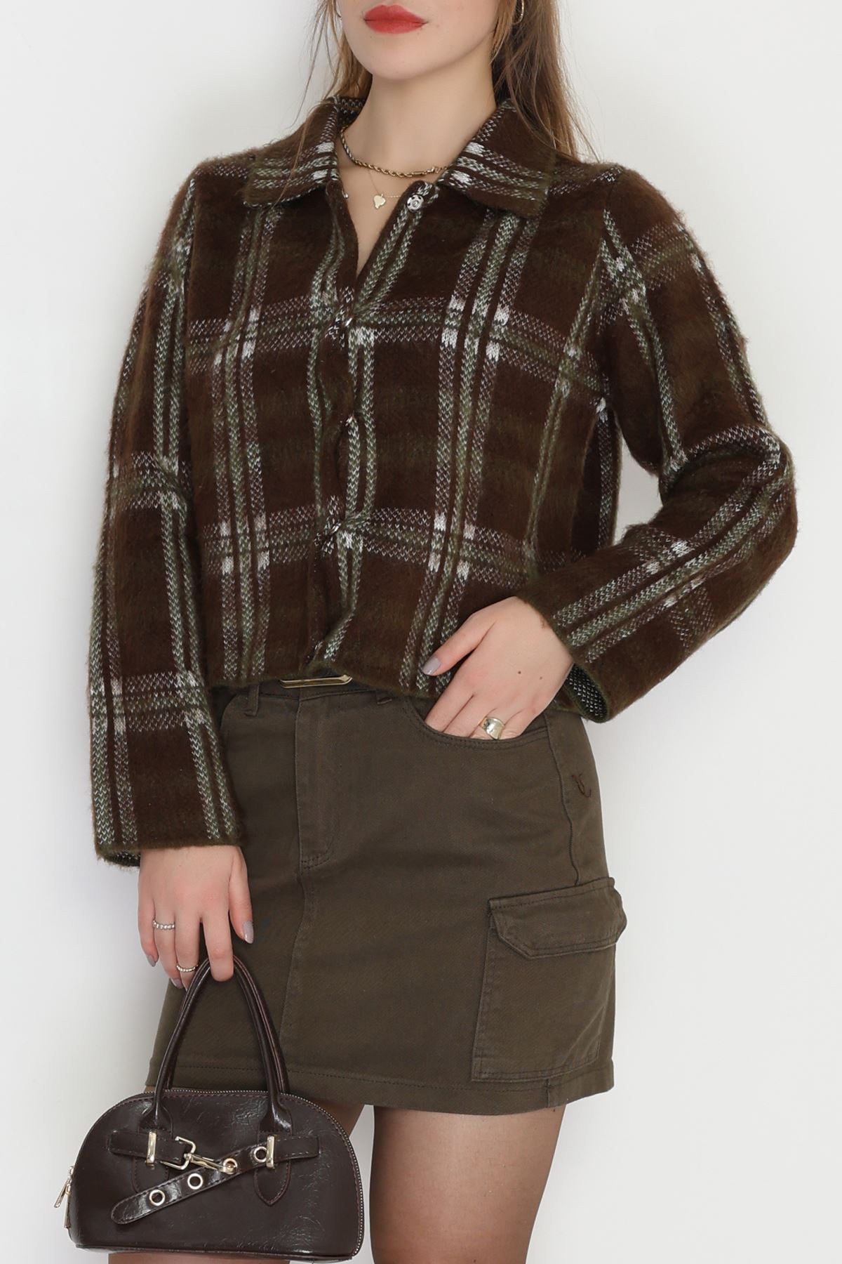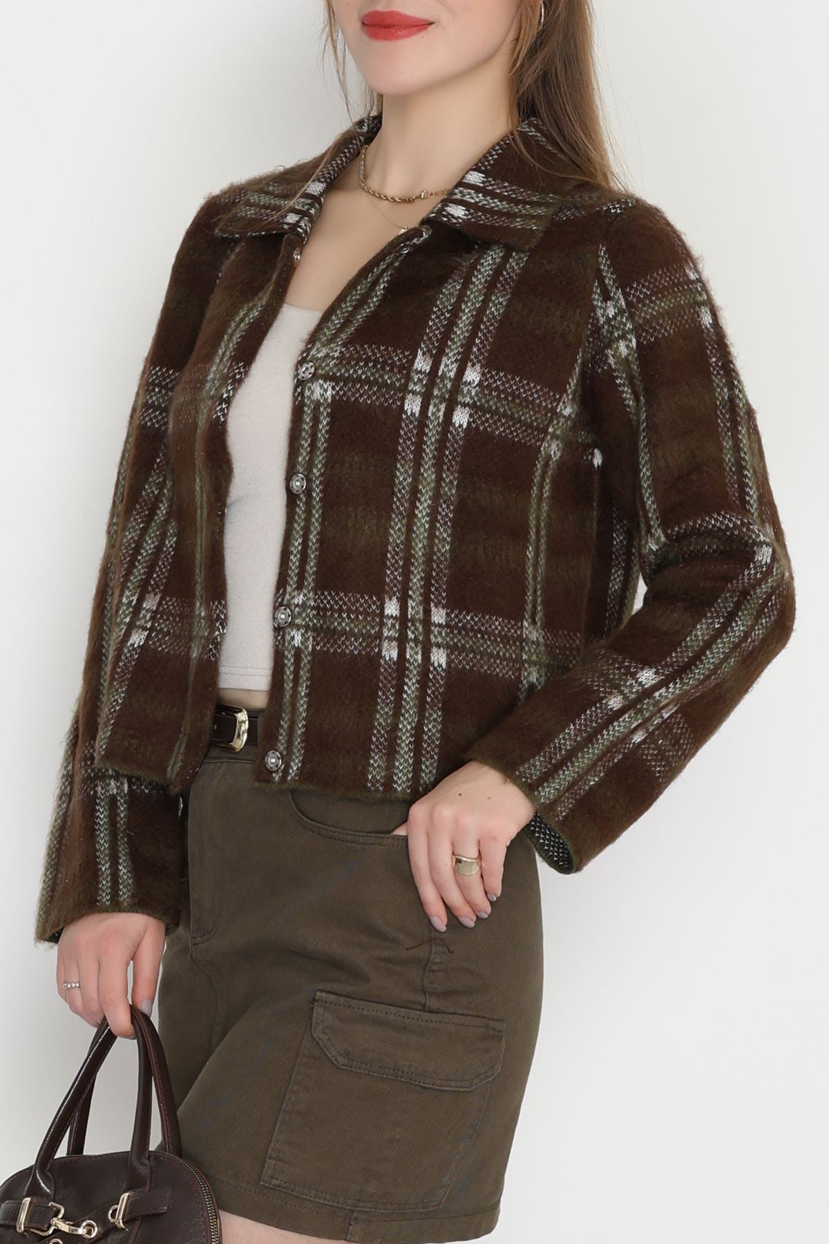 Çıtçıtlı Ekose Desen Hırka Kahve - 31537.1437.