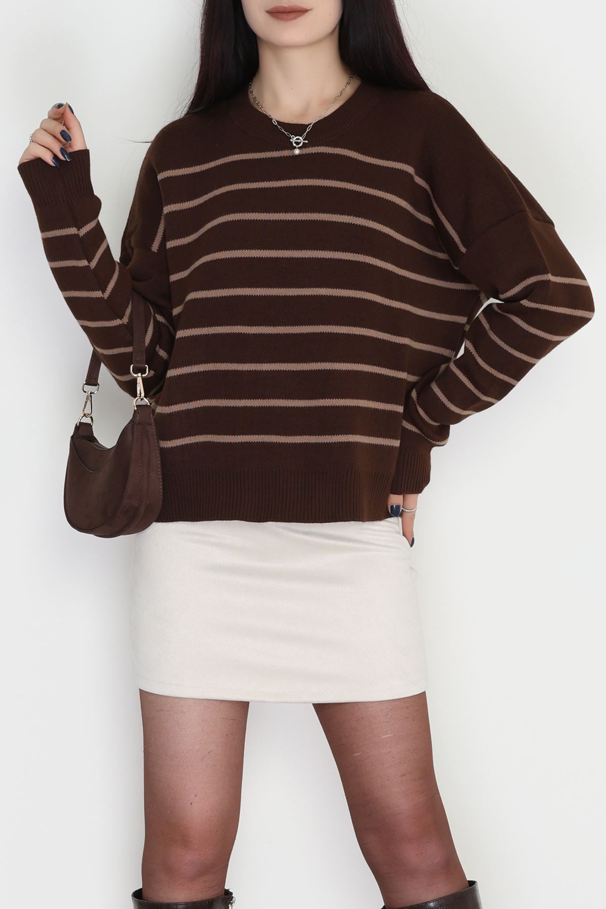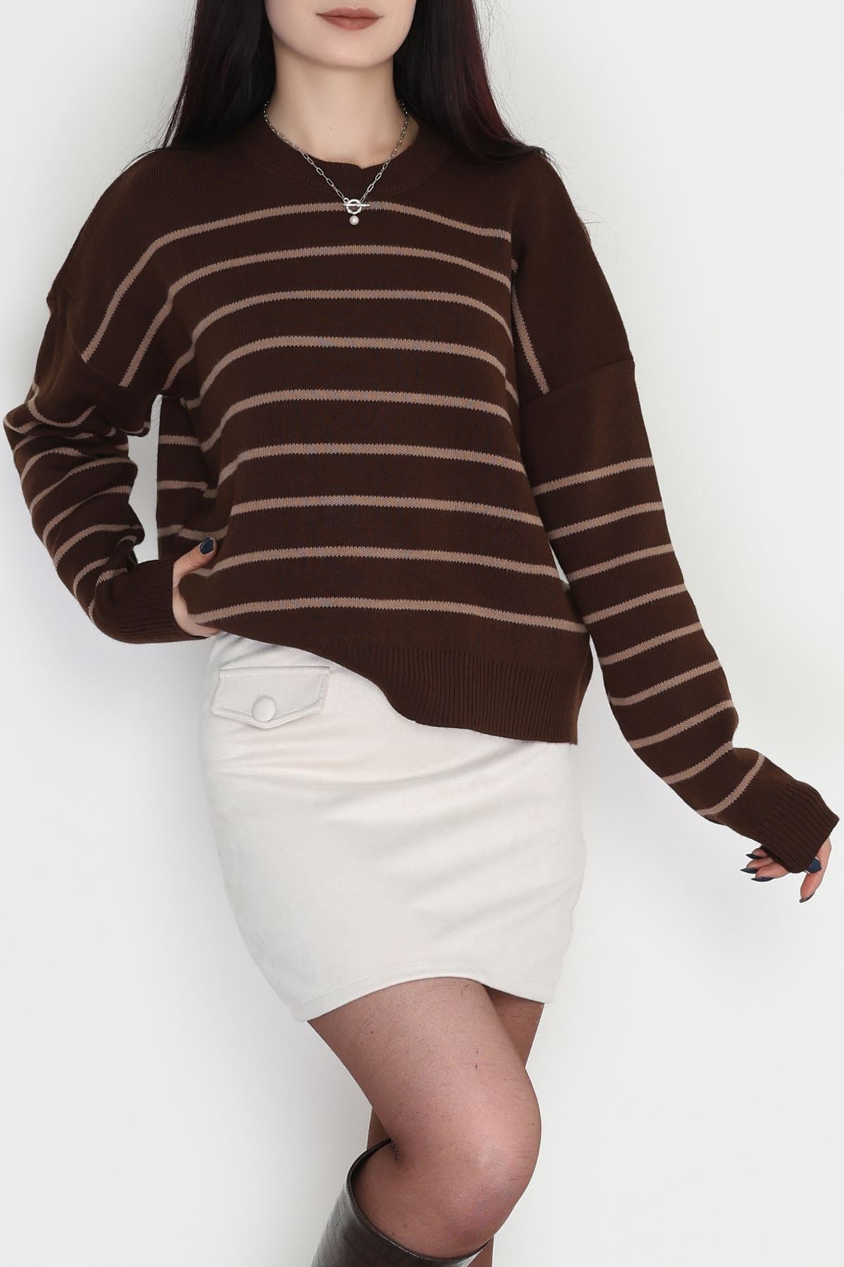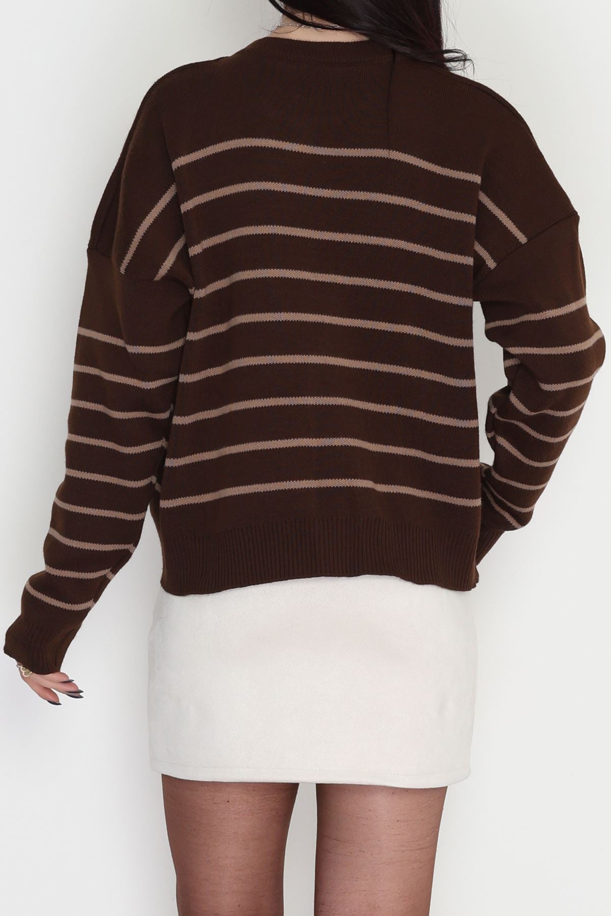 Çizgili Bisiklet Yaka Triko Kahvemocha - 3099.1577.