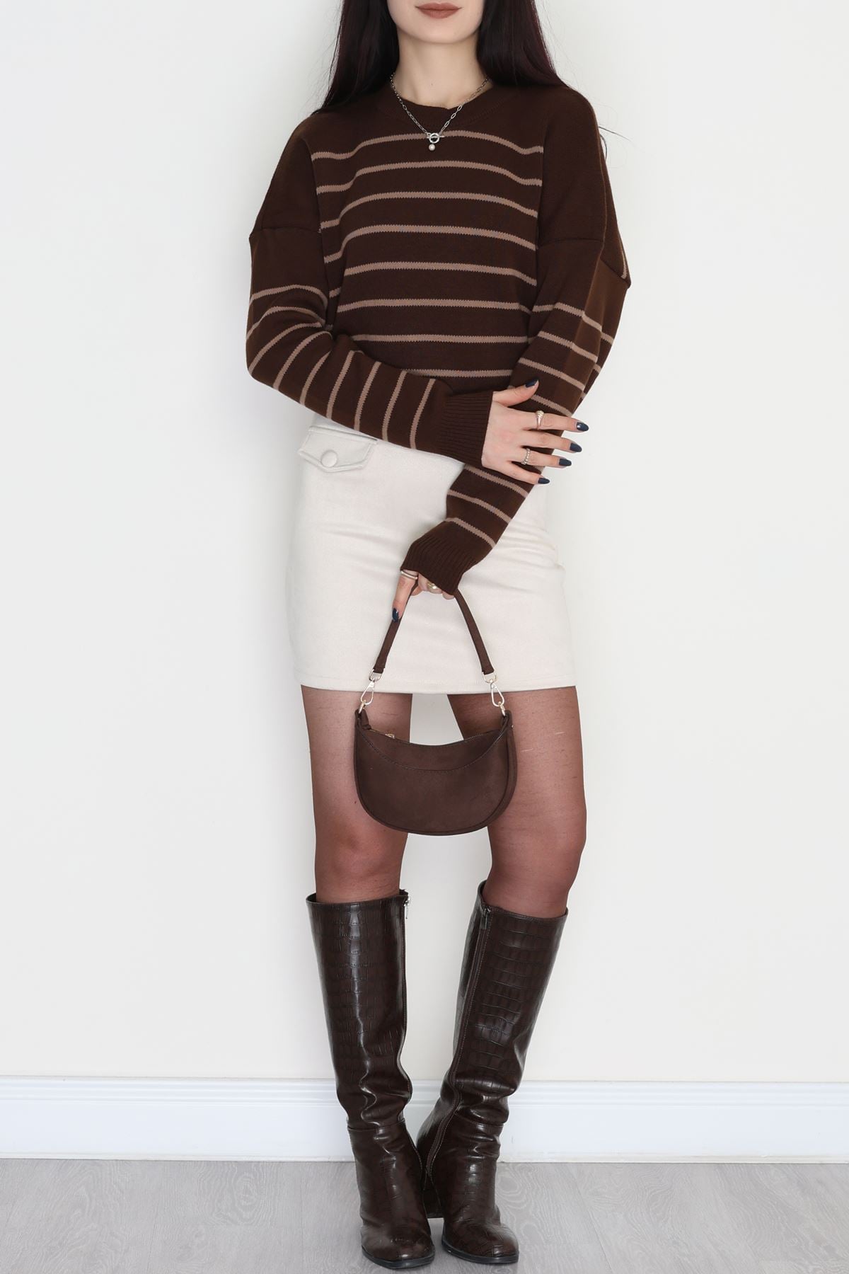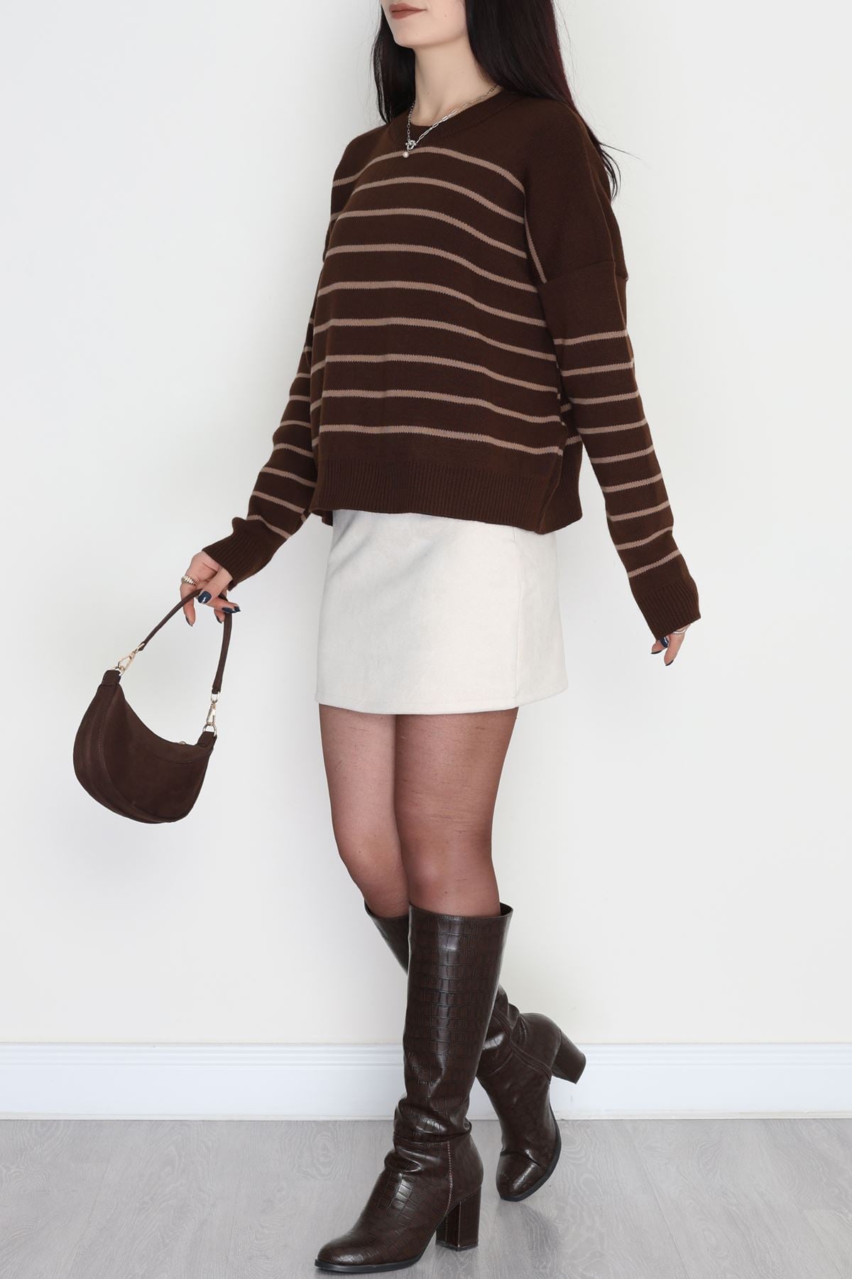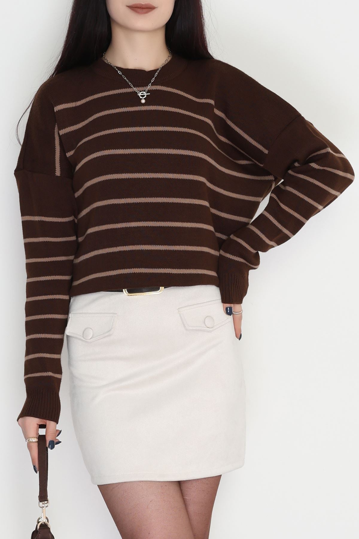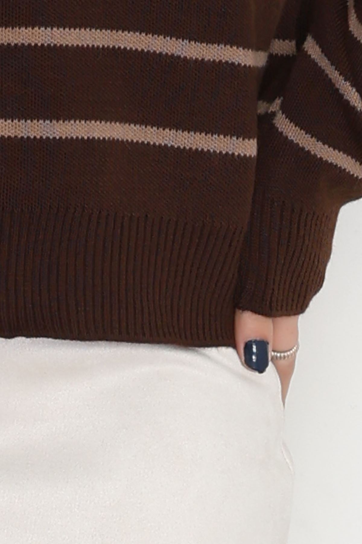 Çizgili Bisiklet Yaka Triko Kahvemocha - 3099.1577.