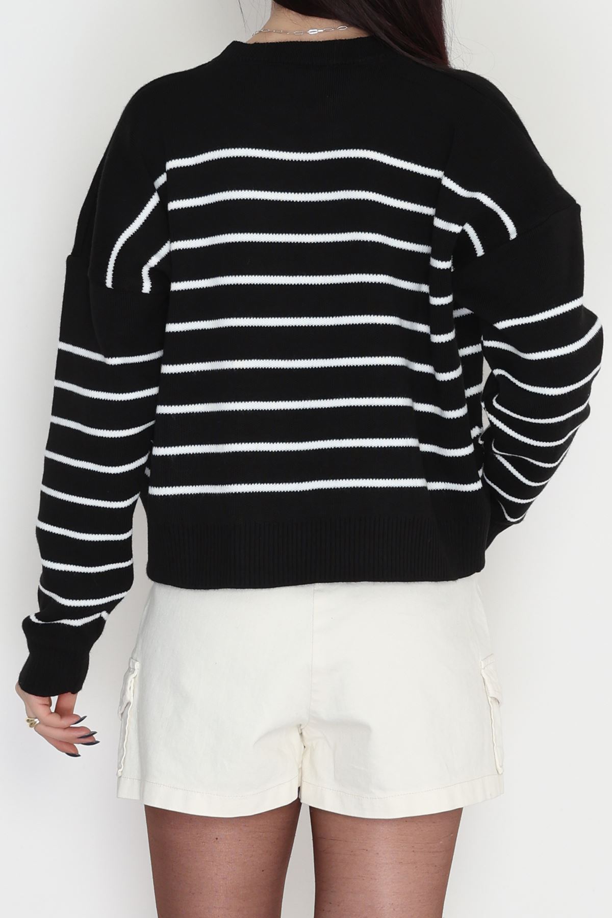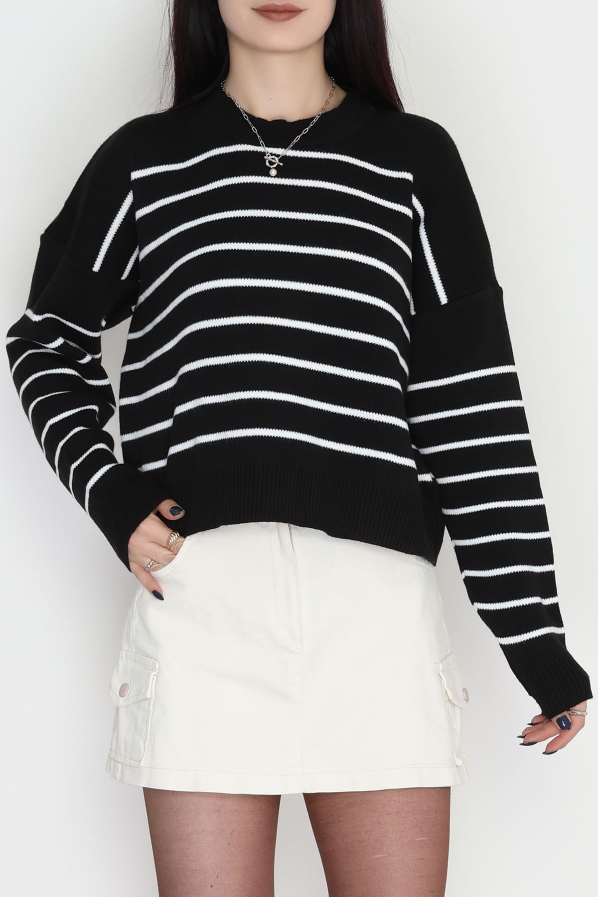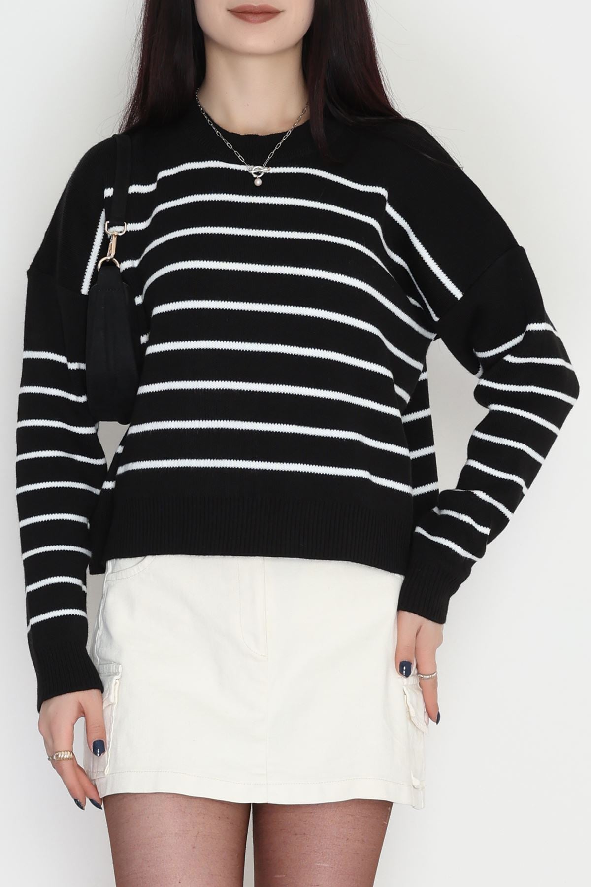 Çizgili Bisiklet Yaka Triko Siyahbeyaz - 3099.1577.