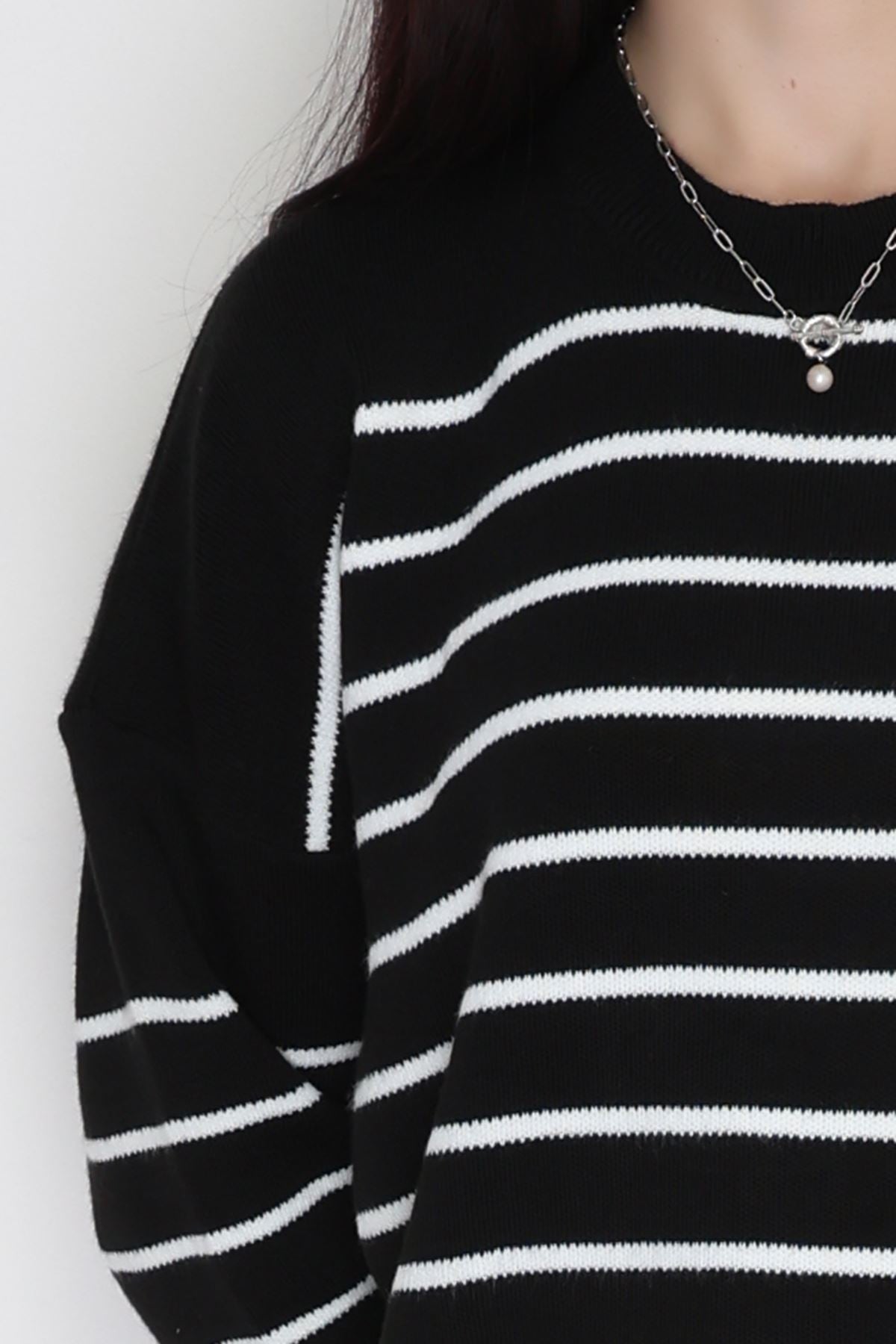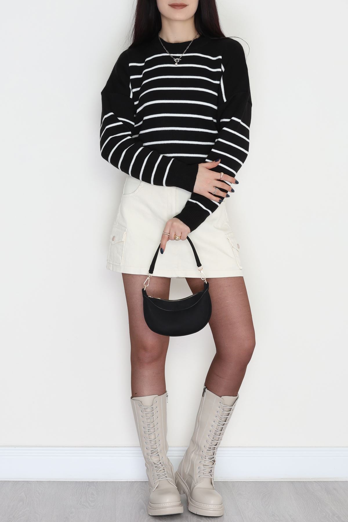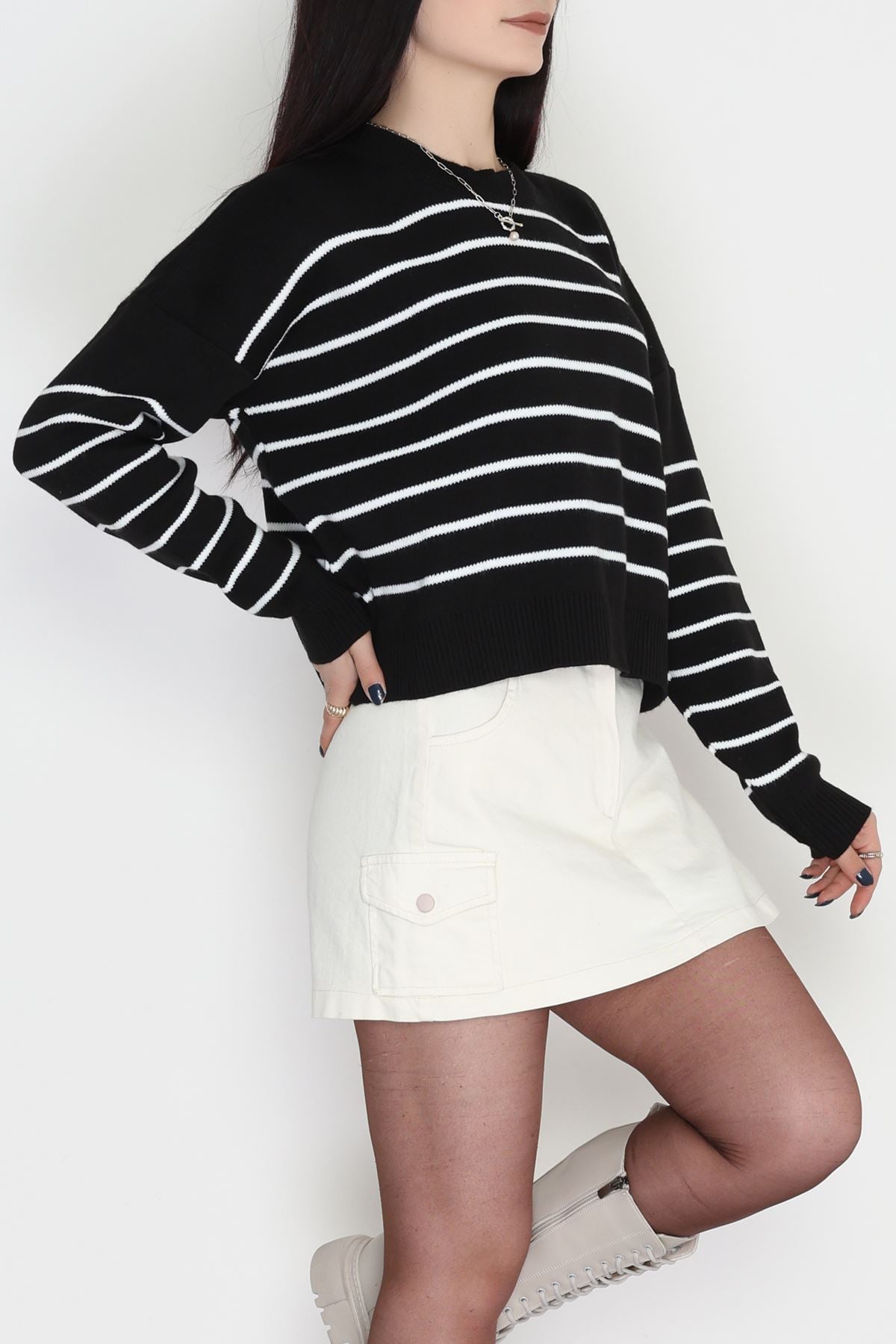 Çizgili Bisiklet Yaka Triko Siyahbeyaz - 3099.1577.