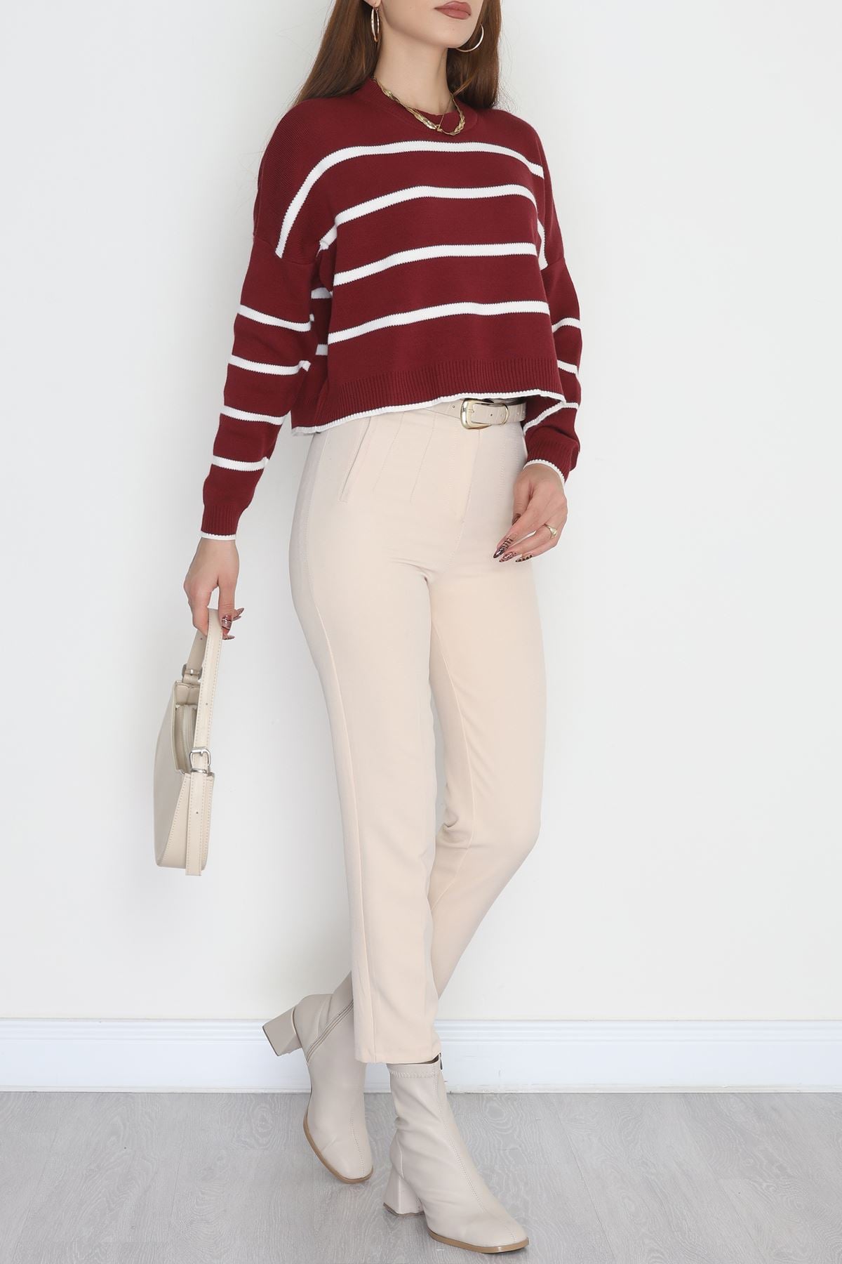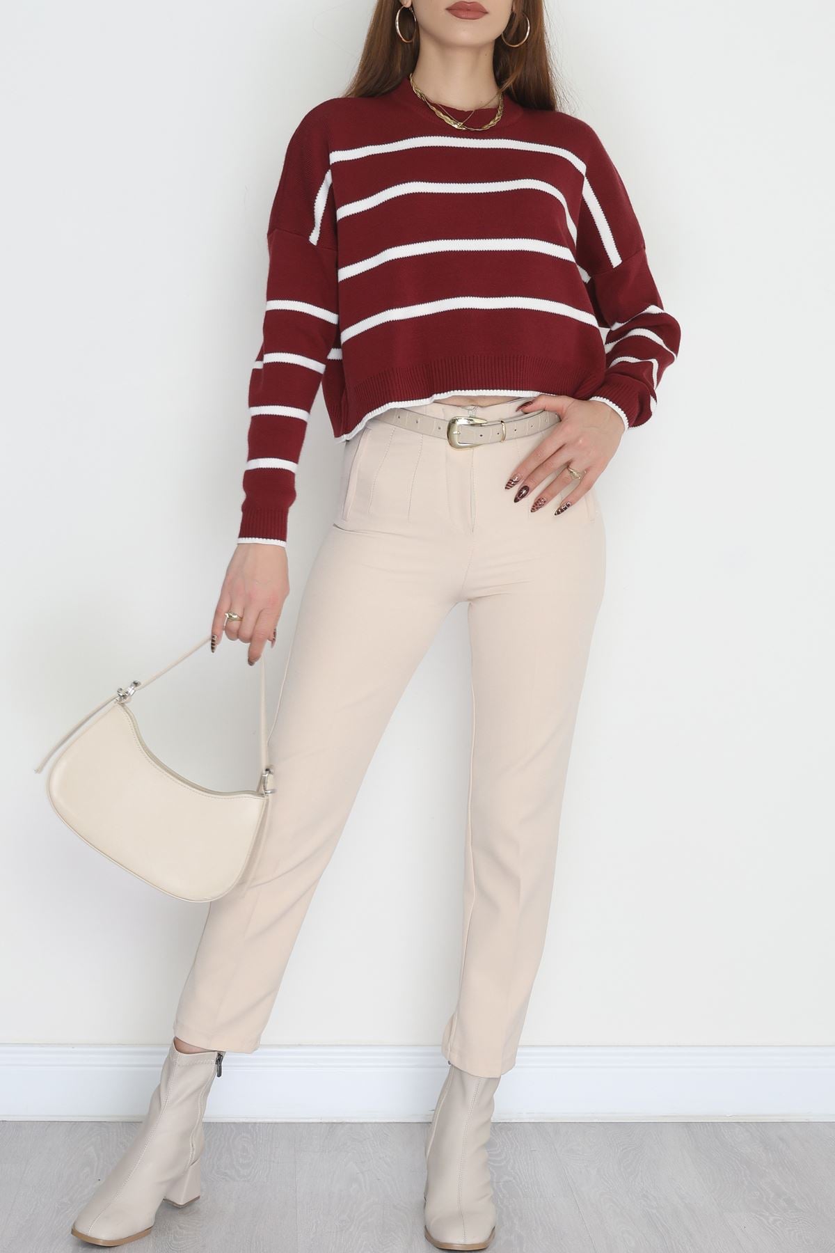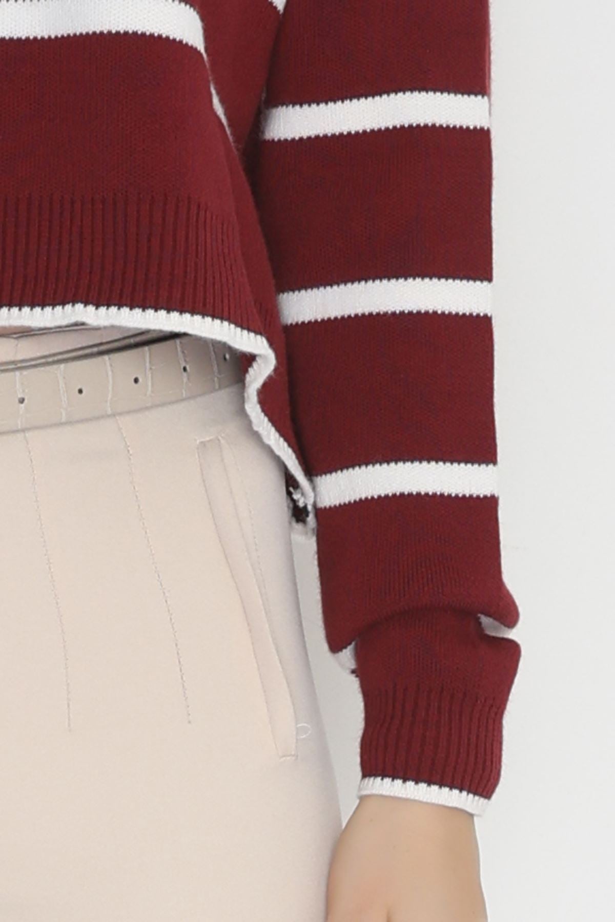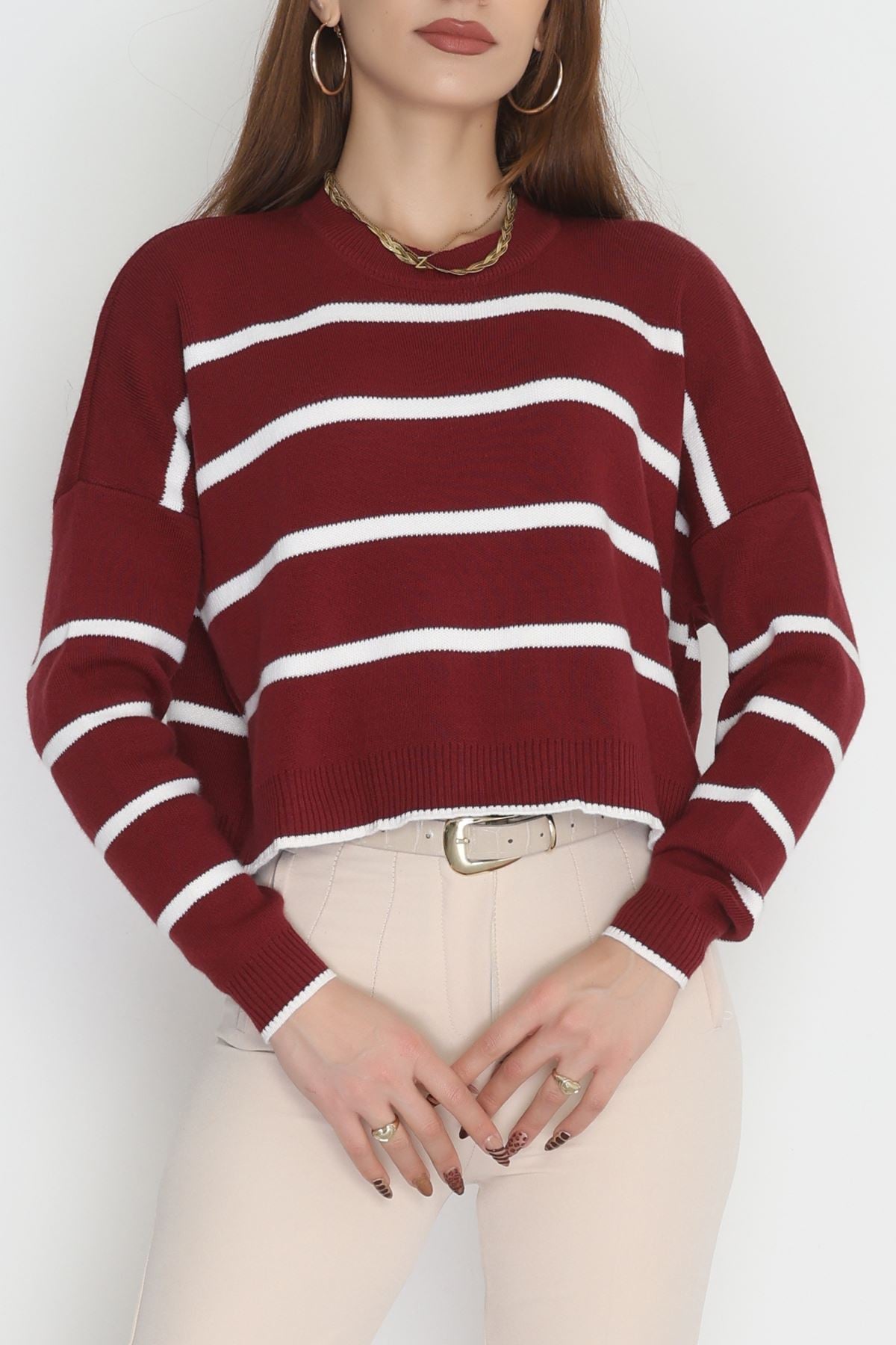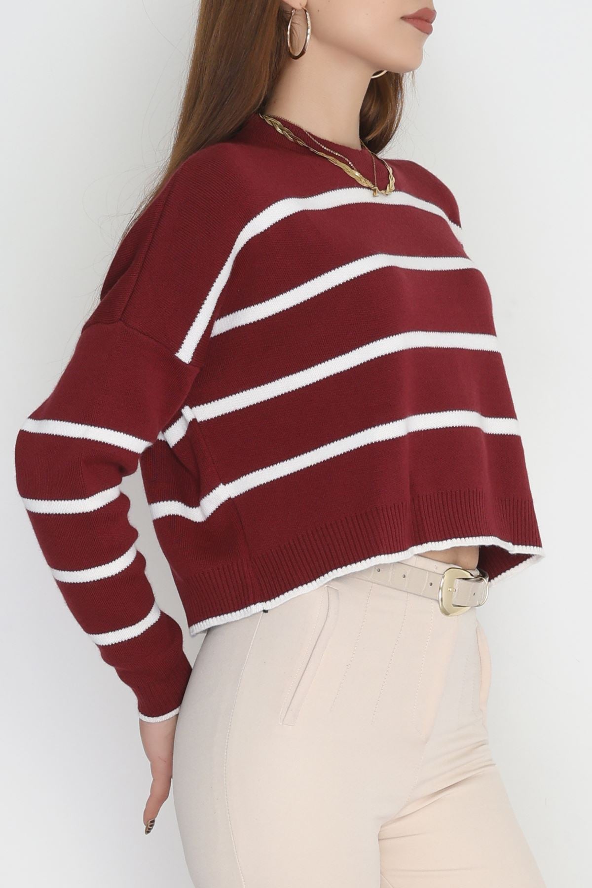 Çizgili Crop Triko Bordolatte - 3100.1577.