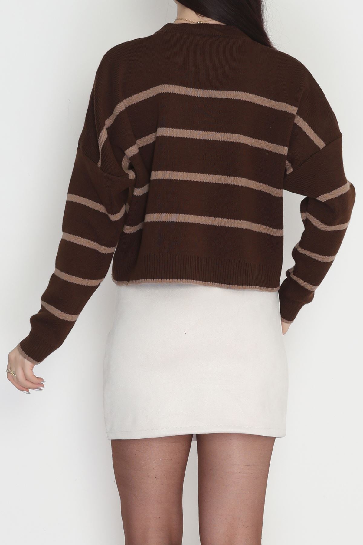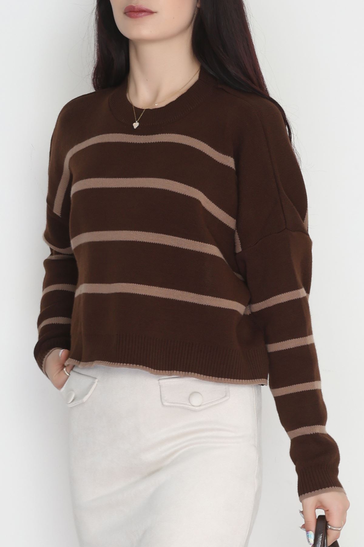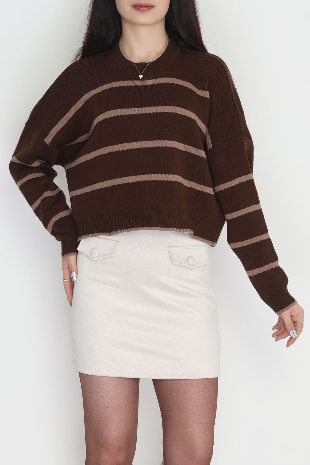 Çizgili Crop Triko Kahvemocha - 3100.1577.