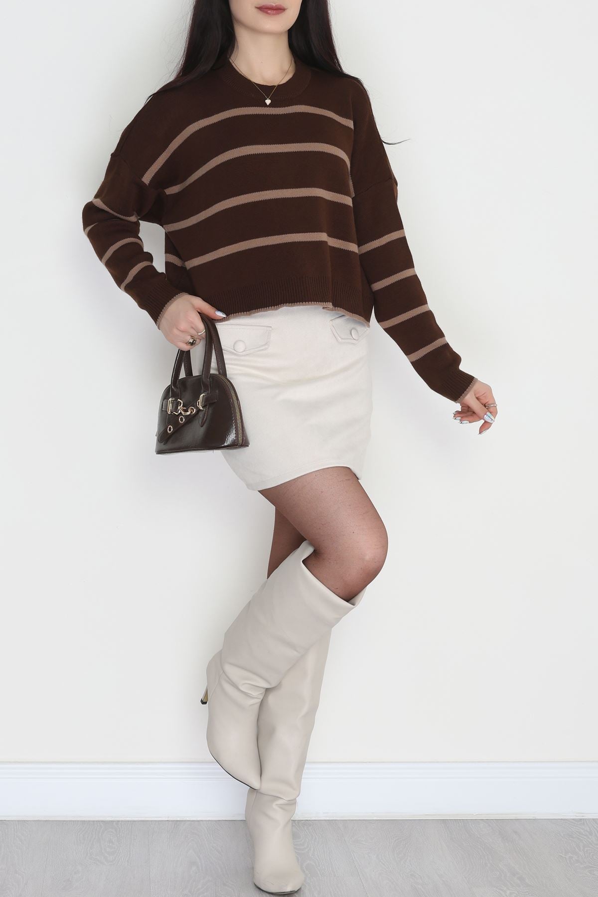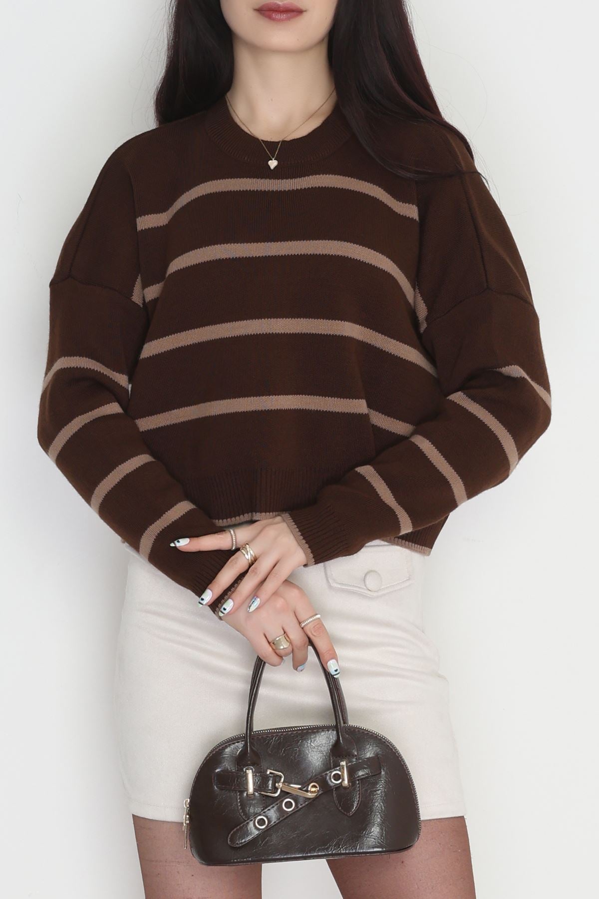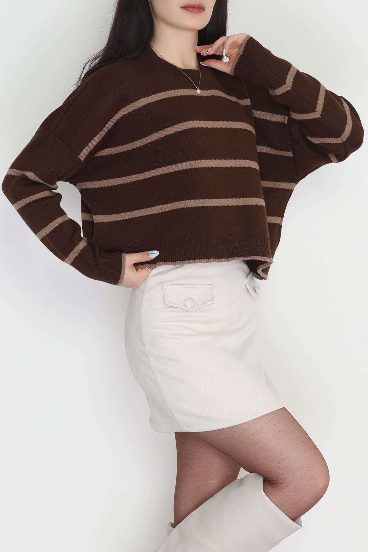 Çizgili Crop Triko Kahvemocha - 3100.1577.