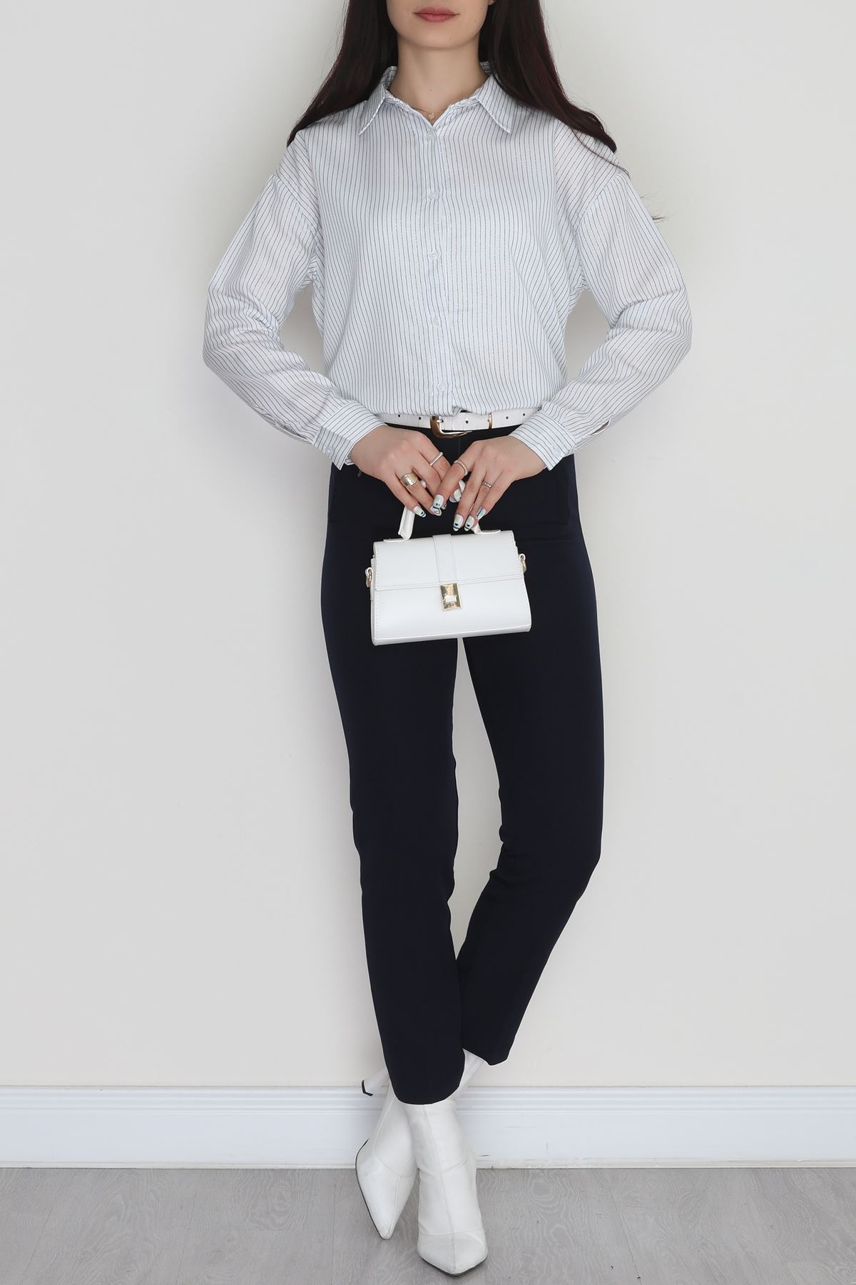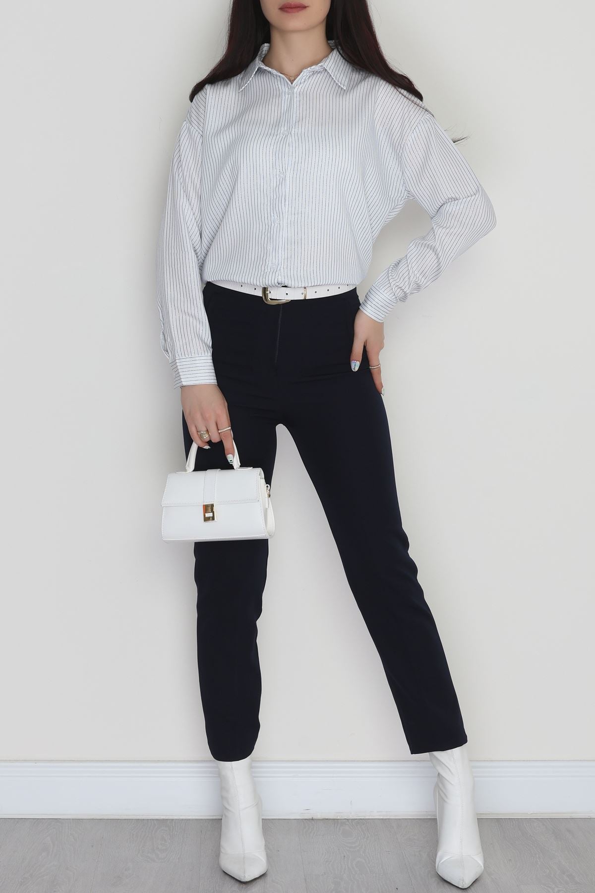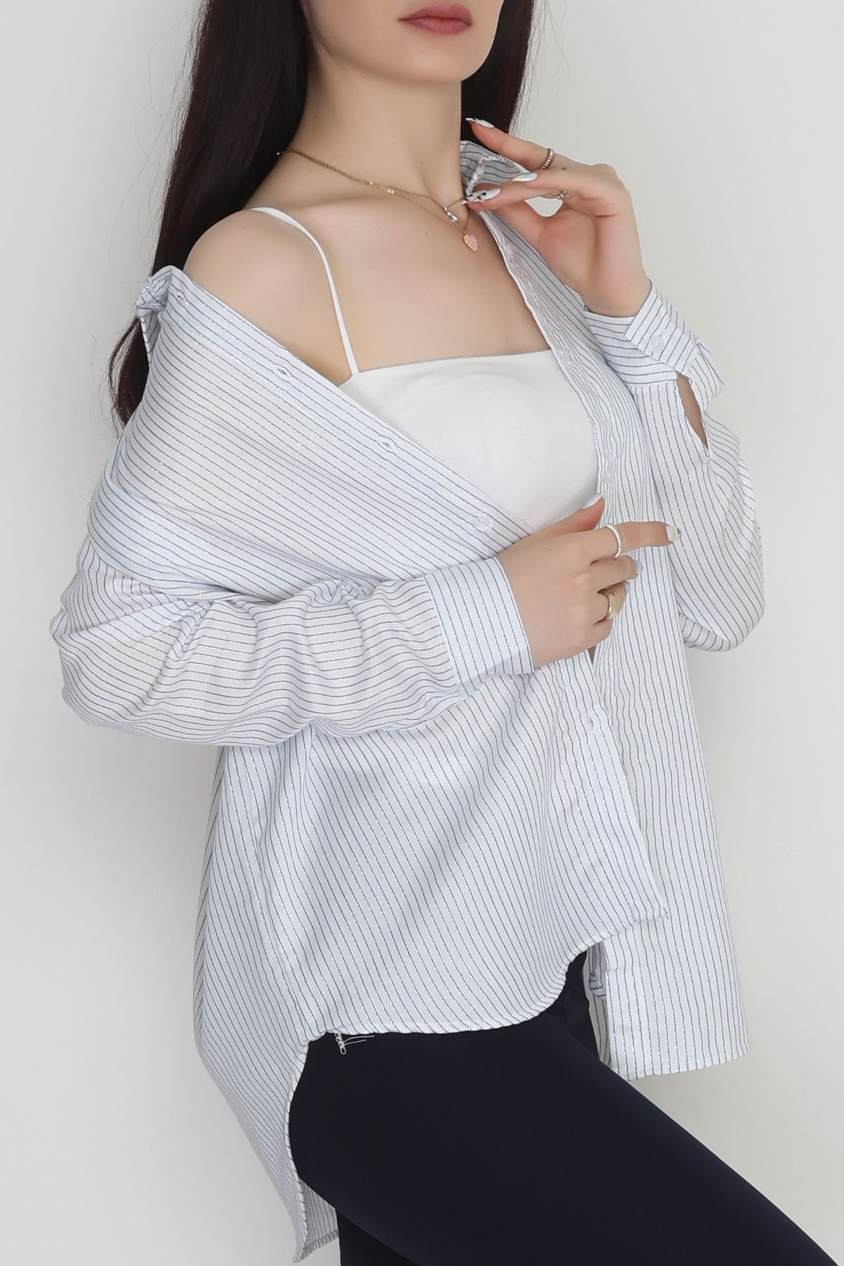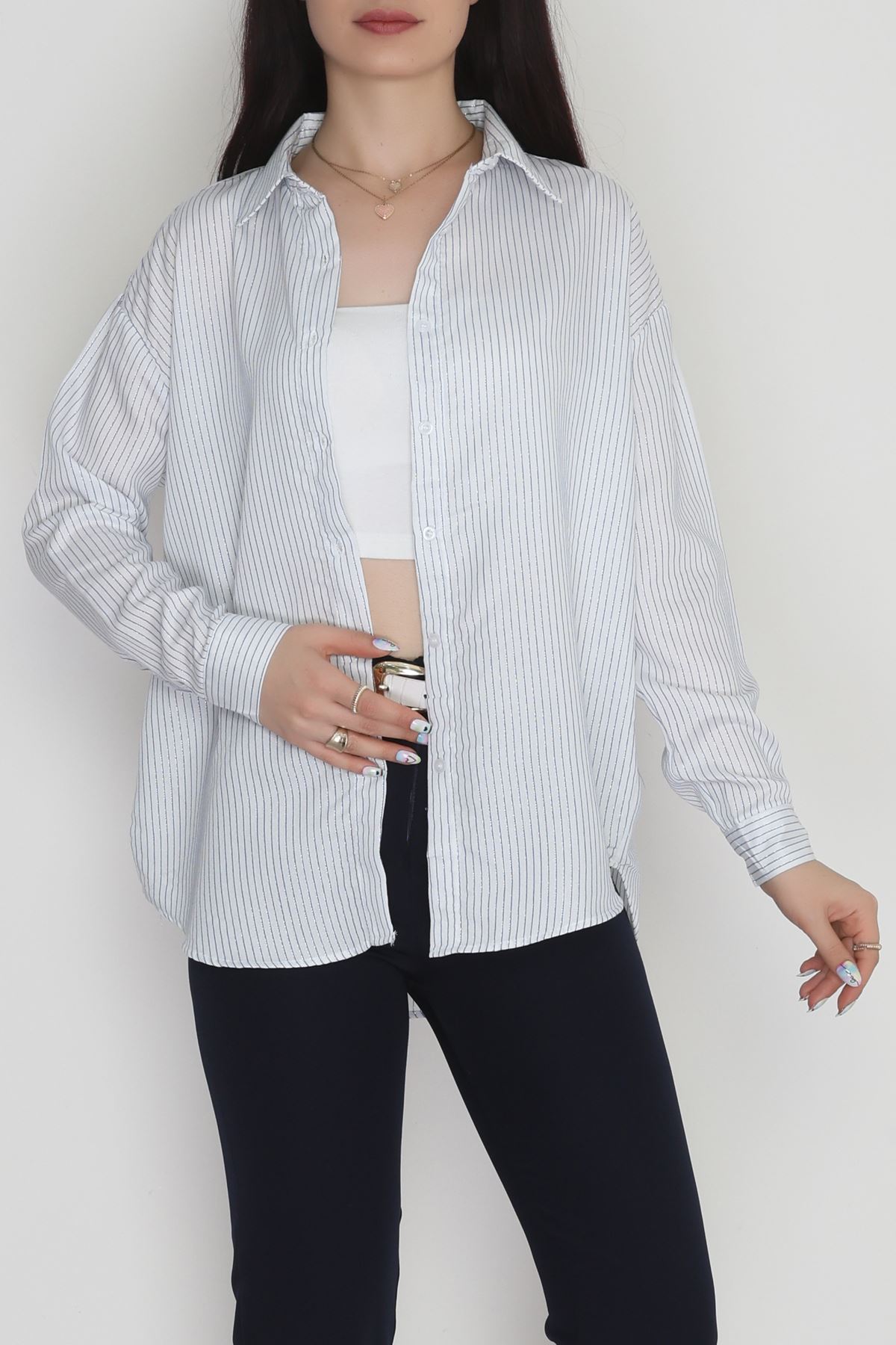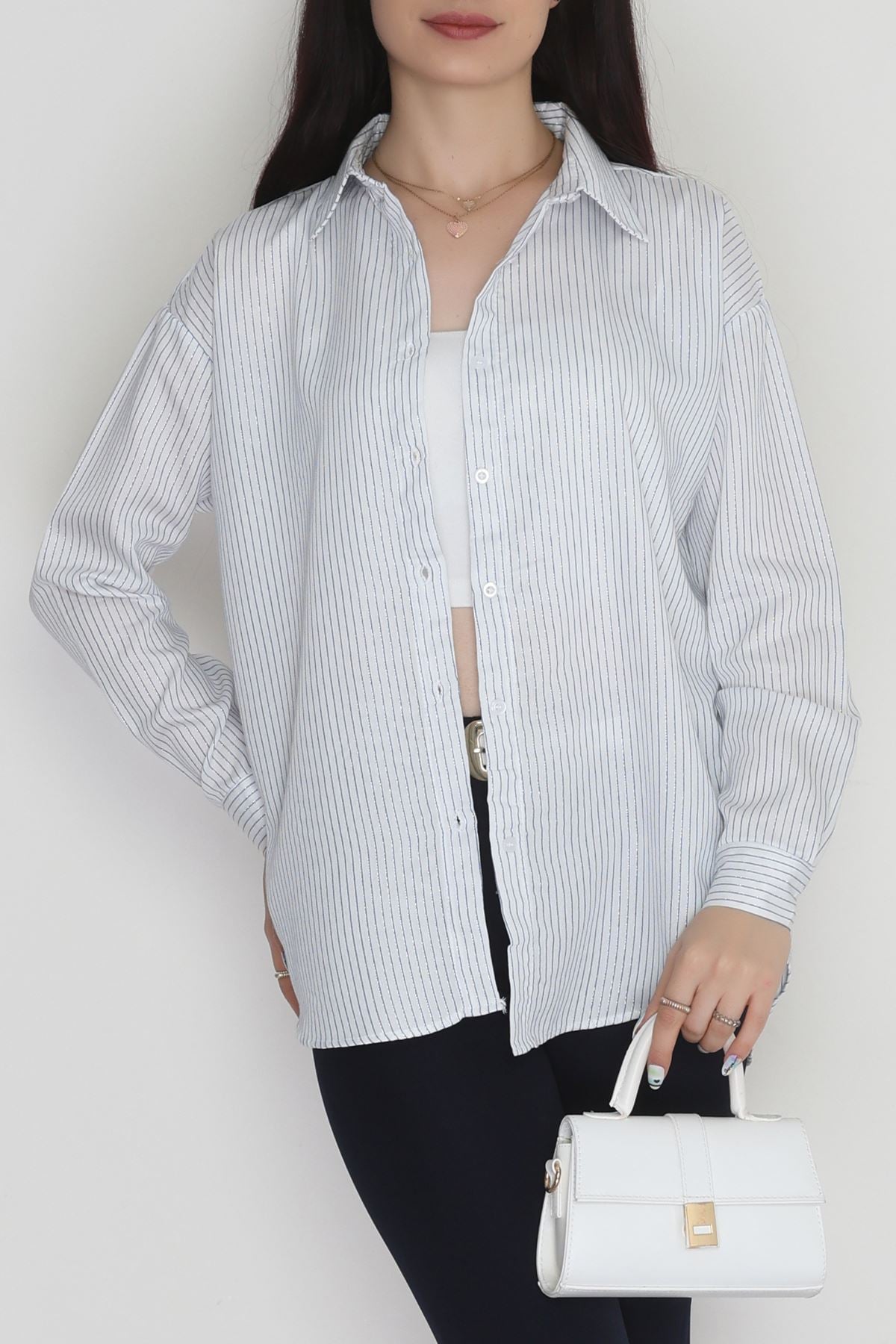 Çizgili Oversize Gömlek Beyazsaks - 51139.147.