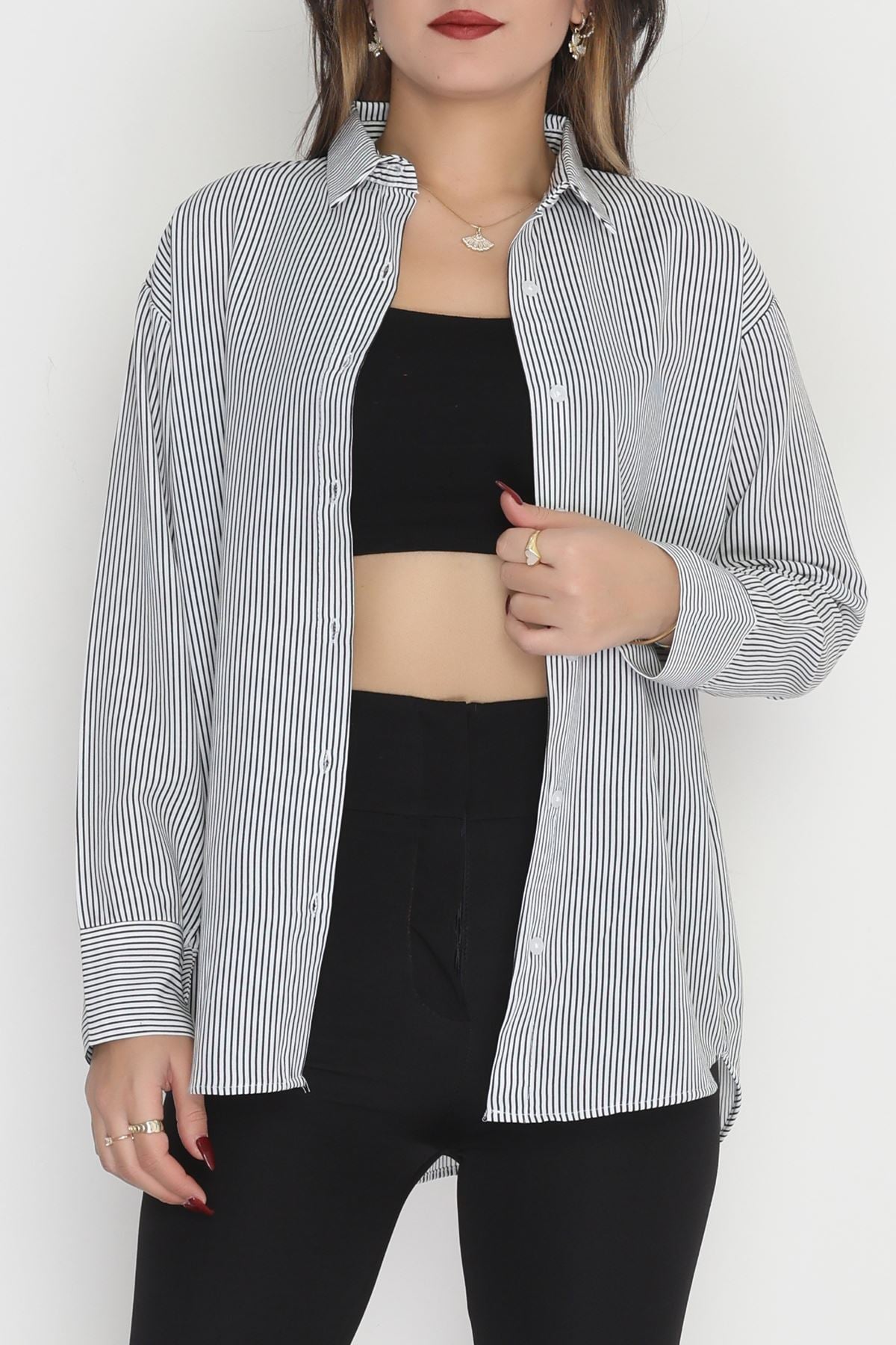 Çizgili Rahat Kalıp Gömlek Siyahçizgili - 90159.1949.