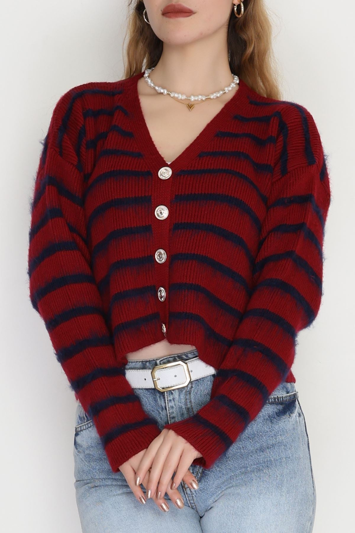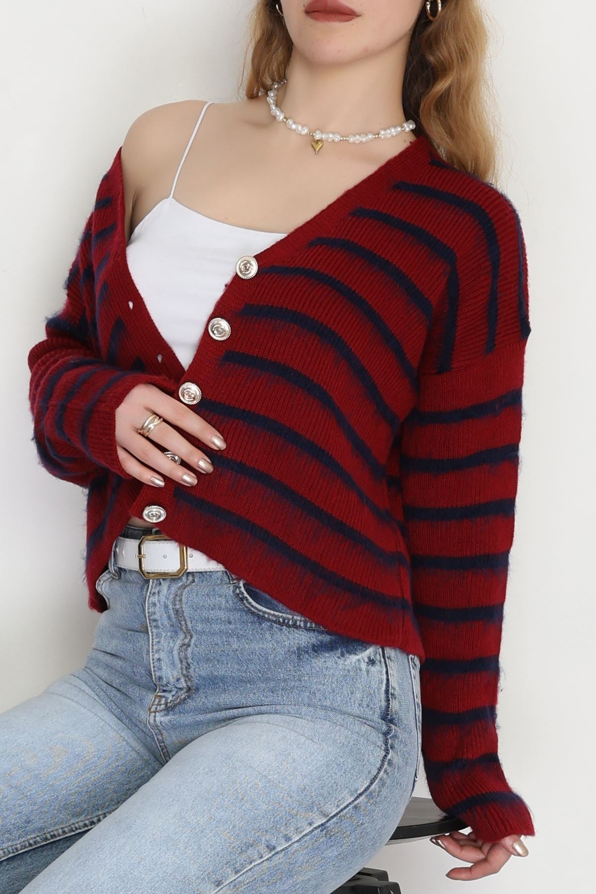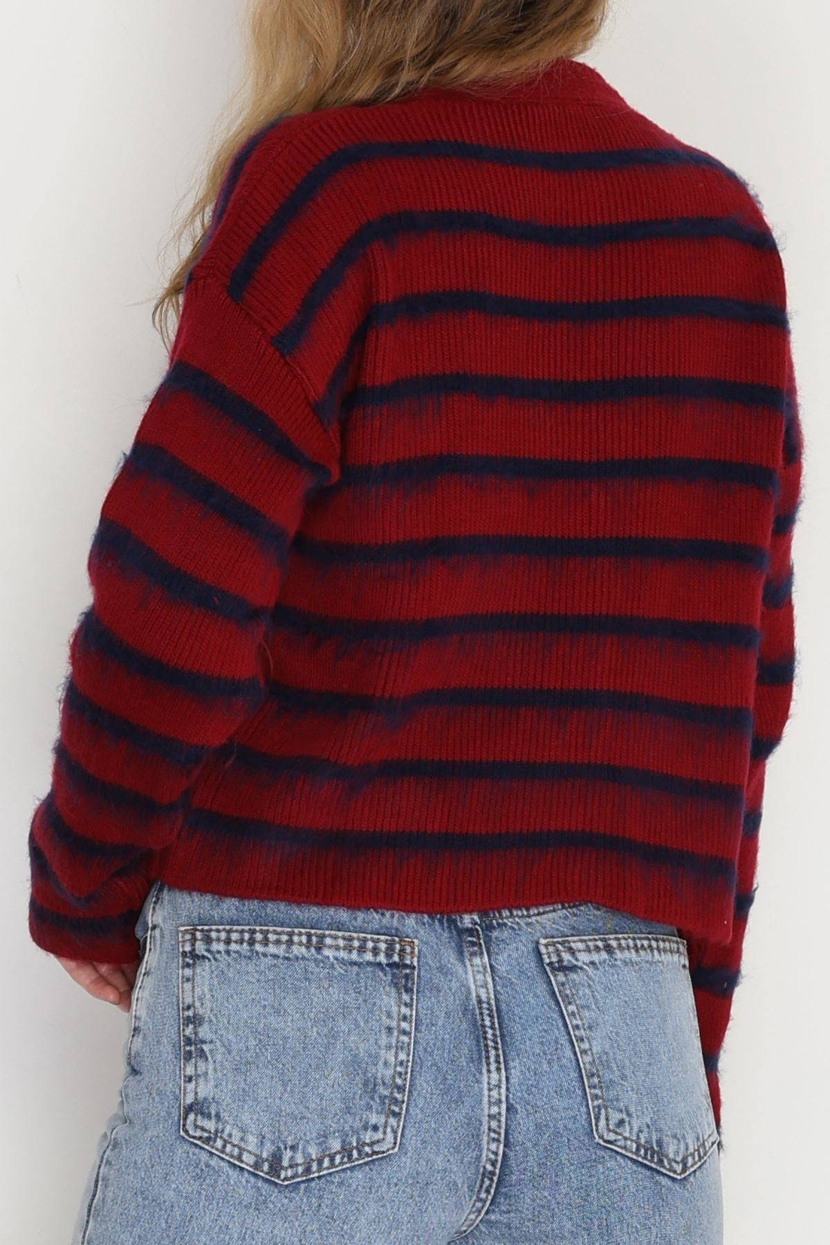 Çizgili Triko Hırka Bordo - 2319.1765.