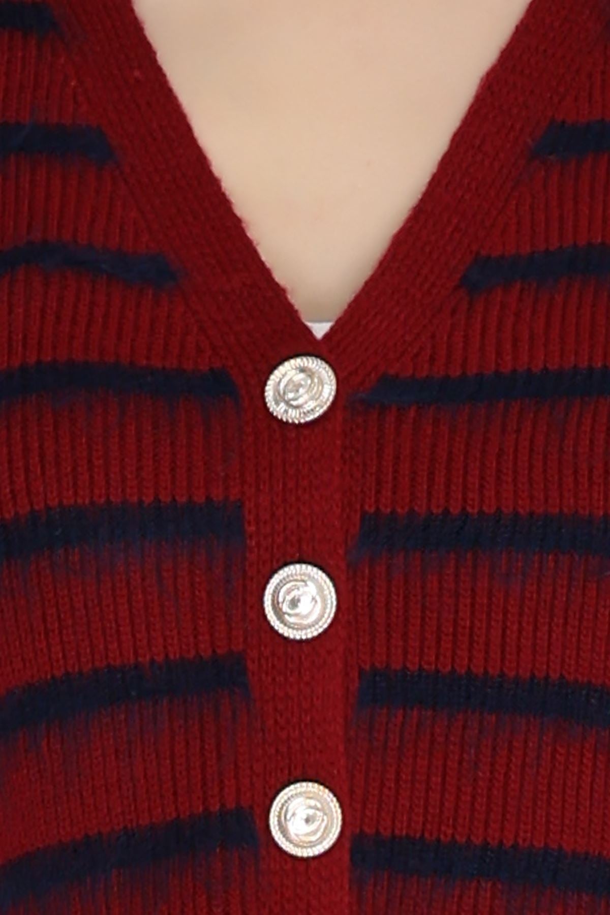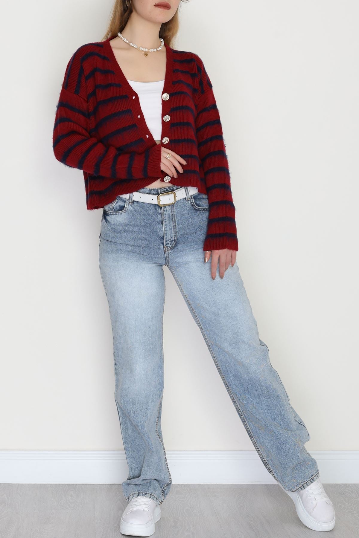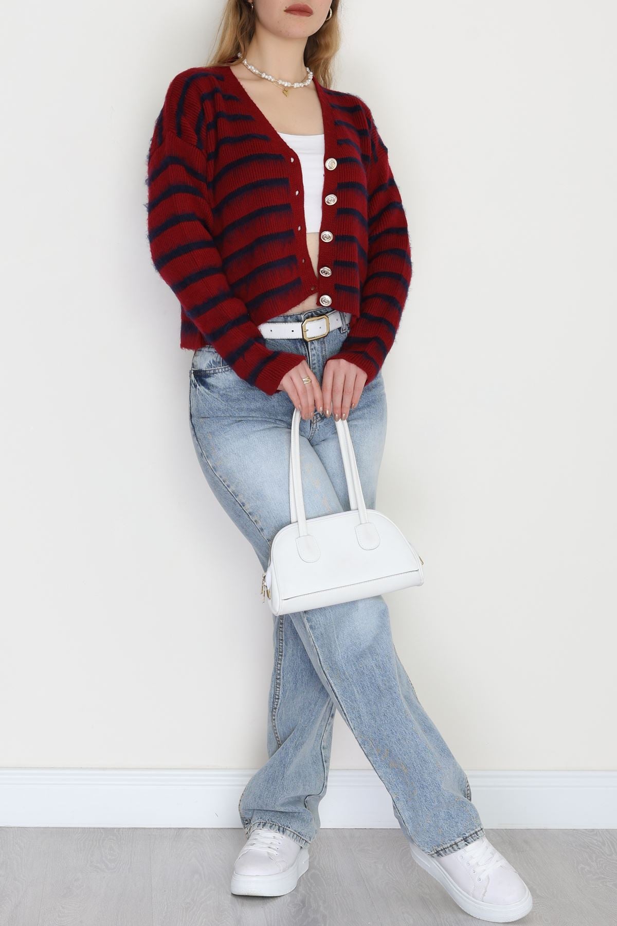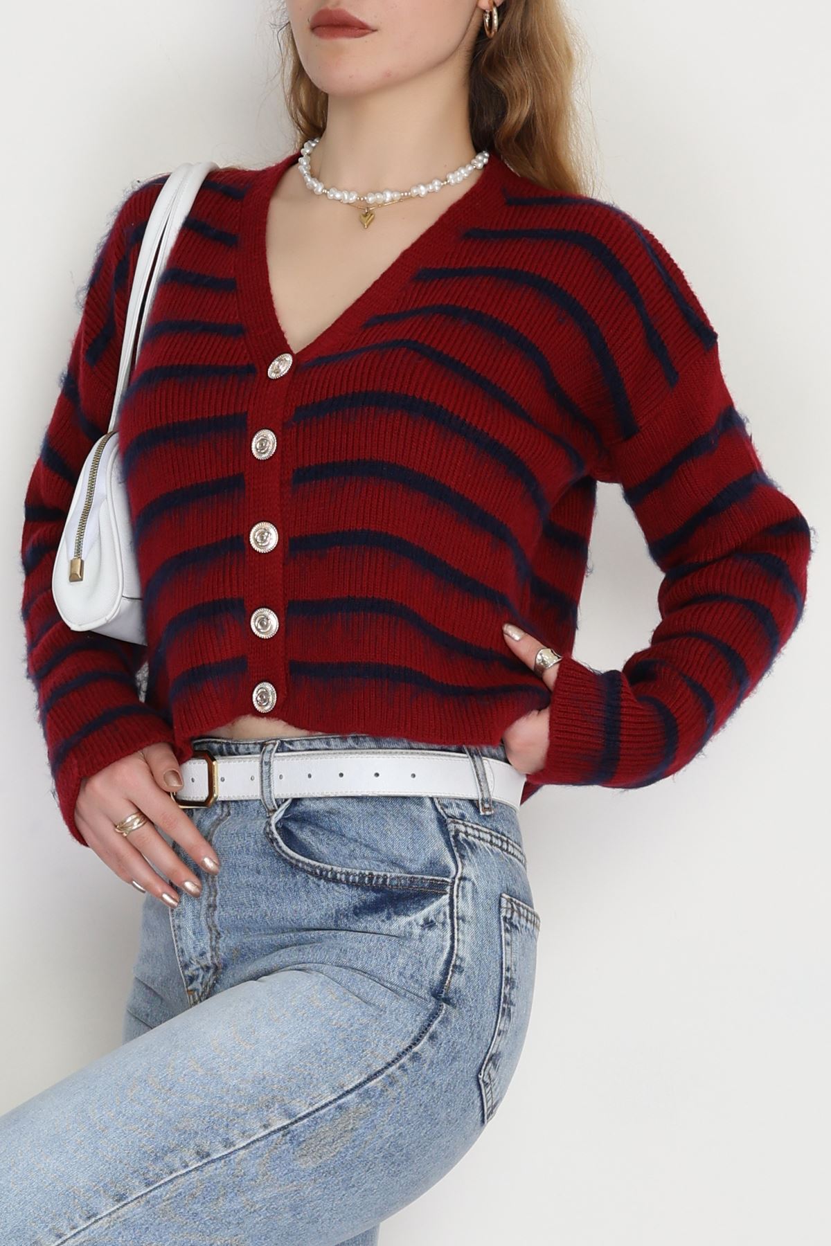 Çizgili Triko Hırka Bordo - 2319.1765.