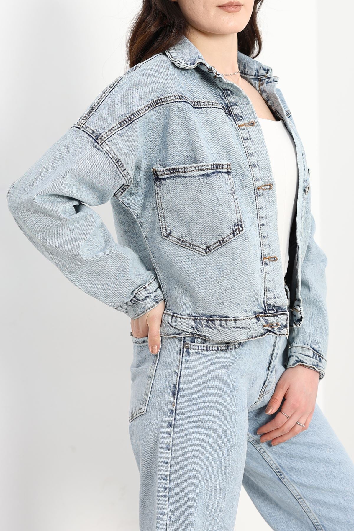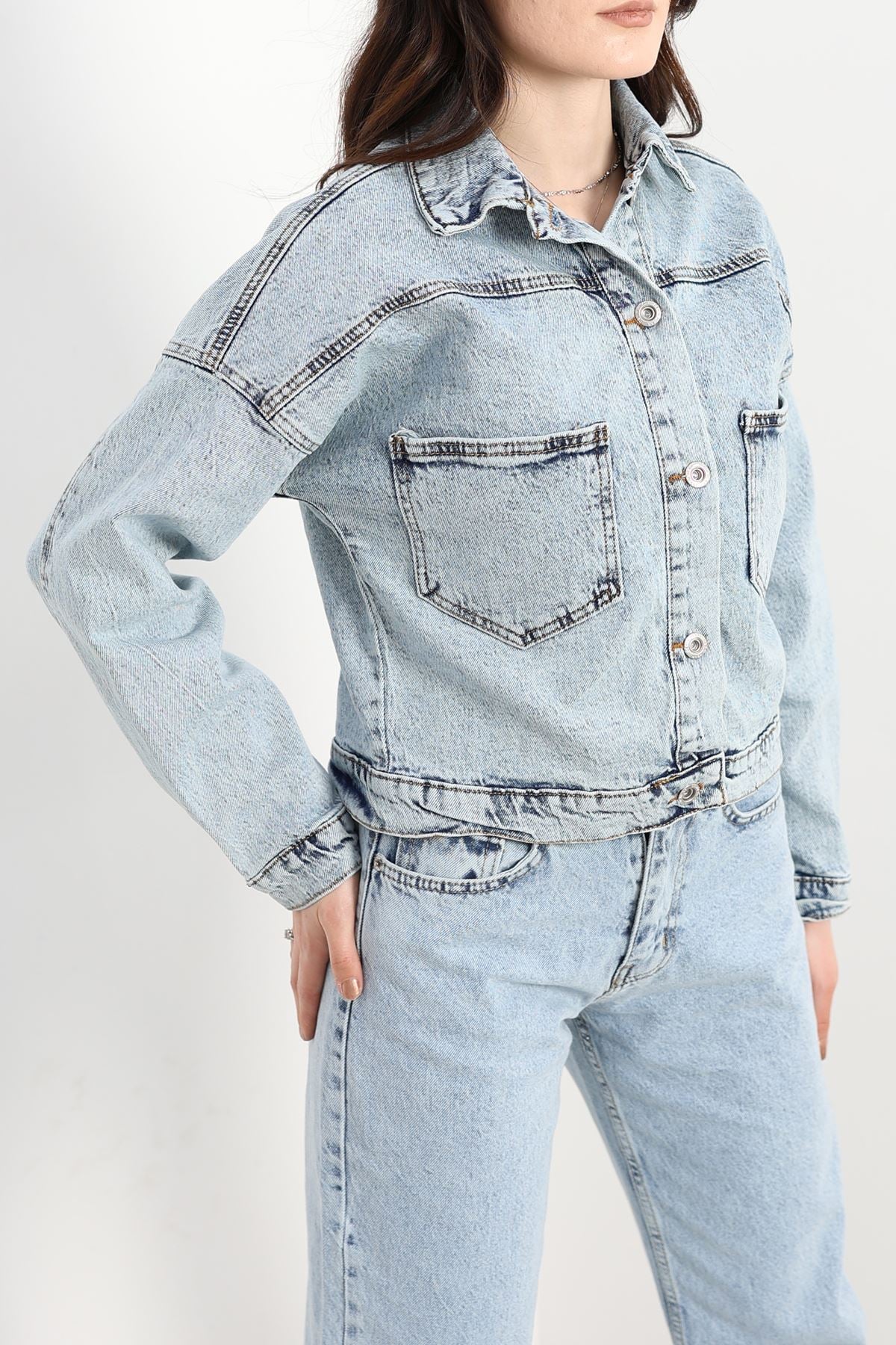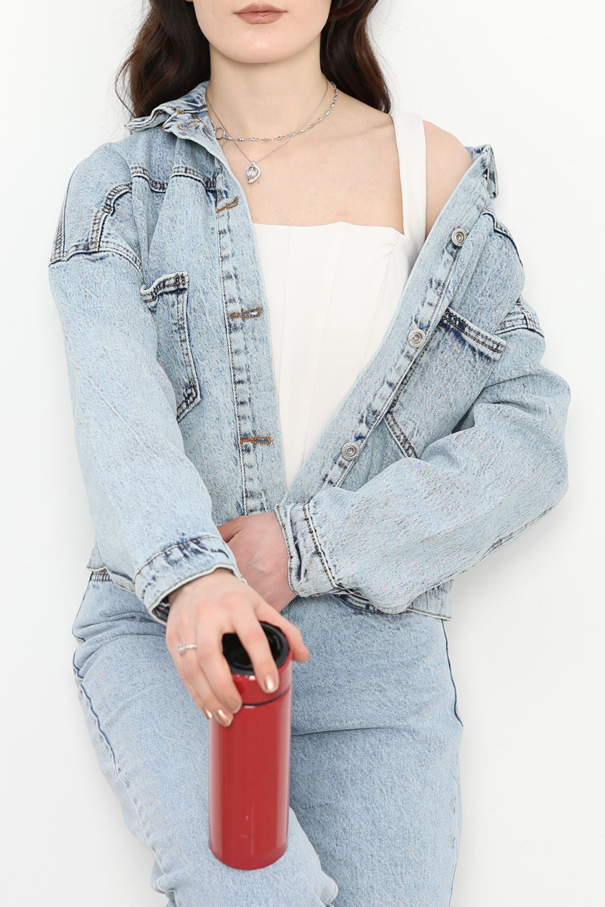 Crop Kot Ceket Buzmavi - 20438.1778.