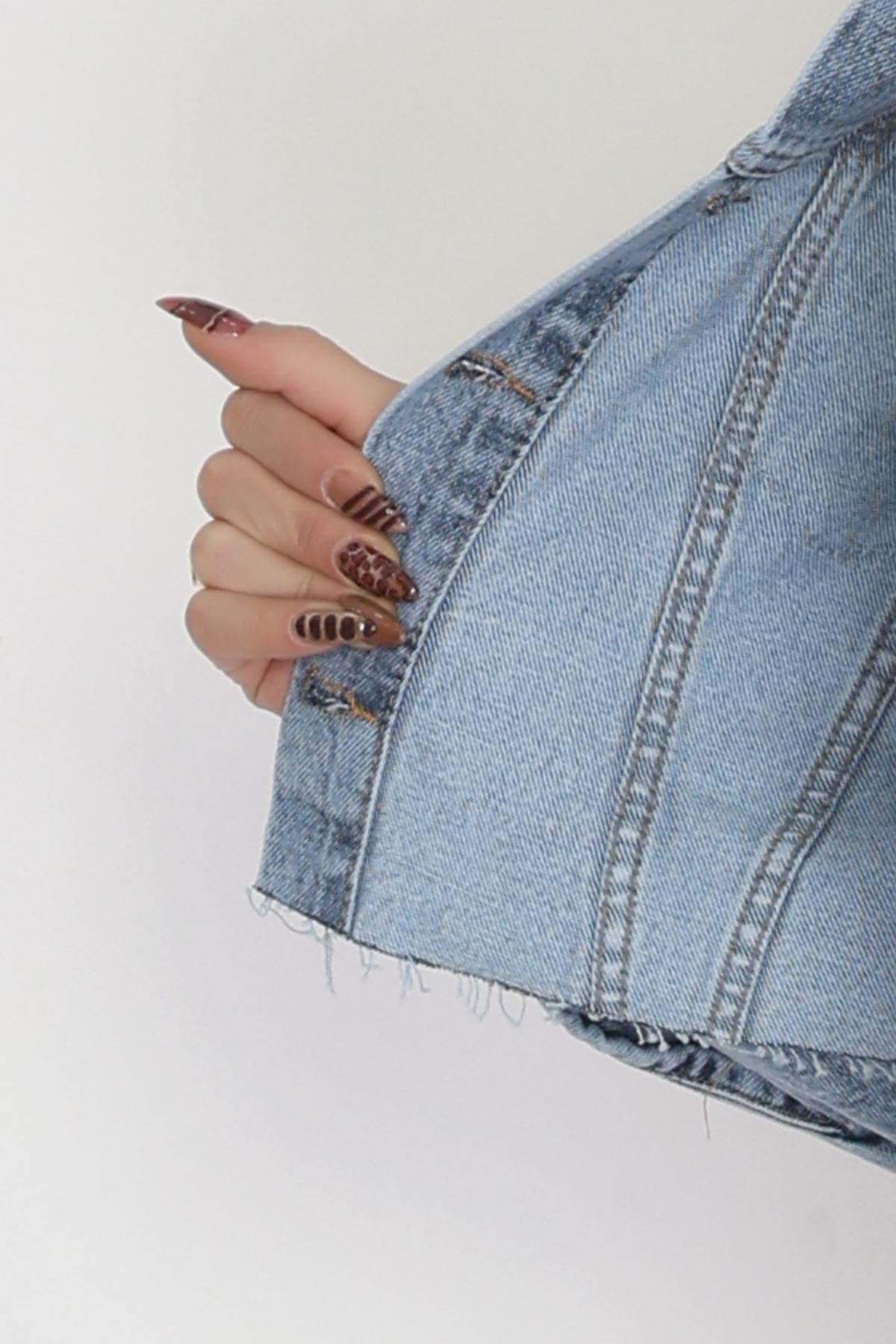 Crop Kot Ceket. Şık ve trend Crop Kot Ceket ile tarzını tamamla! Her kombine uyum sağlayan bu ceket, gardırobunun vazgeçilmezi olacak. Crop Kot Ceket. Kısa kesimi ve modern tasarımıyla öne çıkan bu ceket, hem günlük kullanım hem de özel günler için ideal. Açık mavi rengi ve rahat kalıbı sayesinde gün boyu konfor sunar. Ön cepleri ve düğme detaylarıyla dikkat çeken Crop Kot Ceket, farklı kombinlerle kullanılarak tarzını yansıtmana yardımcı olur. Jean pantolonlar, etekler veya elbiselerle kolayca kombinleyebilir, her ortamda şıklığını koruyabilirsin. Gardırobuna dinamik bir dokunuş katmak için Crop Kot Ceket tam sana göre!