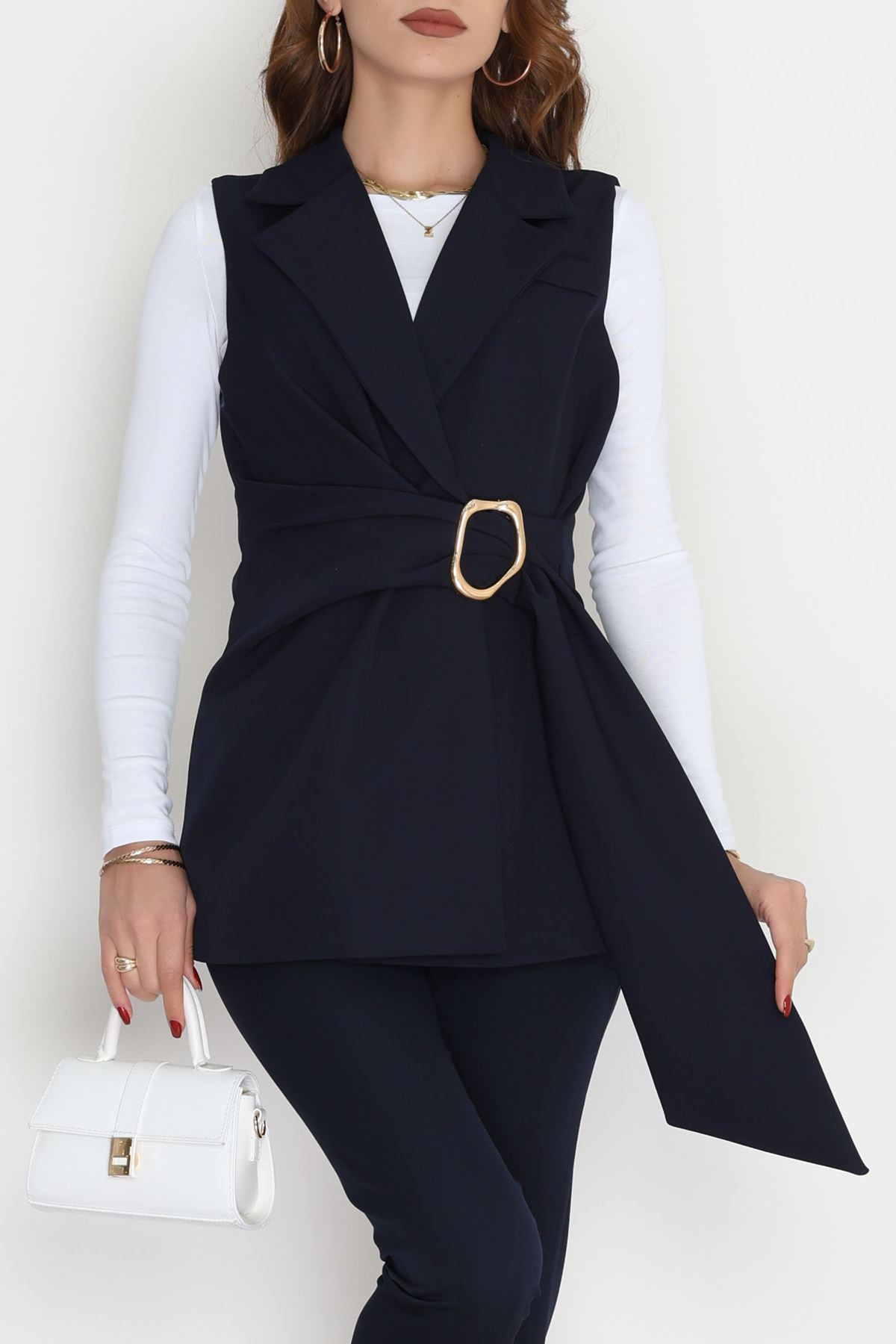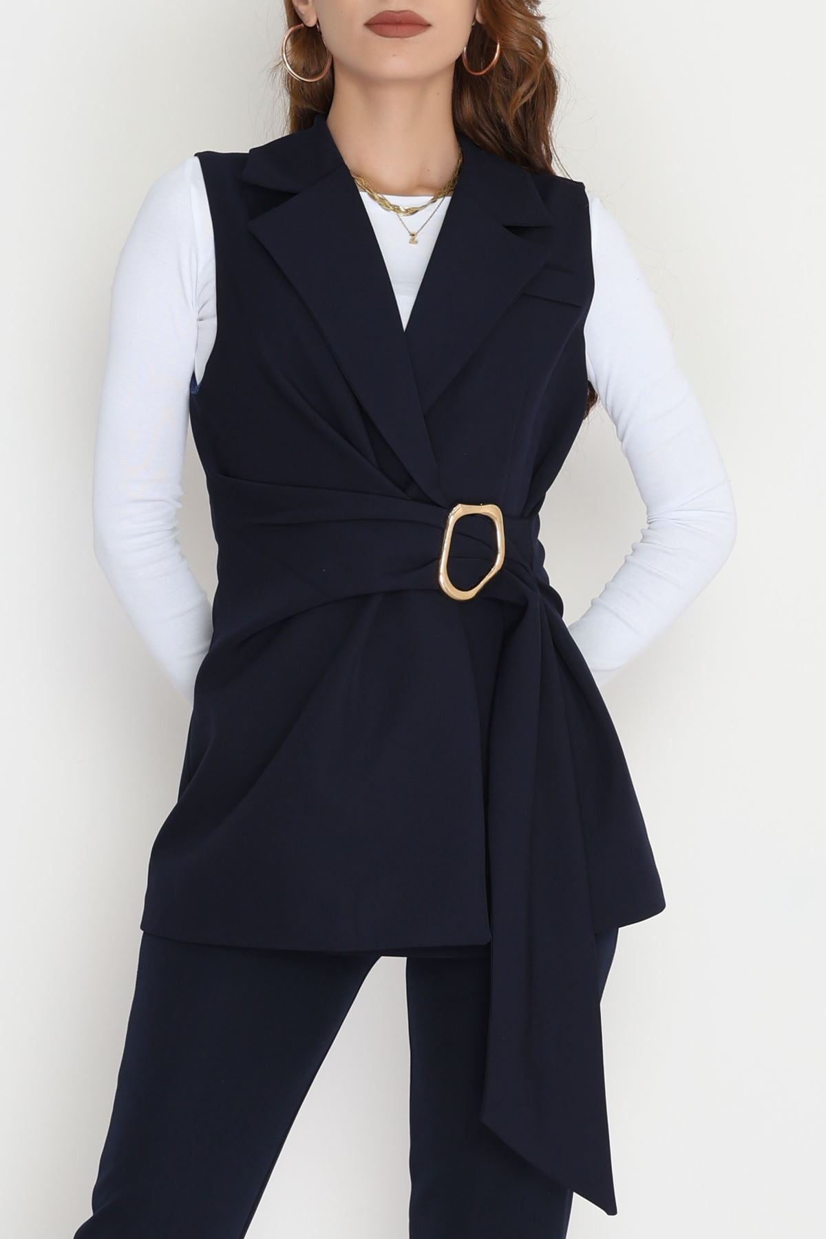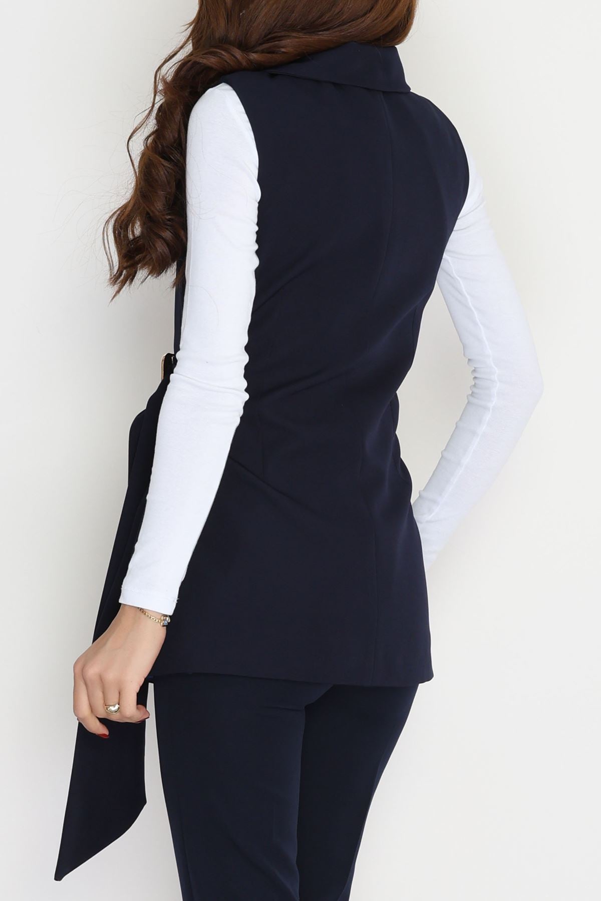 Dabıl Kumaş Bağlamalı Astarlı Yelek Lacivert - 31359.1397.