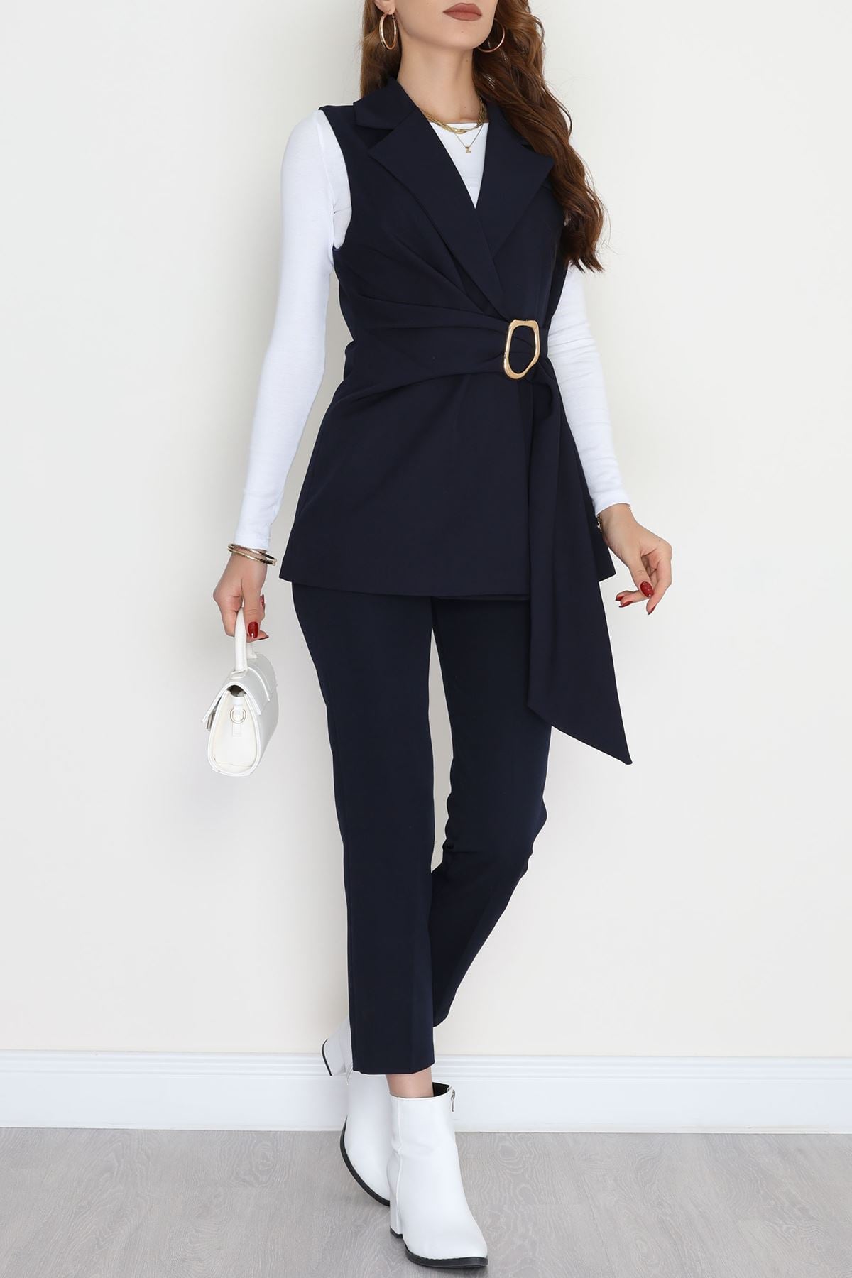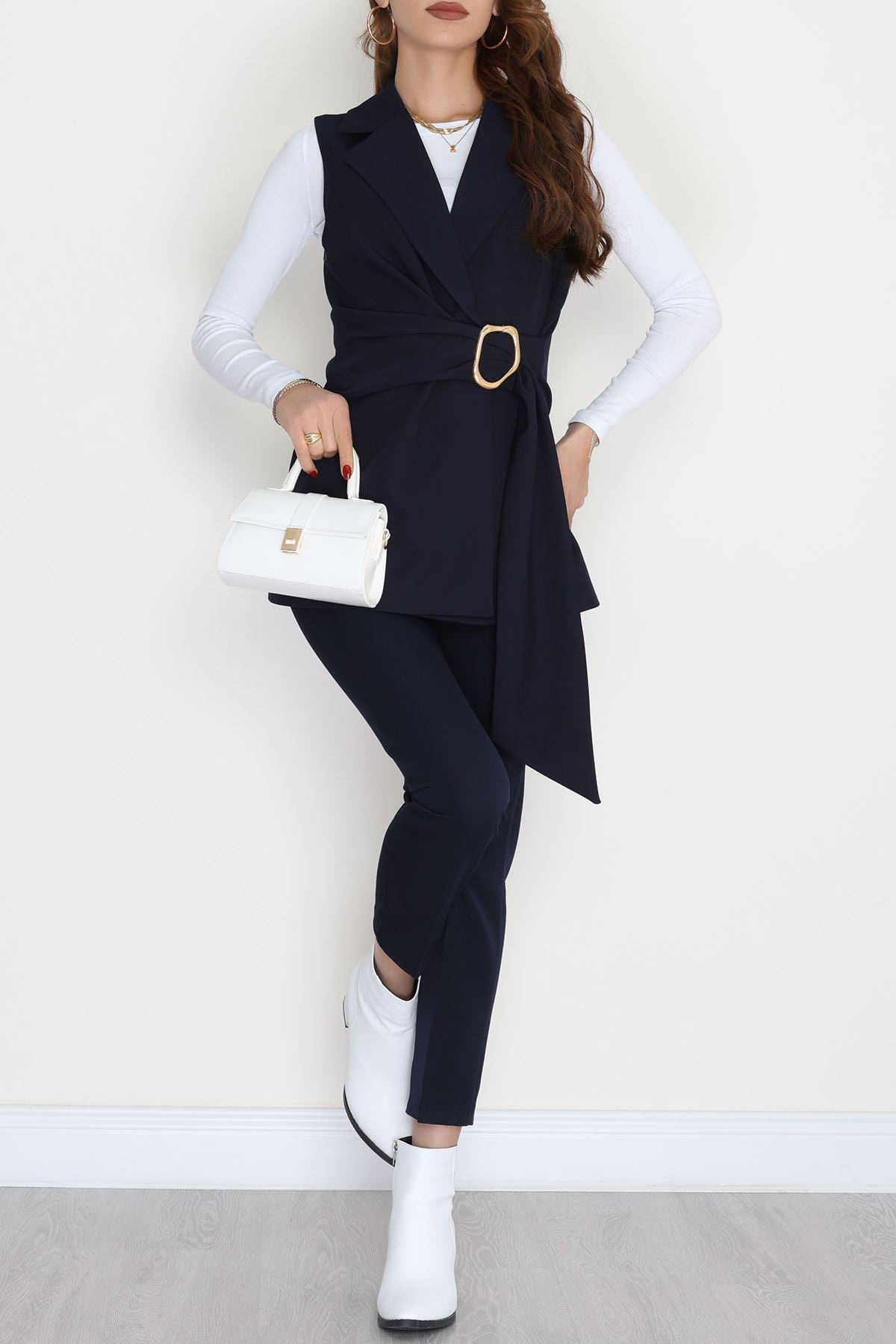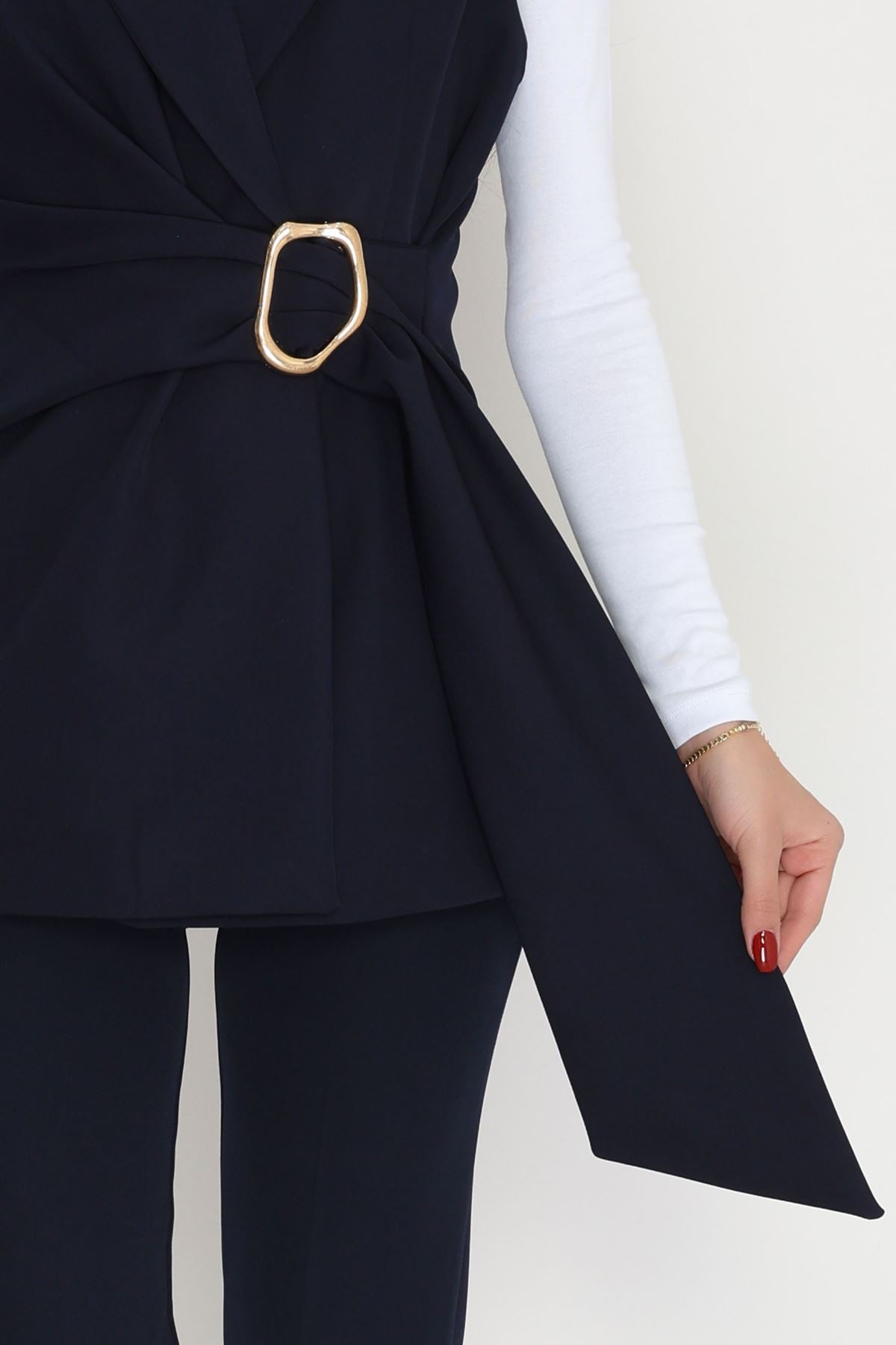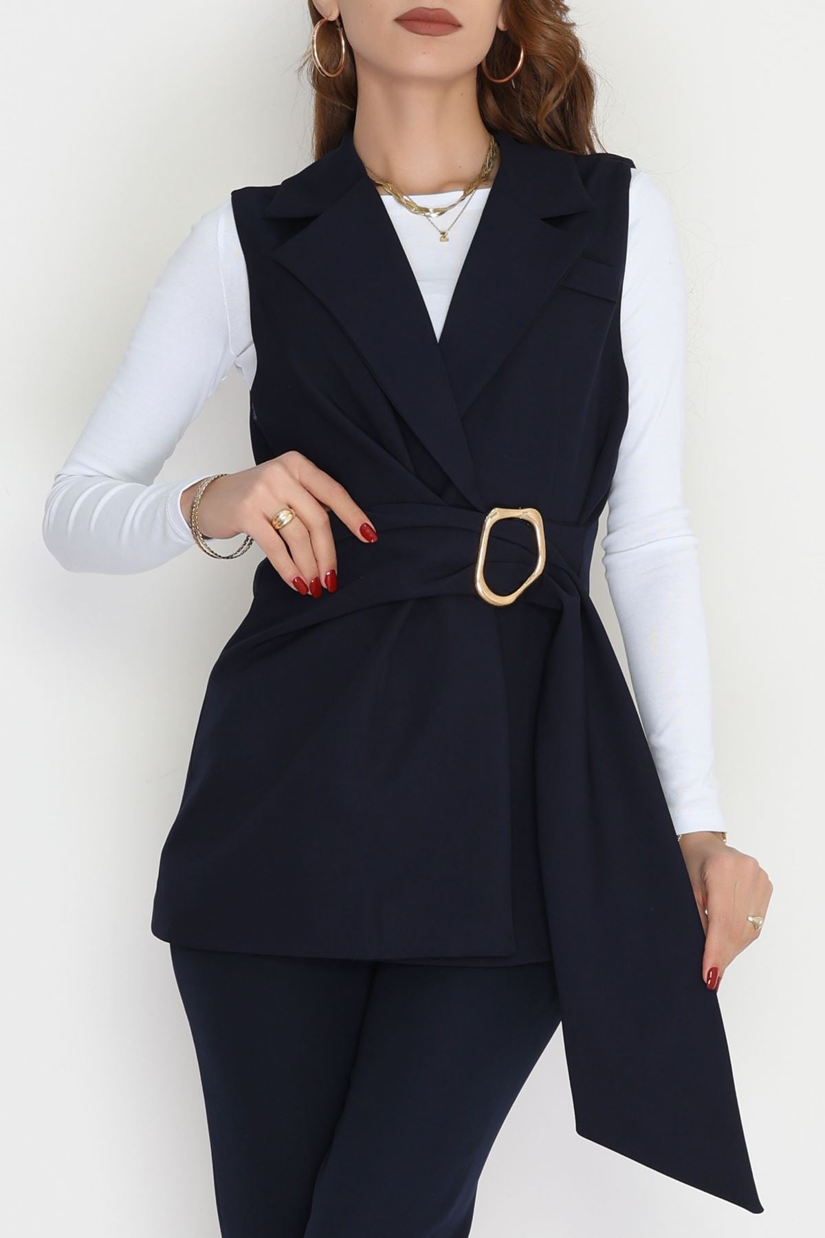 Dabıl Kumaş Bağlamalı Astarlı Yelek Lacivert - 31359.1397.