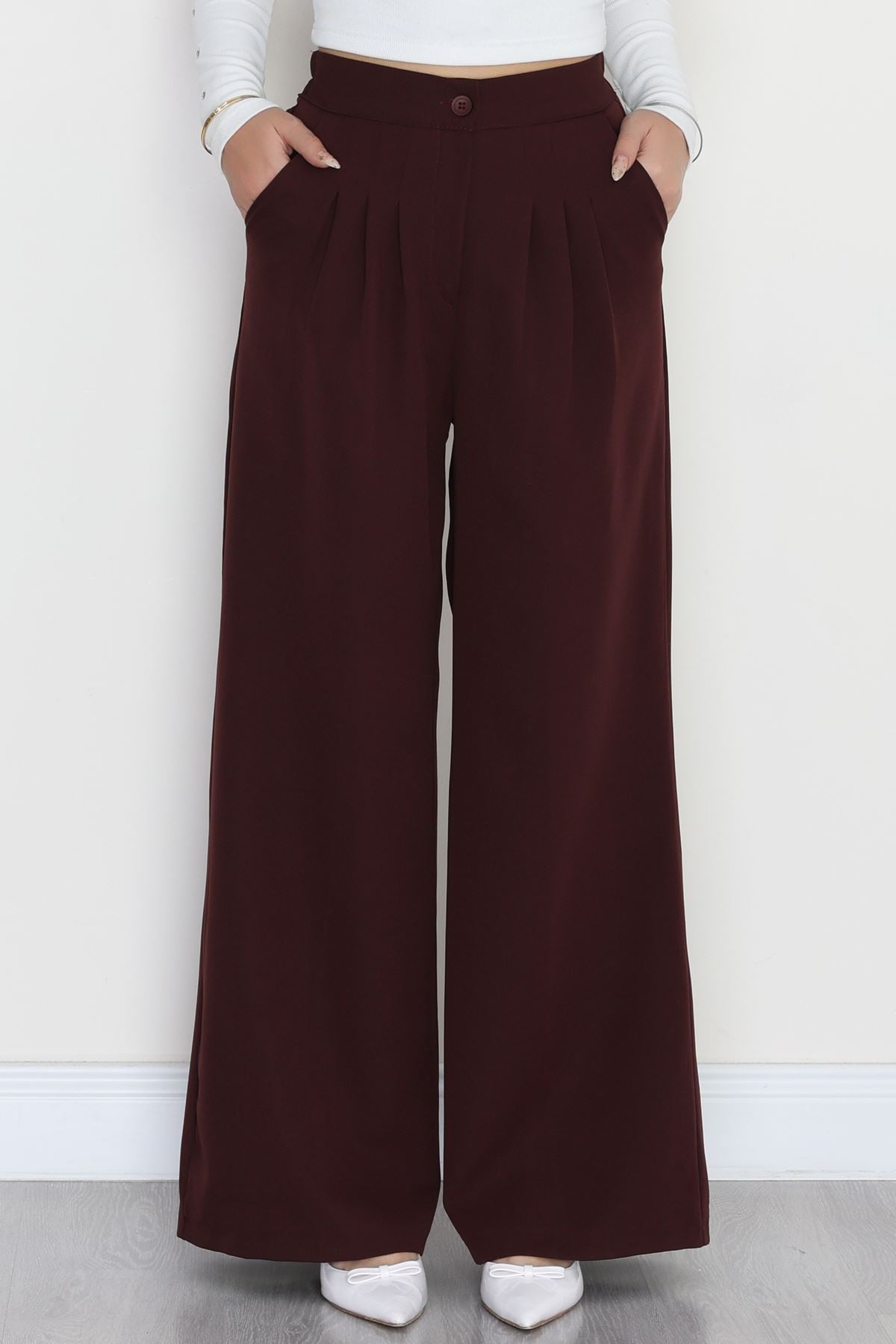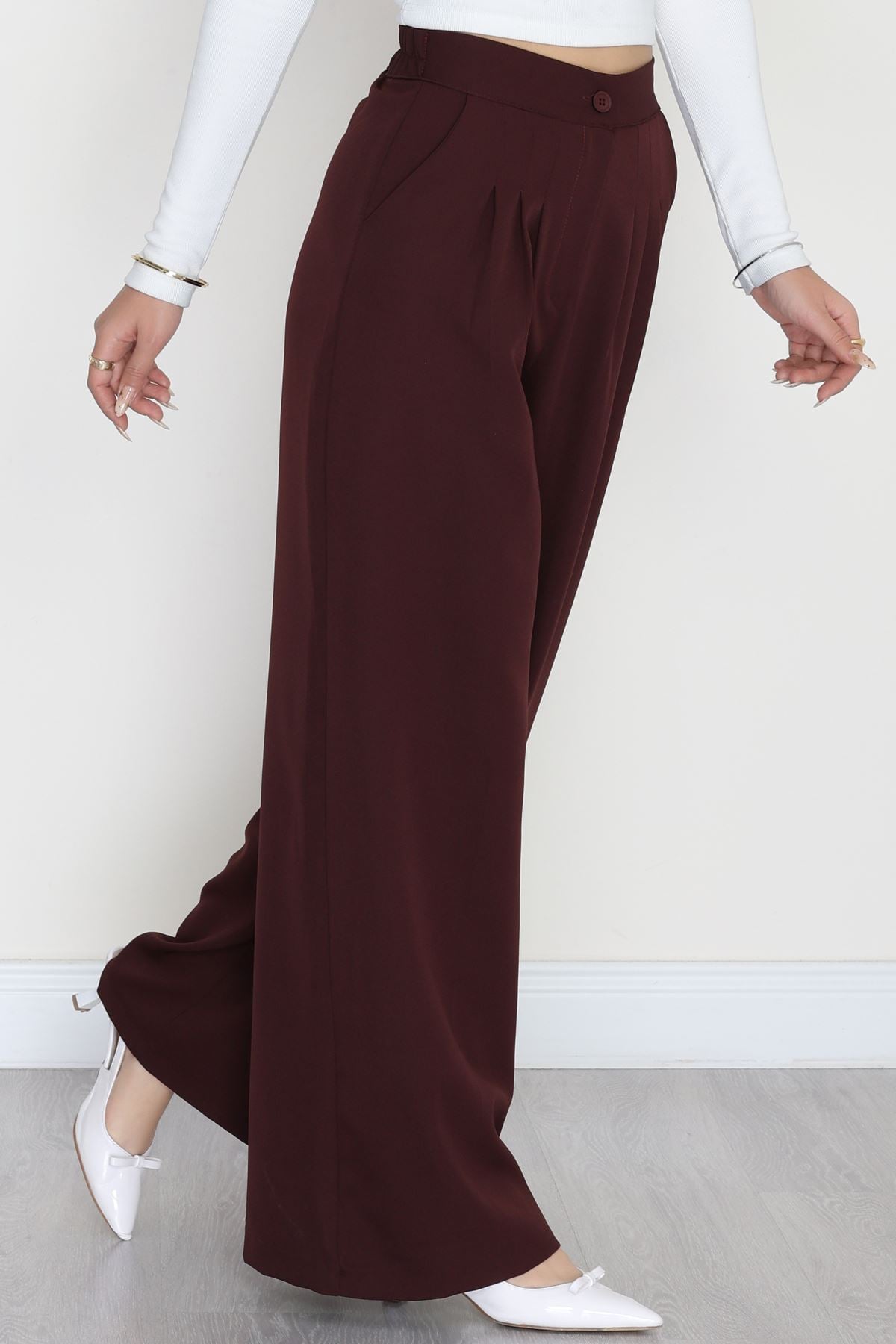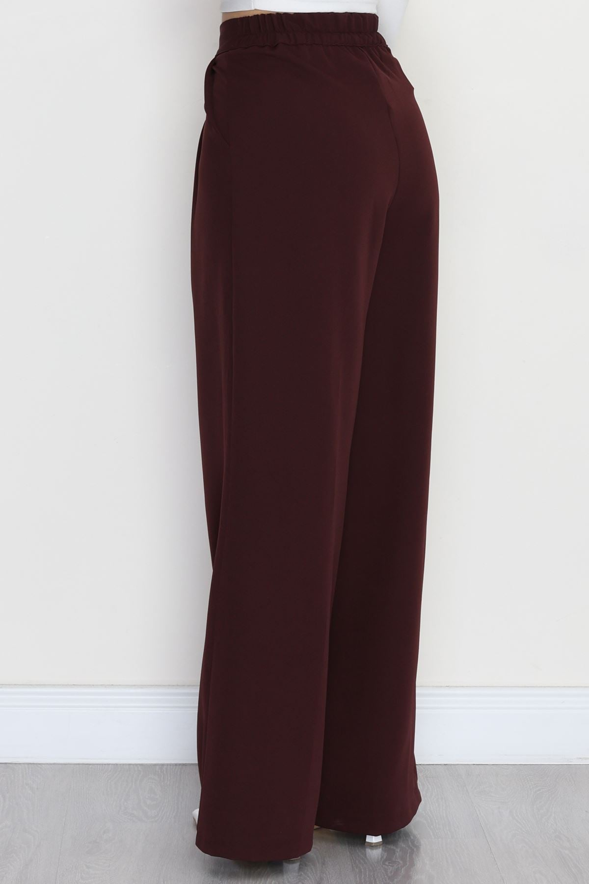 Dabıl Kumaş Beli Lastikli Palazzo Pantolon Mürdüm - 51063.1991.