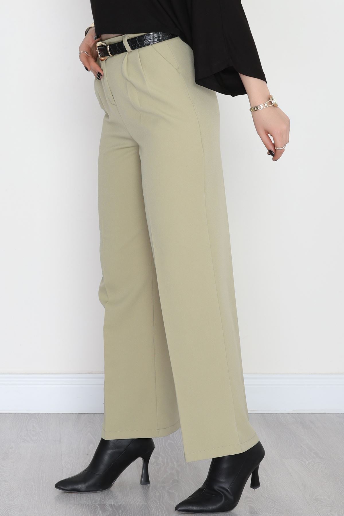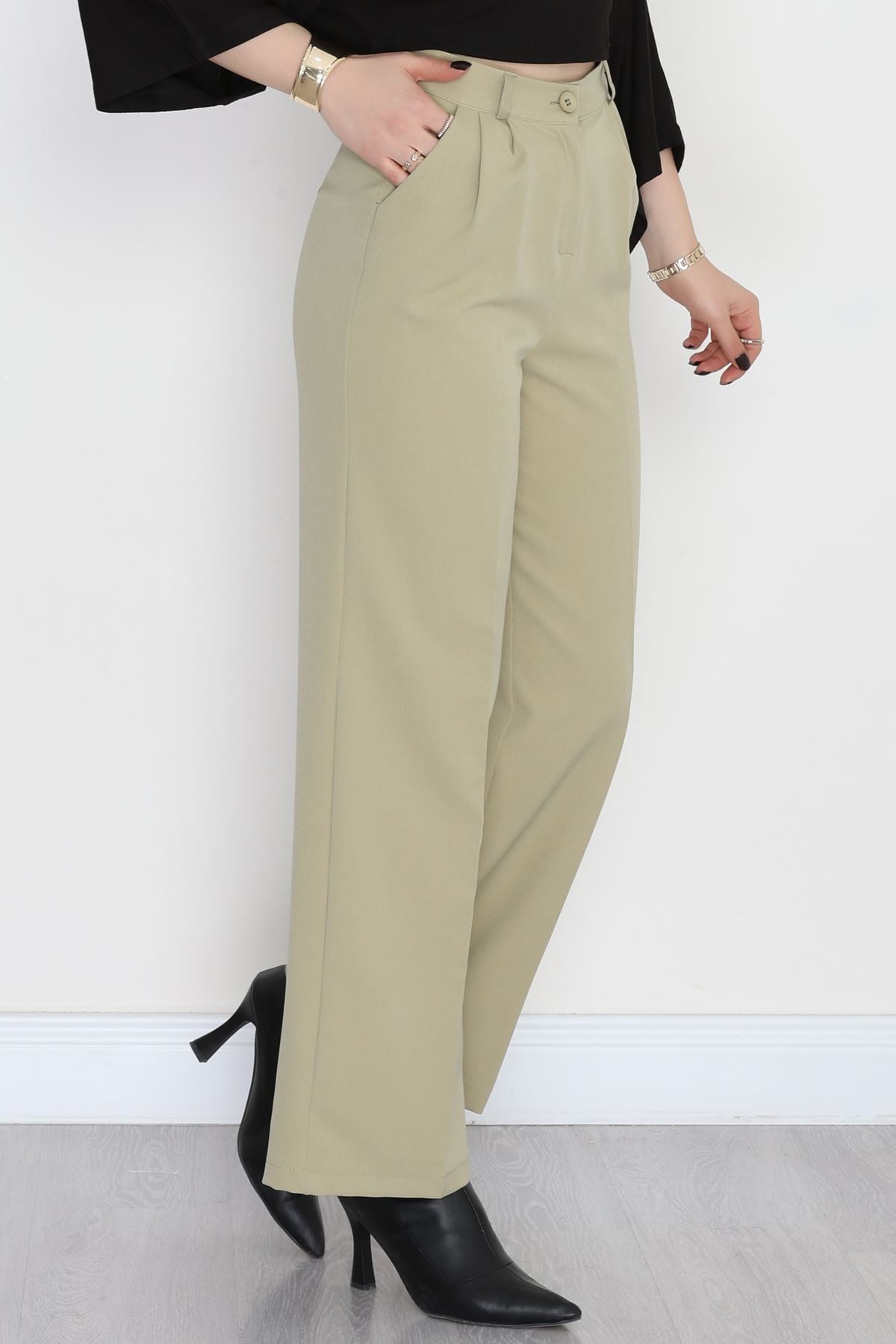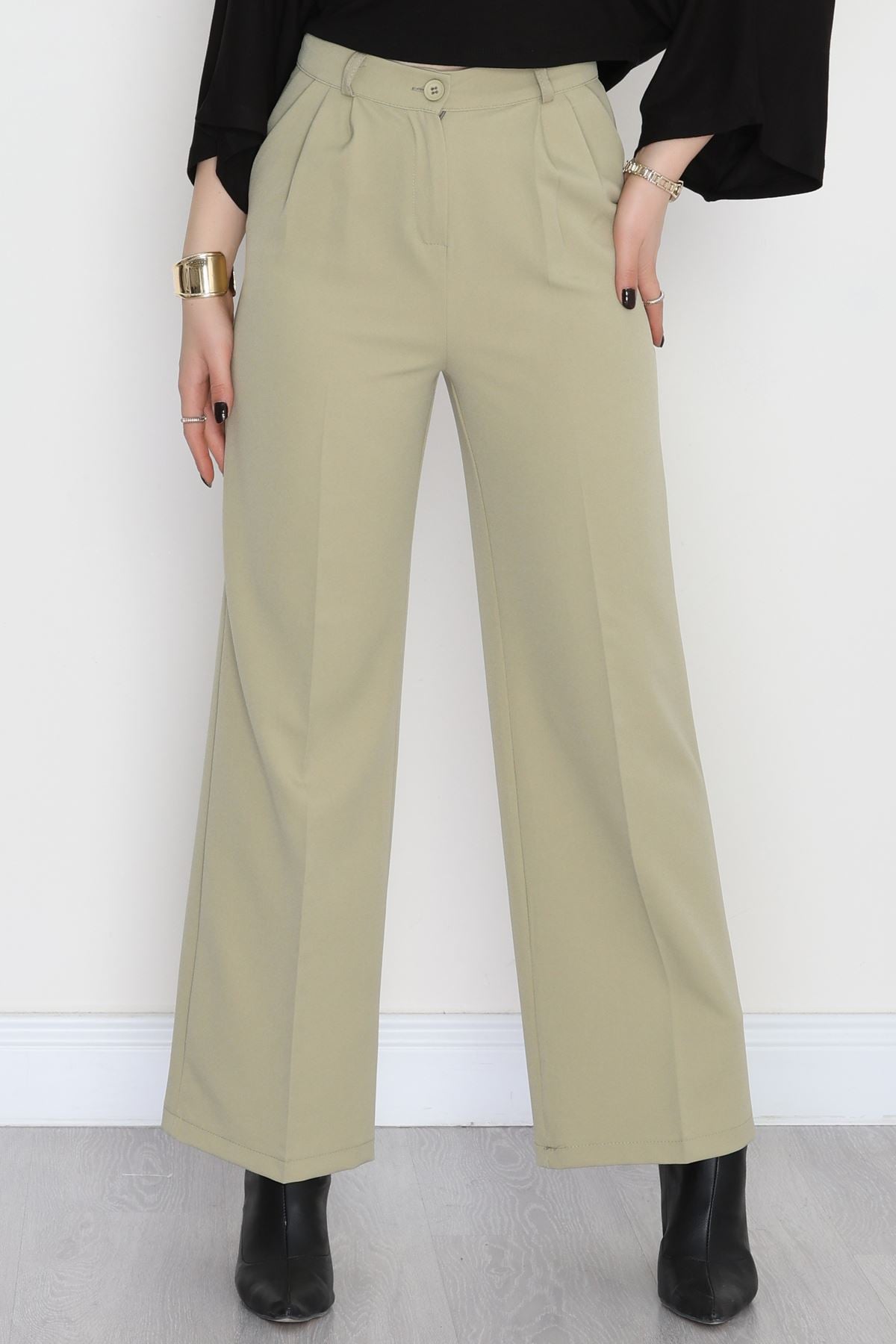 Dabıl Kumaş Pileli Palazzo Pantolon Çağla - 51062.1991.