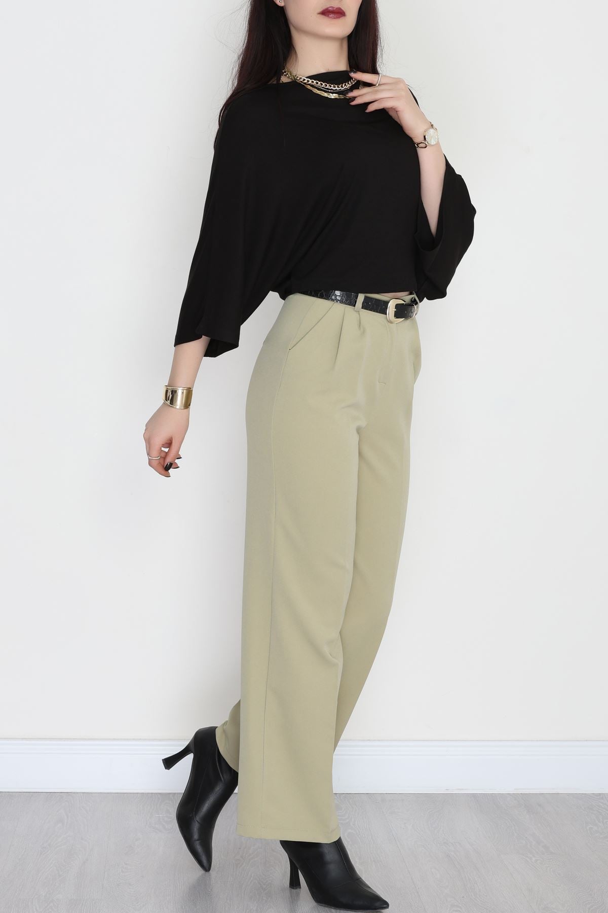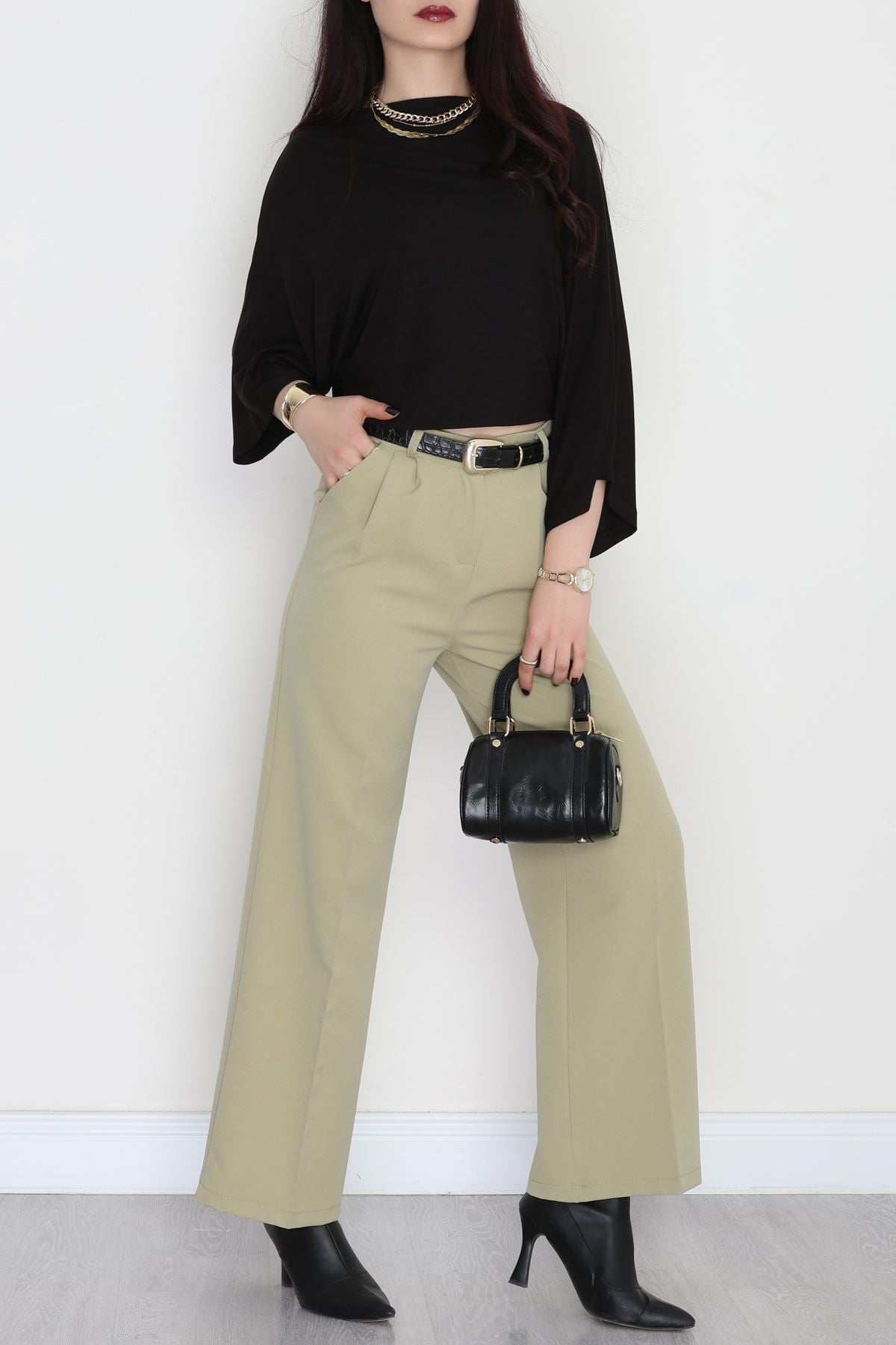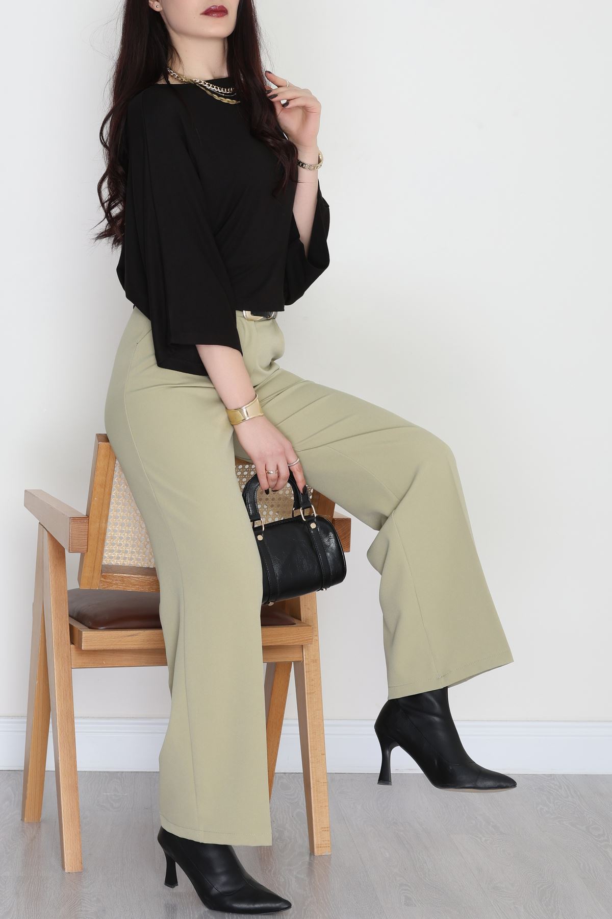 Dabıl Kumaş Pileli Palazzo Pantolon Çağla - 51062.1991.