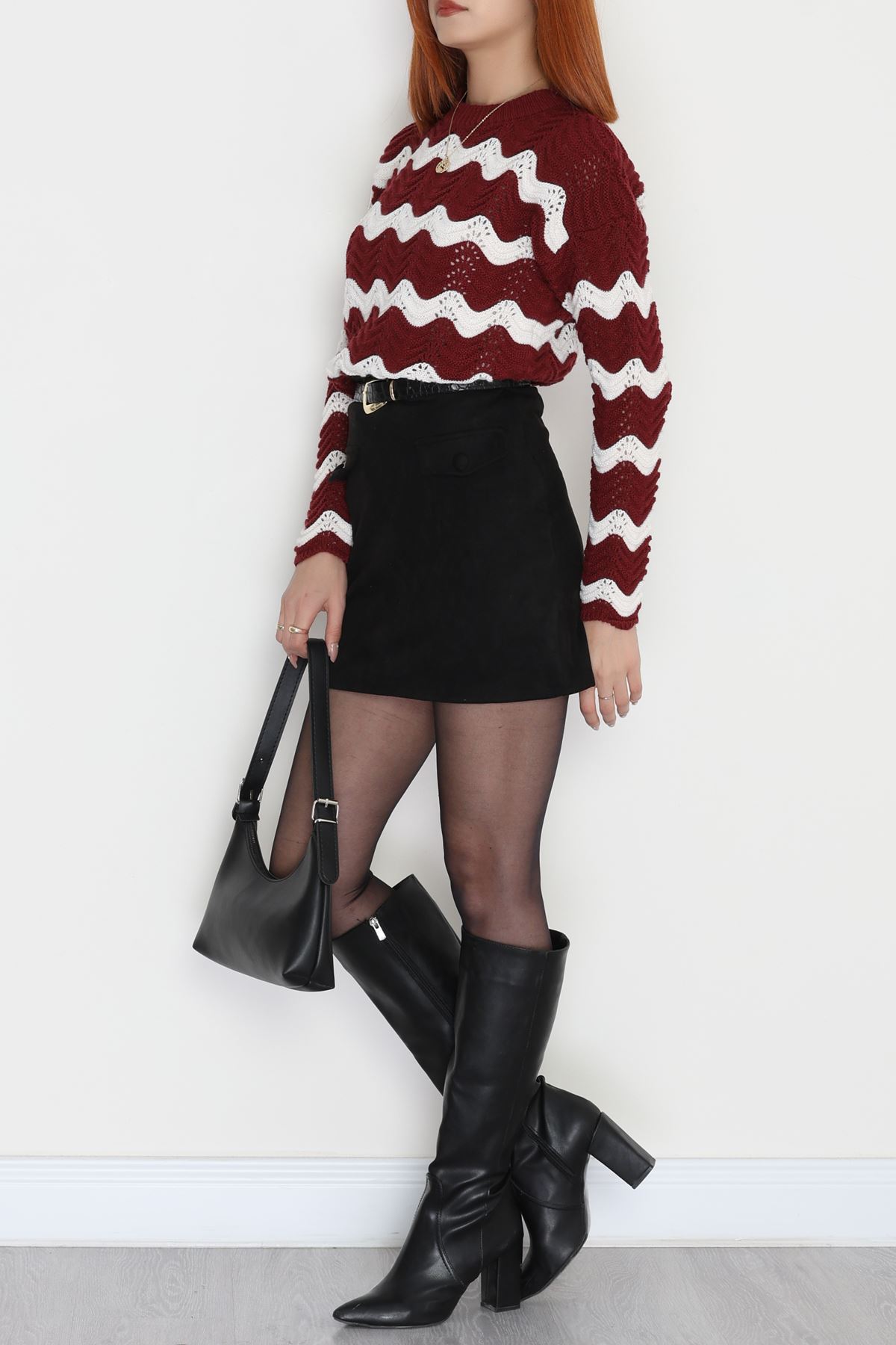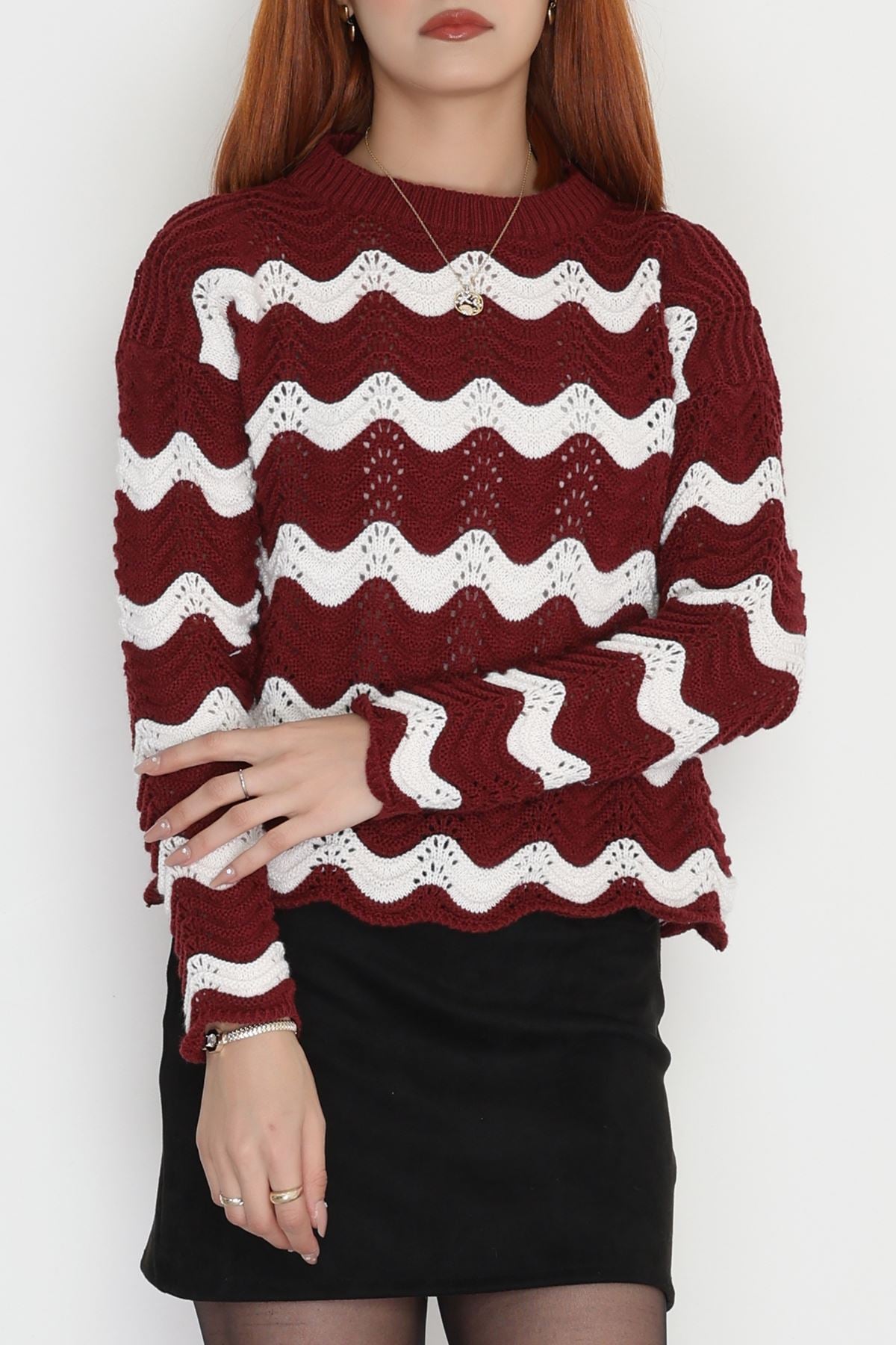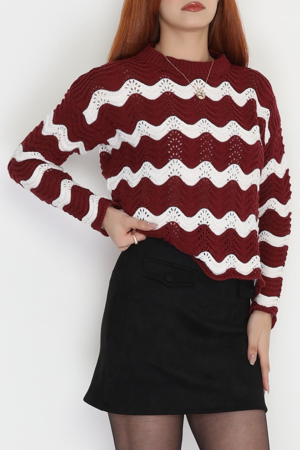 Dalga Çizgili Triko Bordolatte - 1529.1577.