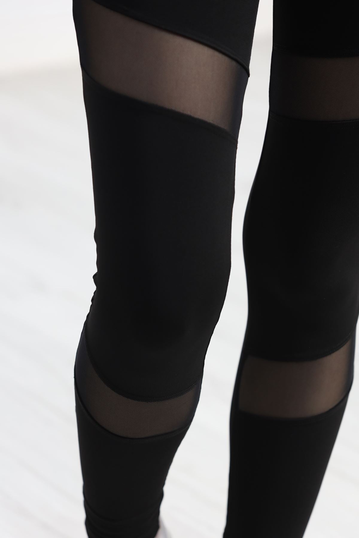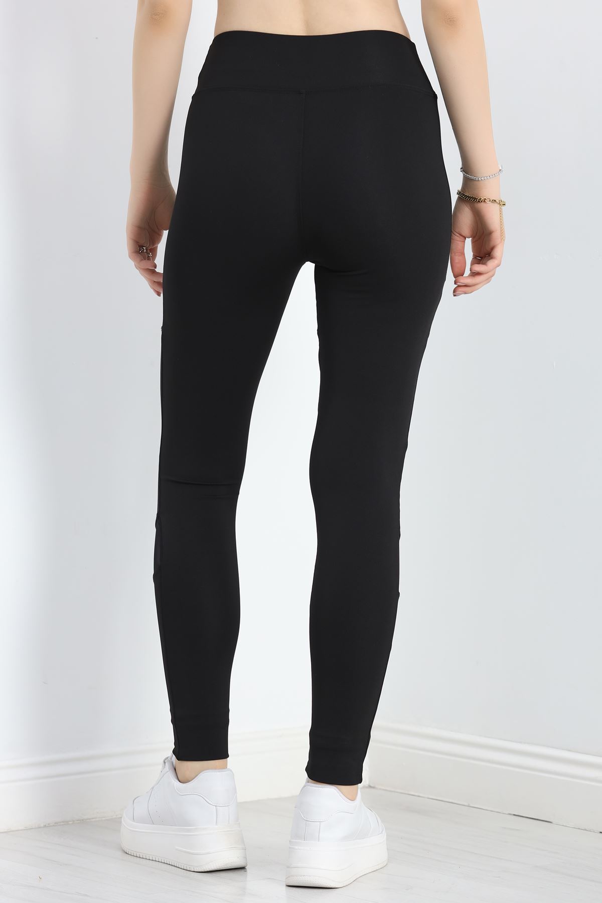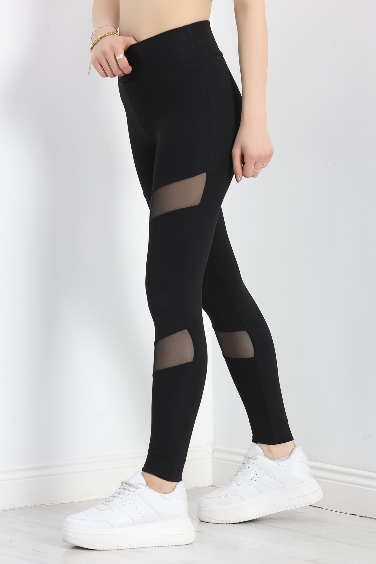 Dalgıç Kumaş Tül Detaylı Yüksekbel Tayt Siyah - 30220.1128.