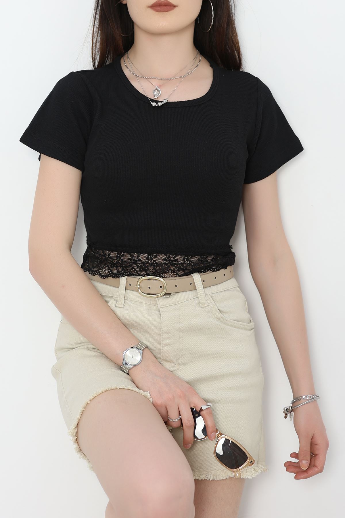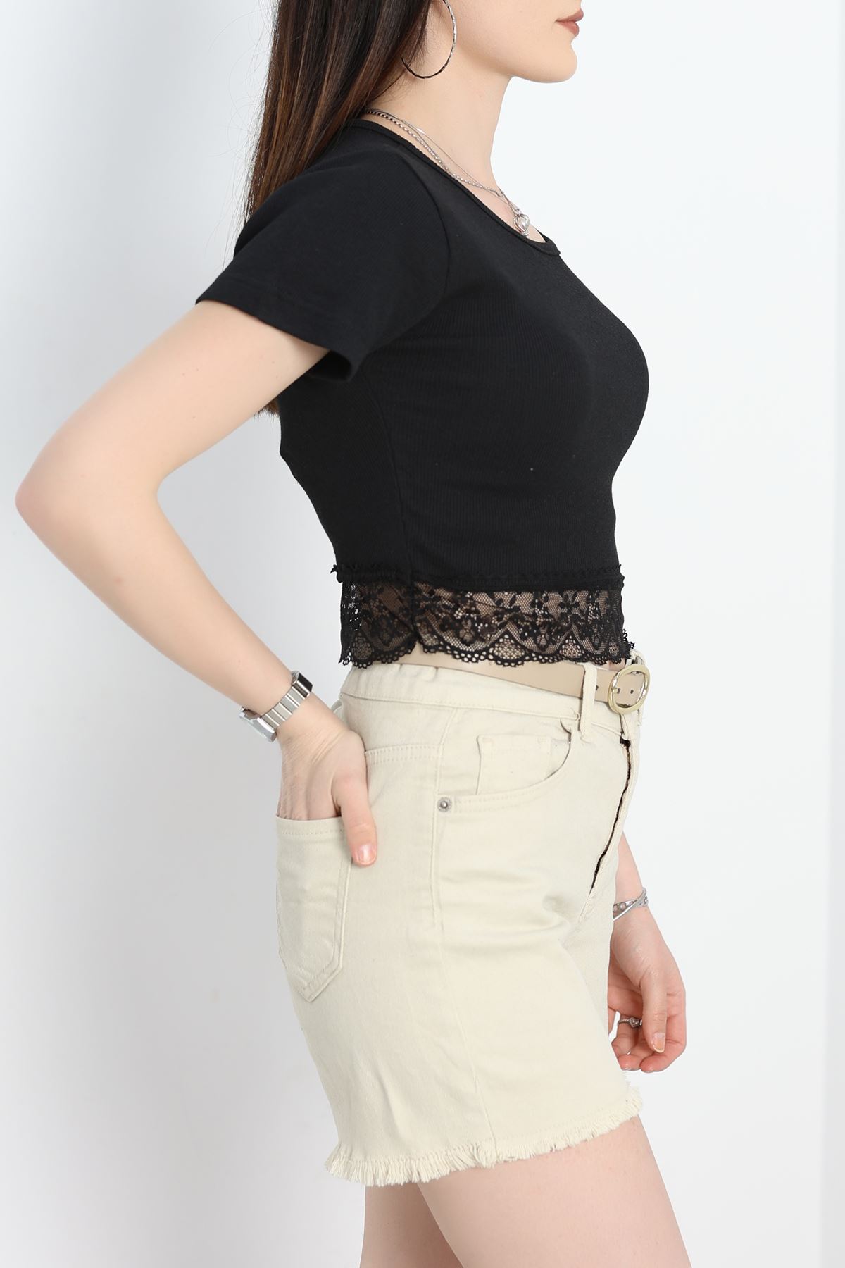 Dantel Detay Crop Body Siyah - 70054.599.