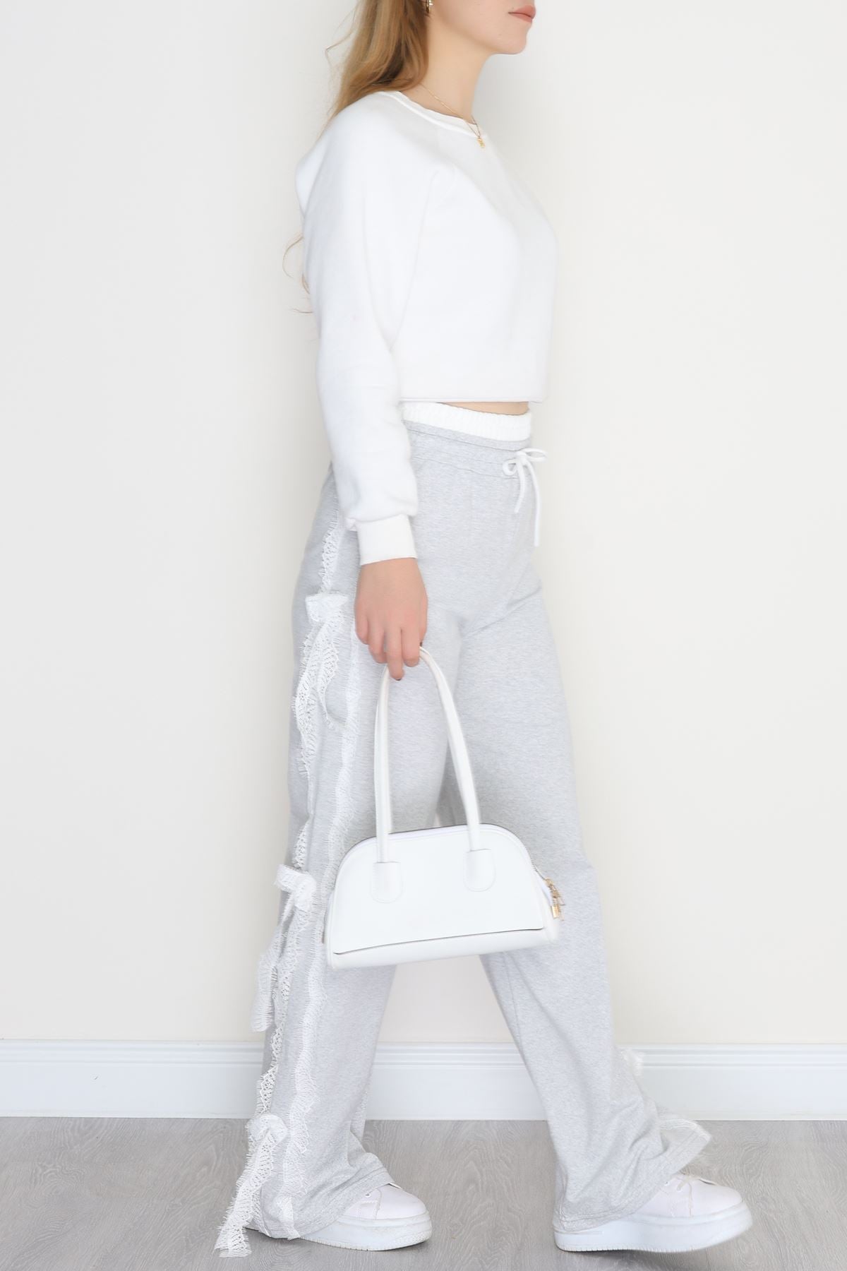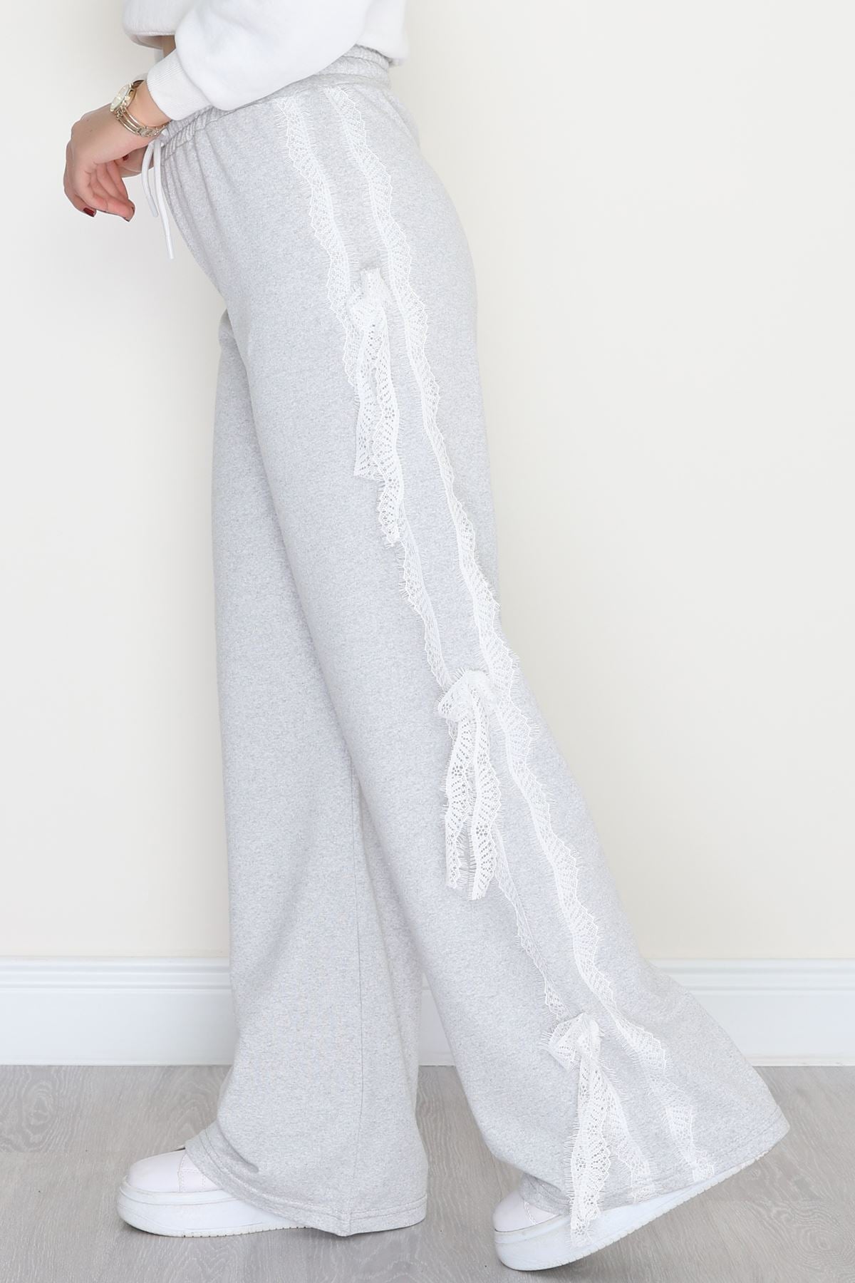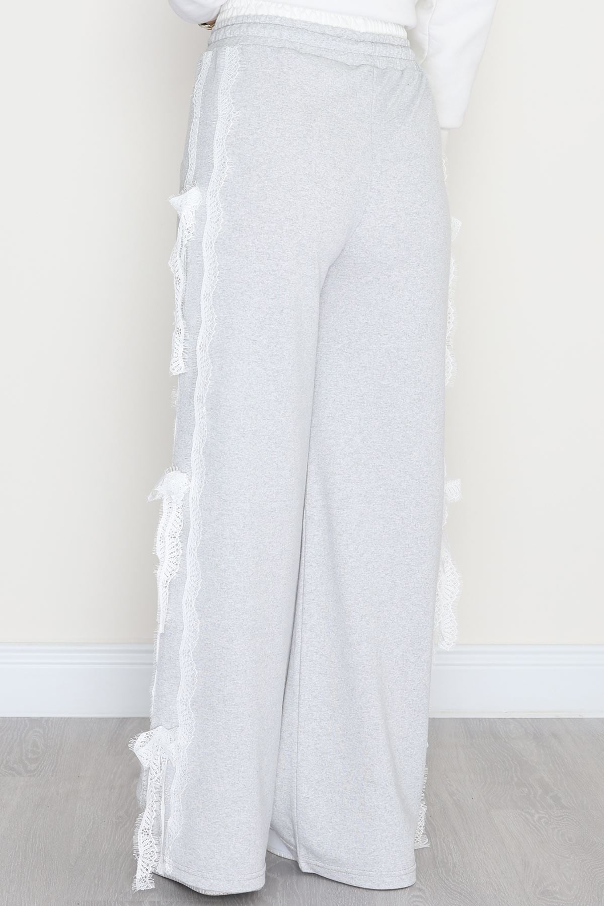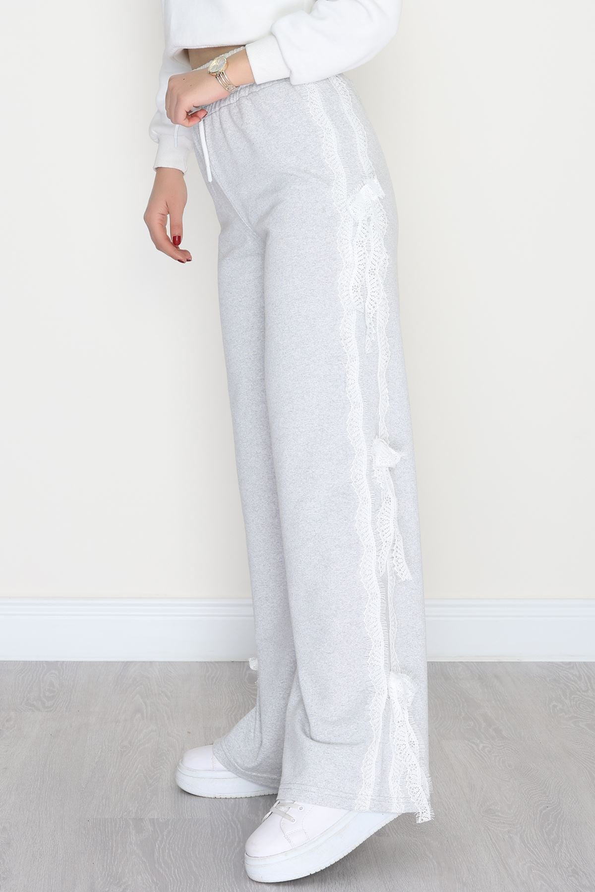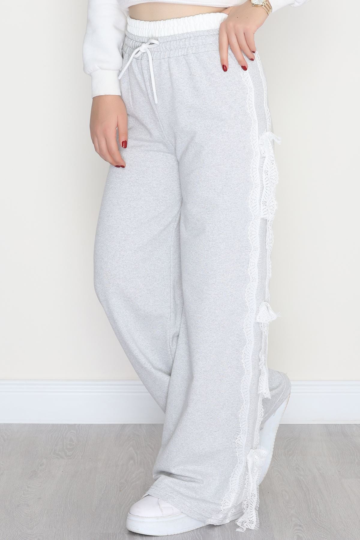 Dantel Şeritli 2 İplik Eşofman Altı Gri - 50798.1857.