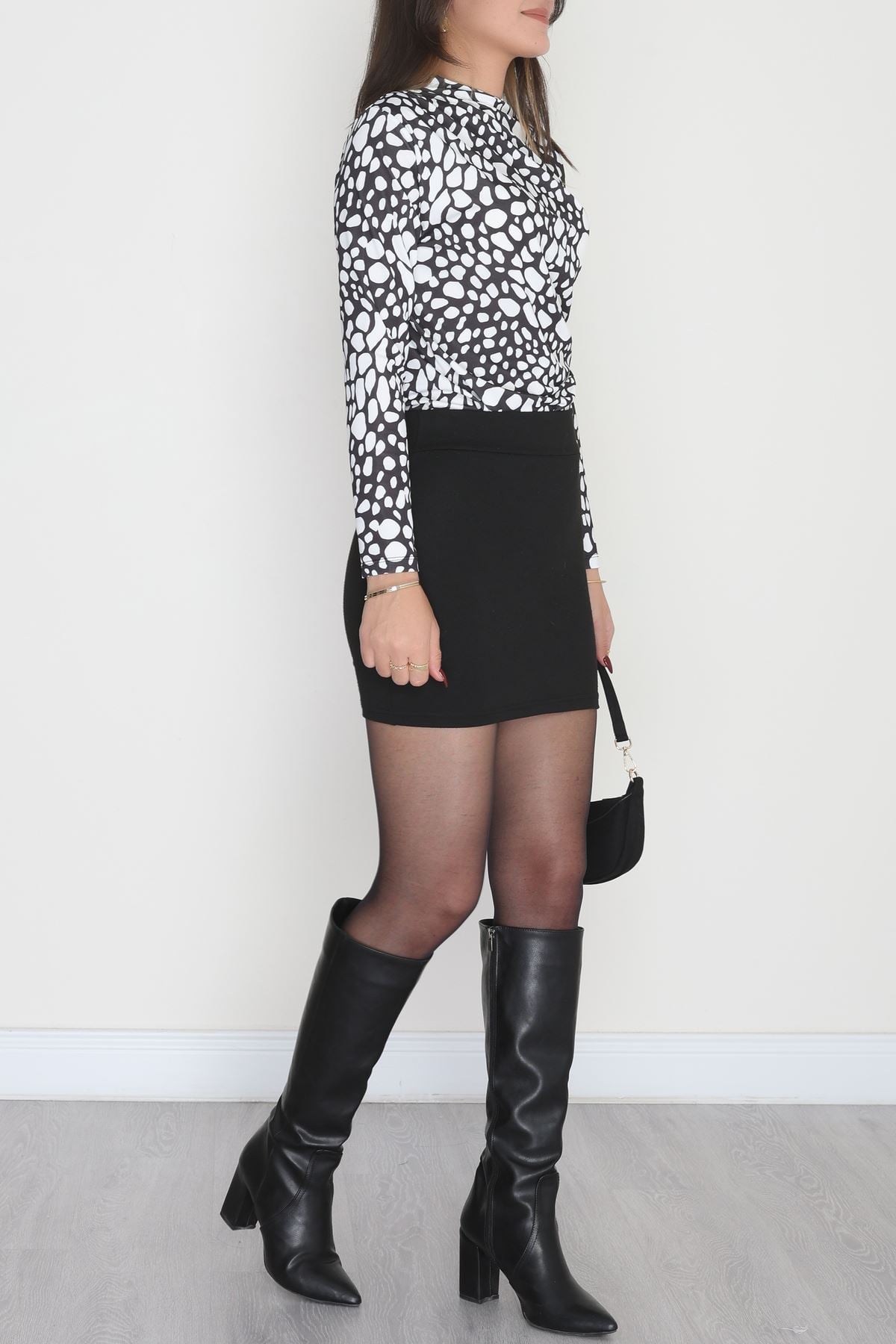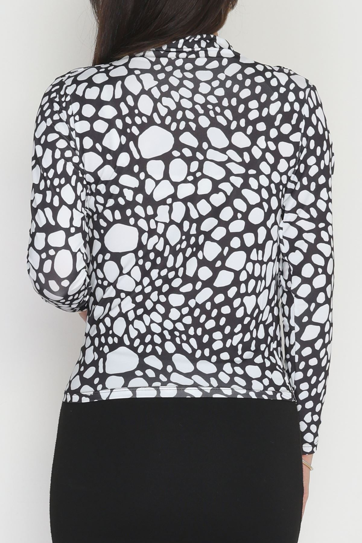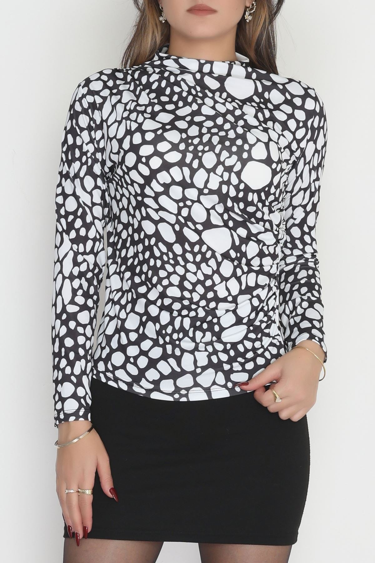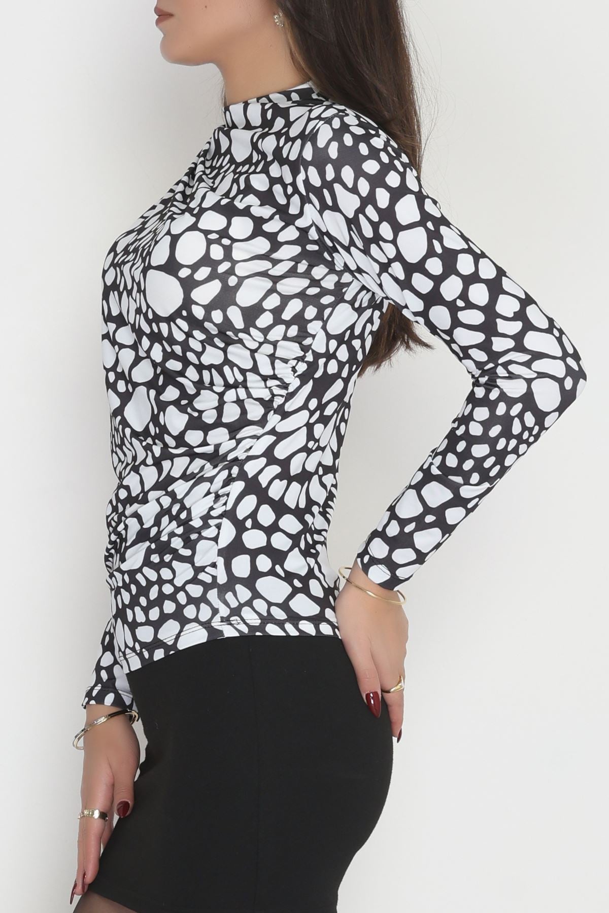 Desenli Dik Yaka Sandy Bluz Siyahbeyaz - 70689.1949.