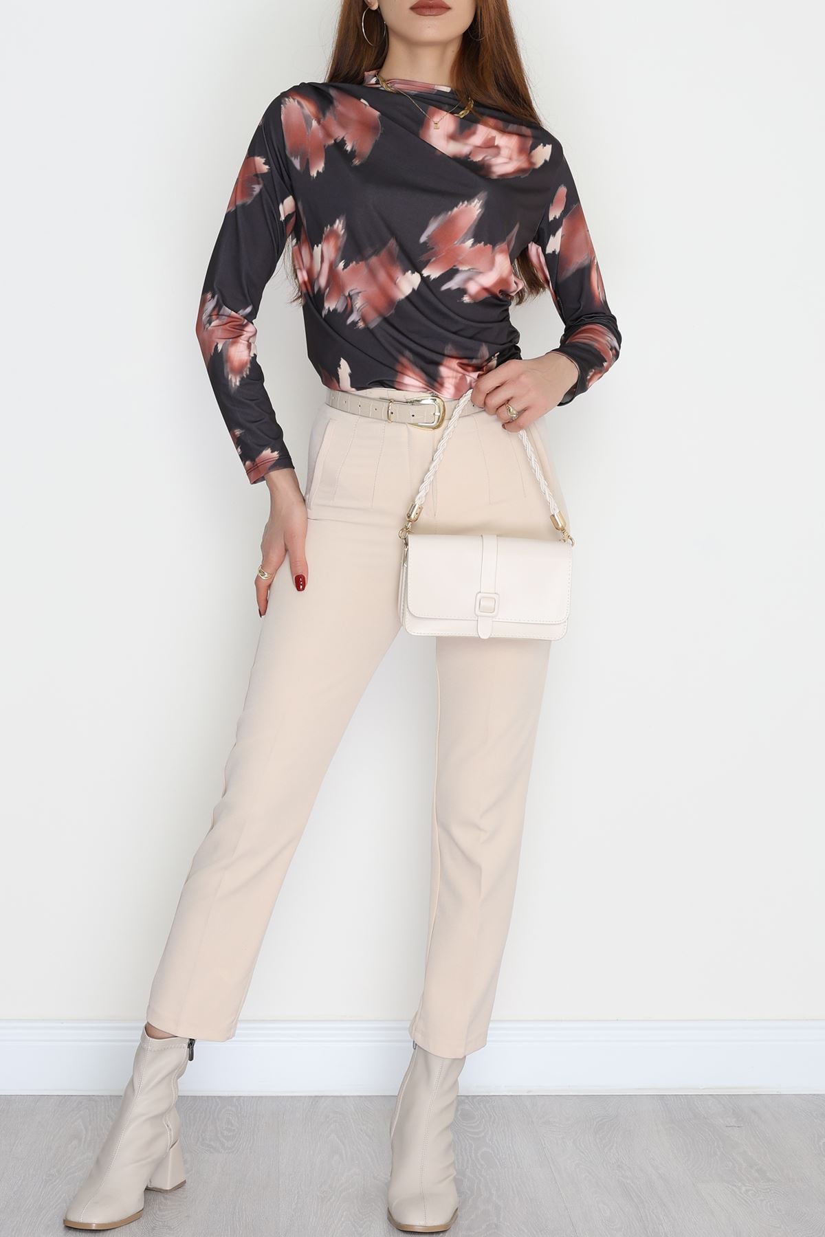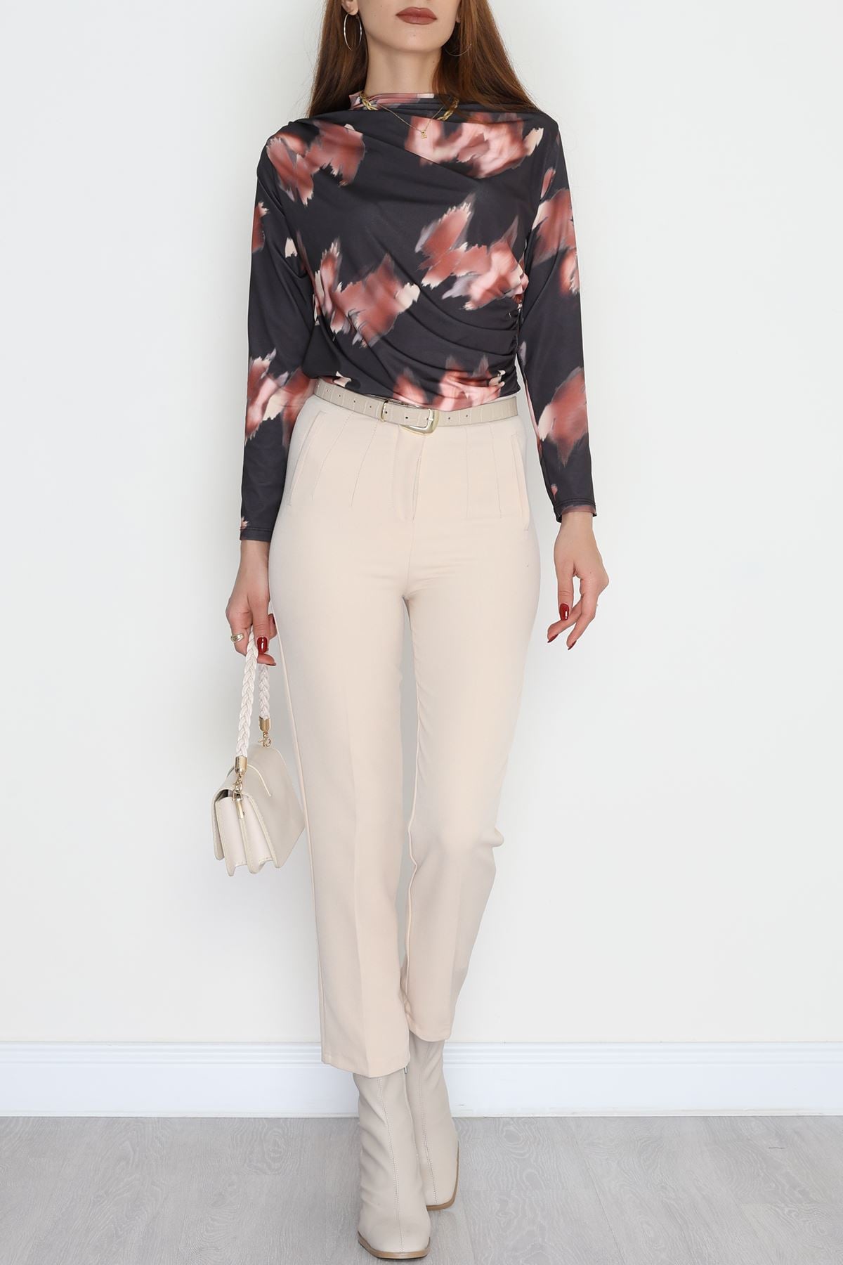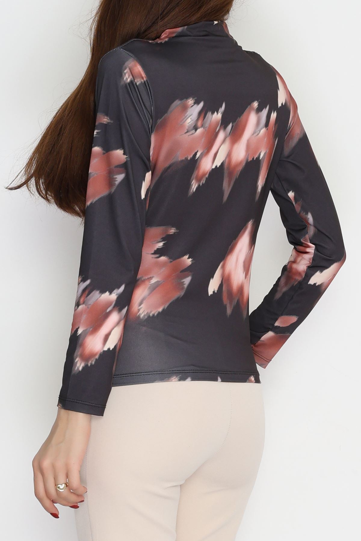 Desenli Dik Yaka Sandy Bluz Siyahkahve - 70751.1949.