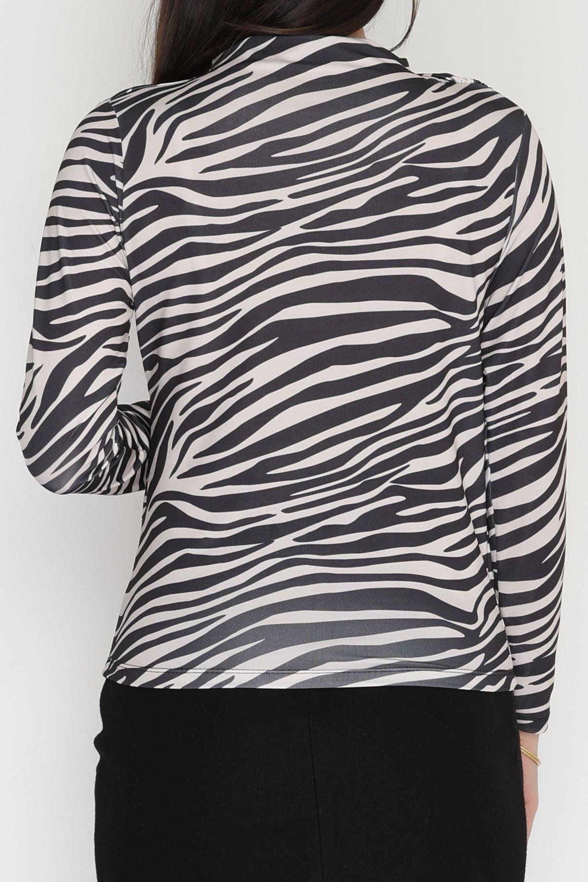 Desenli Dik Yaka Sandy Bluz Vizonsiyah - 70689.1949.
