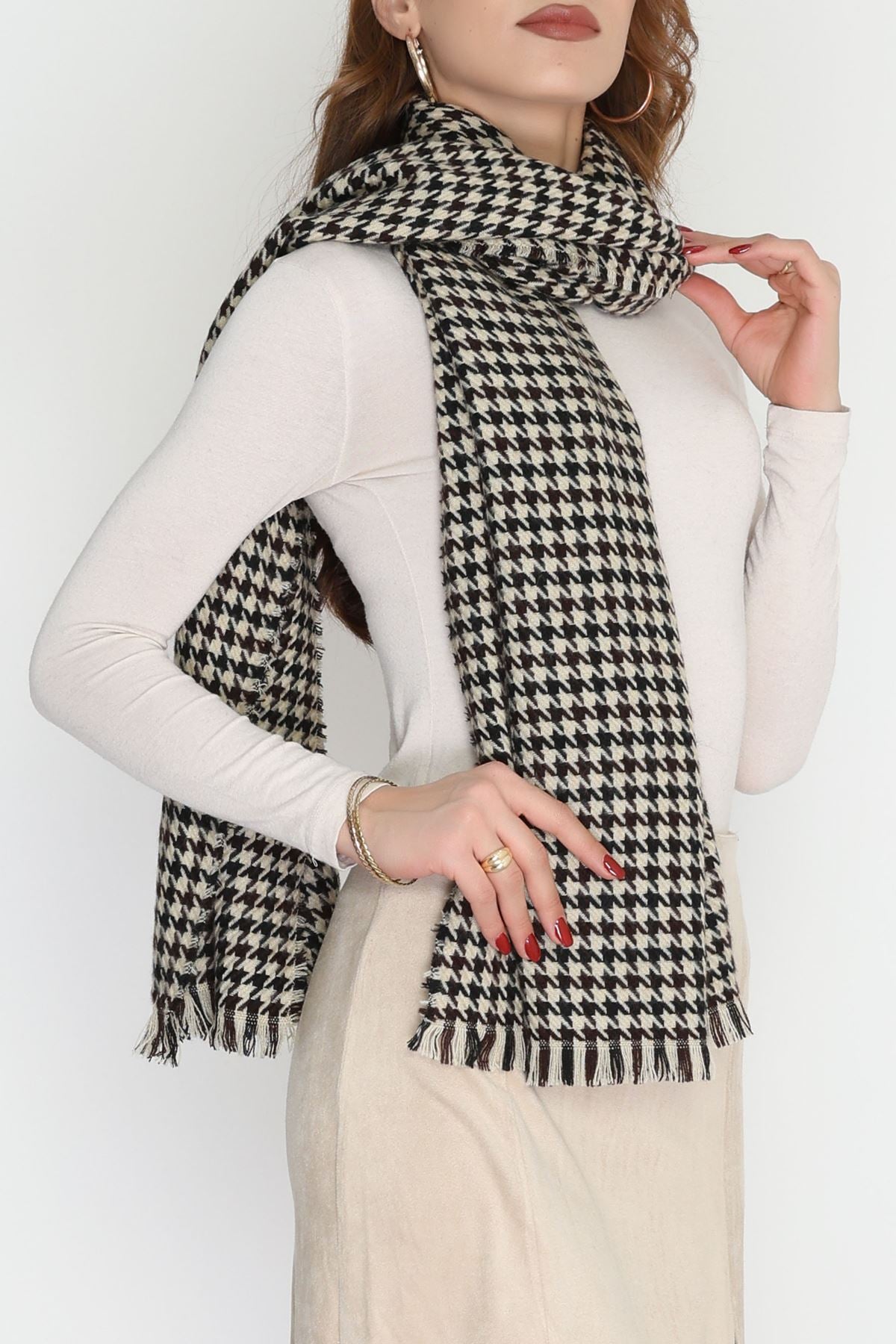 Desenli Kaşe Şal Bejsiyah - 70811.750.