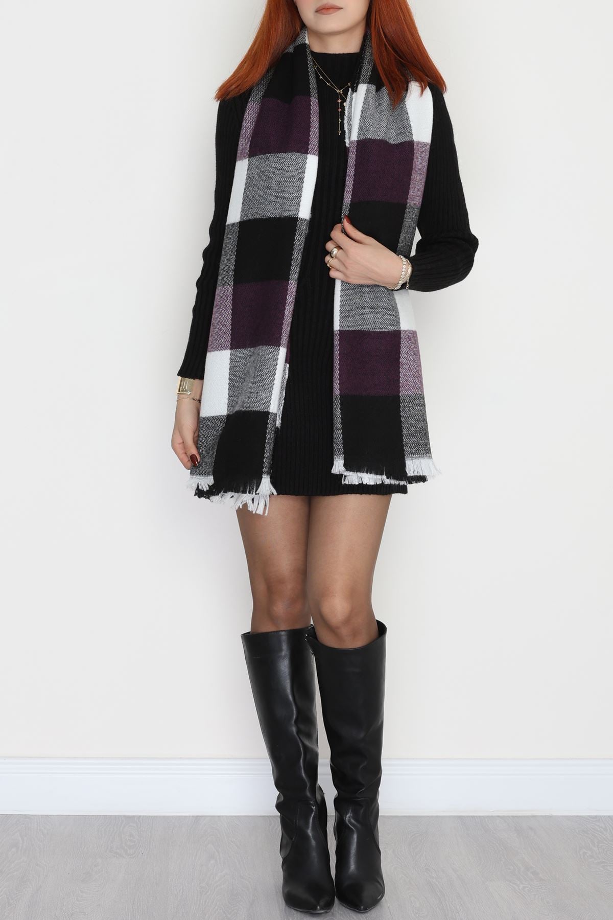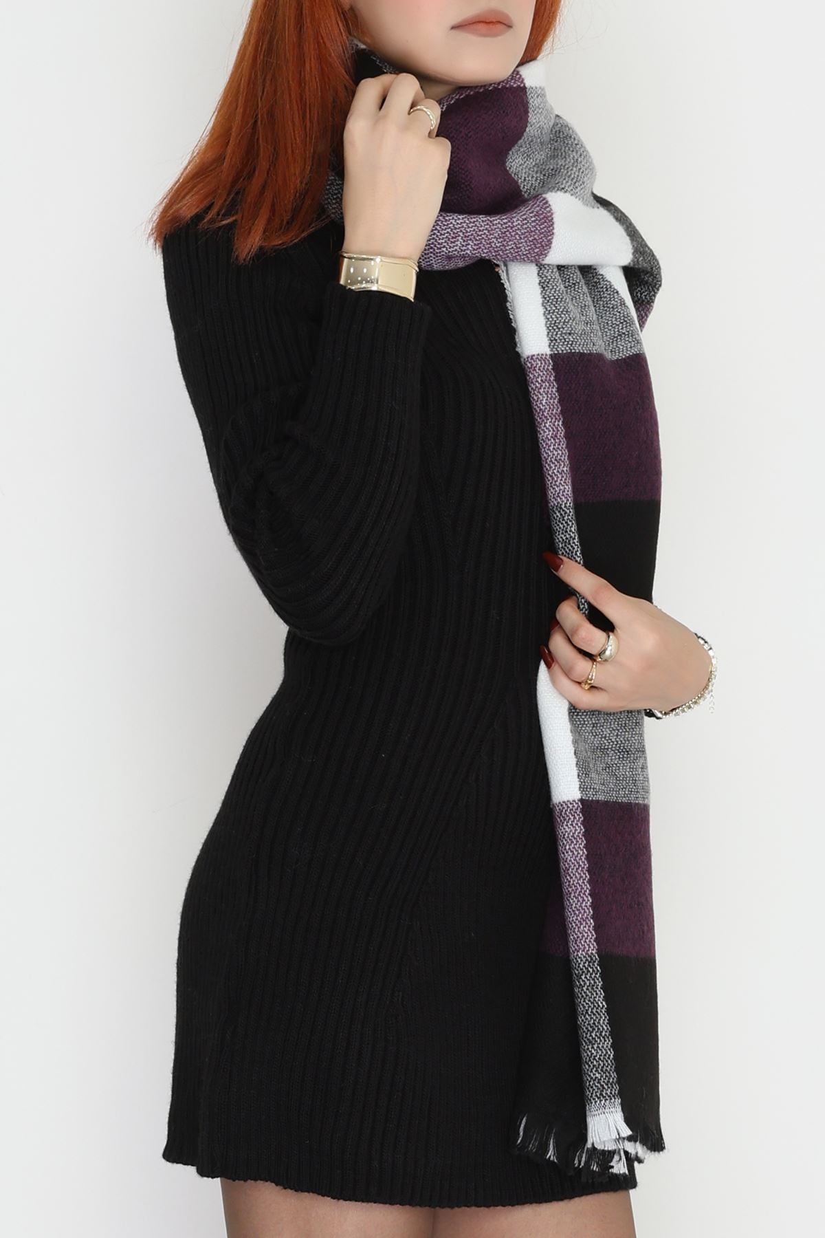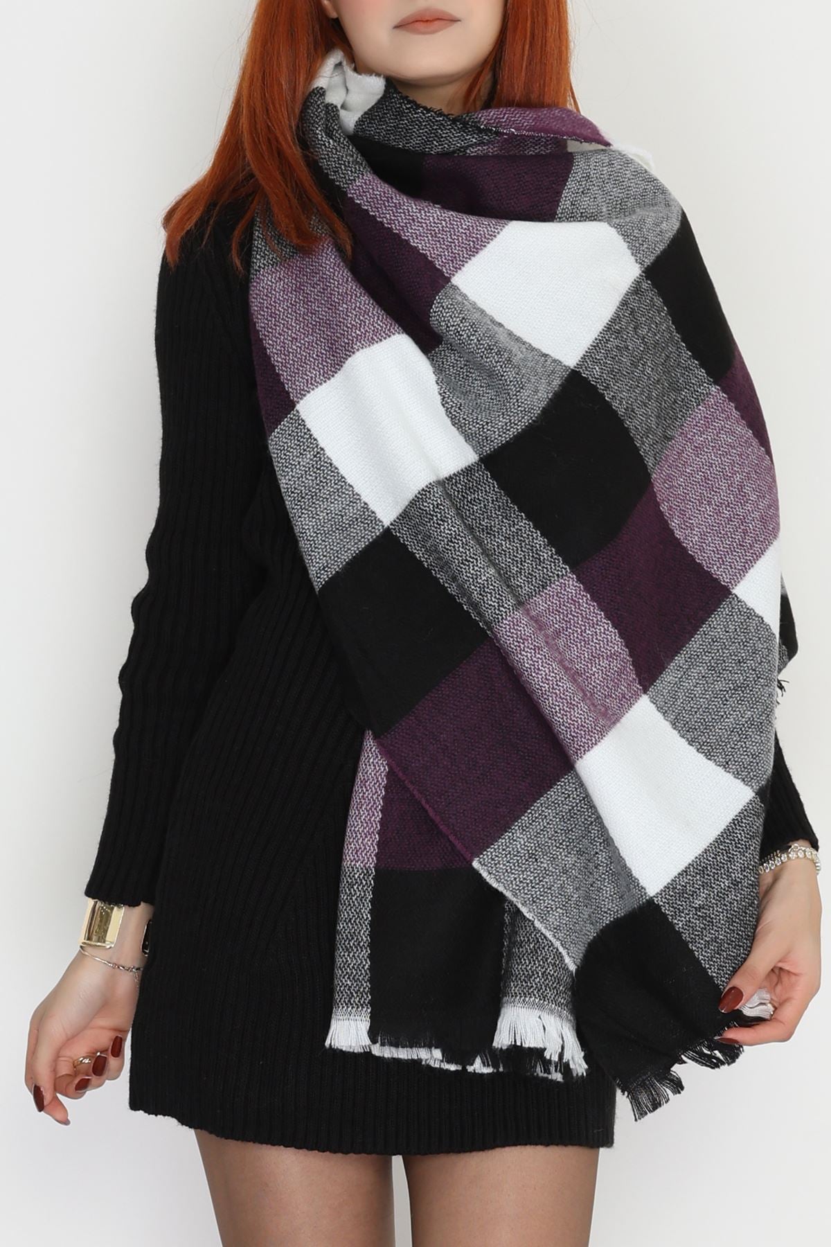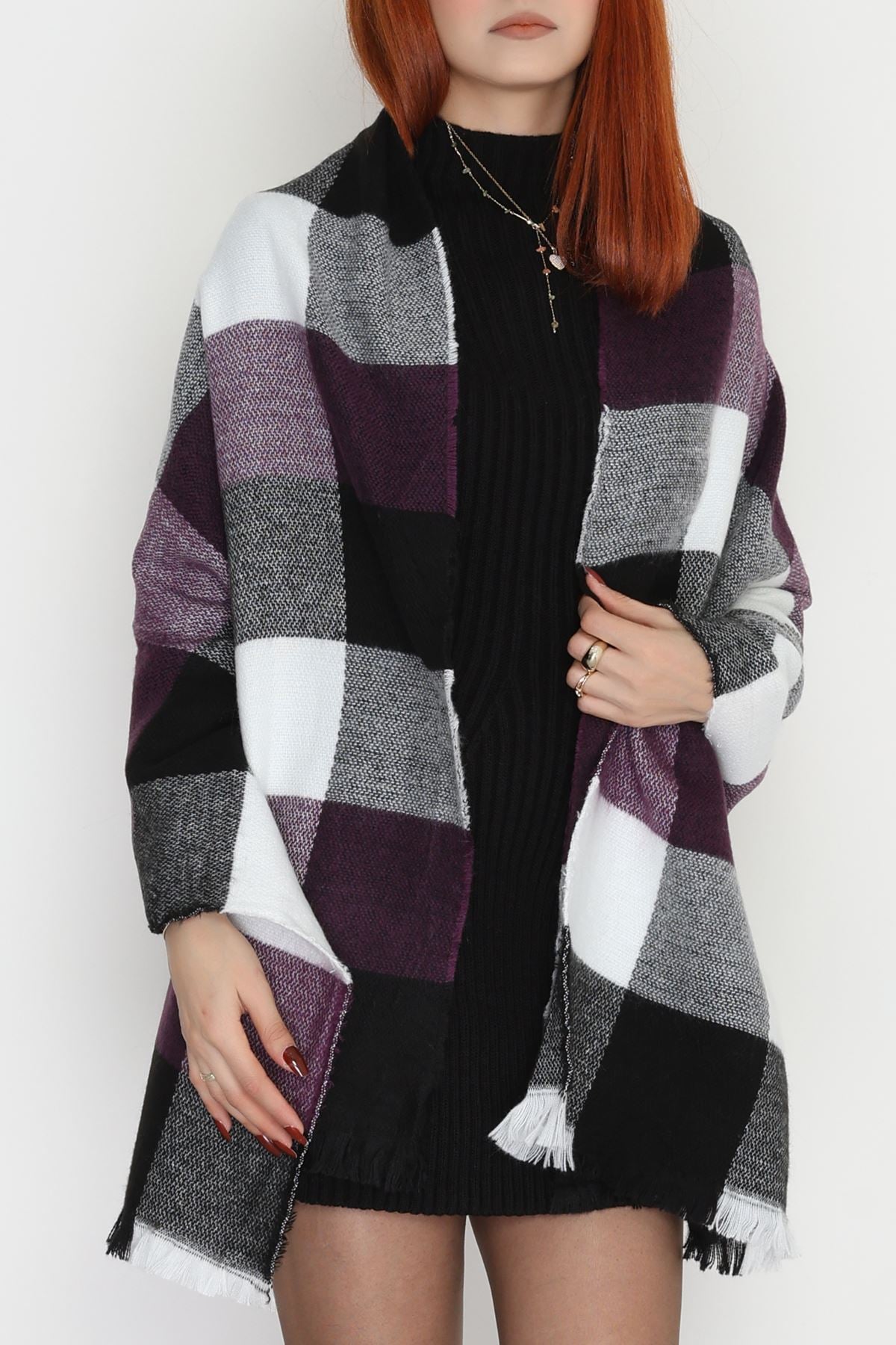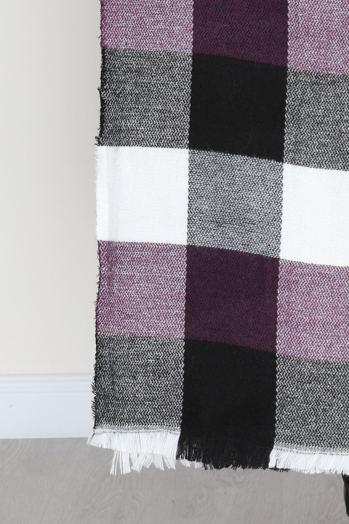 Desenli Kaşe Şal Mürdümsiyah - 70811.750.