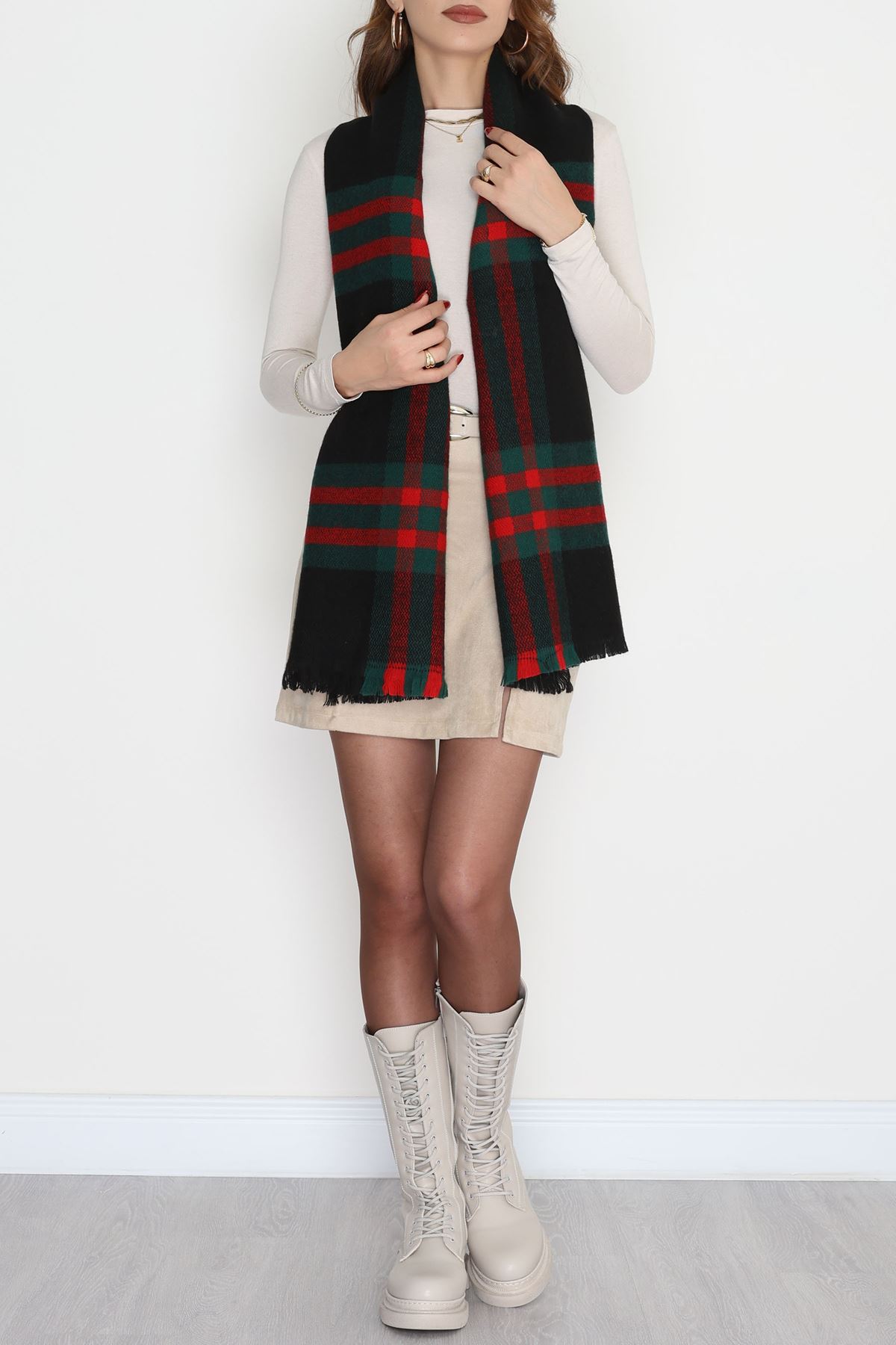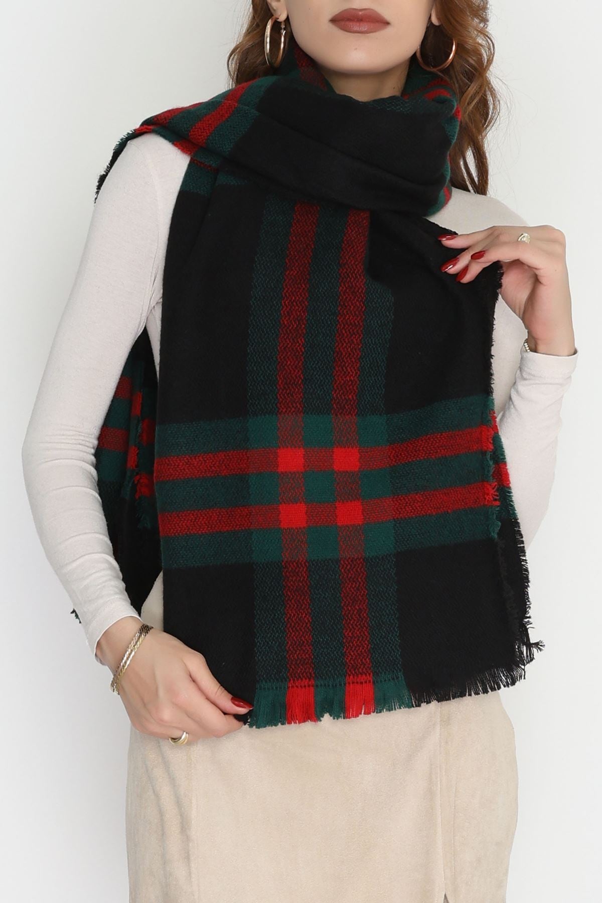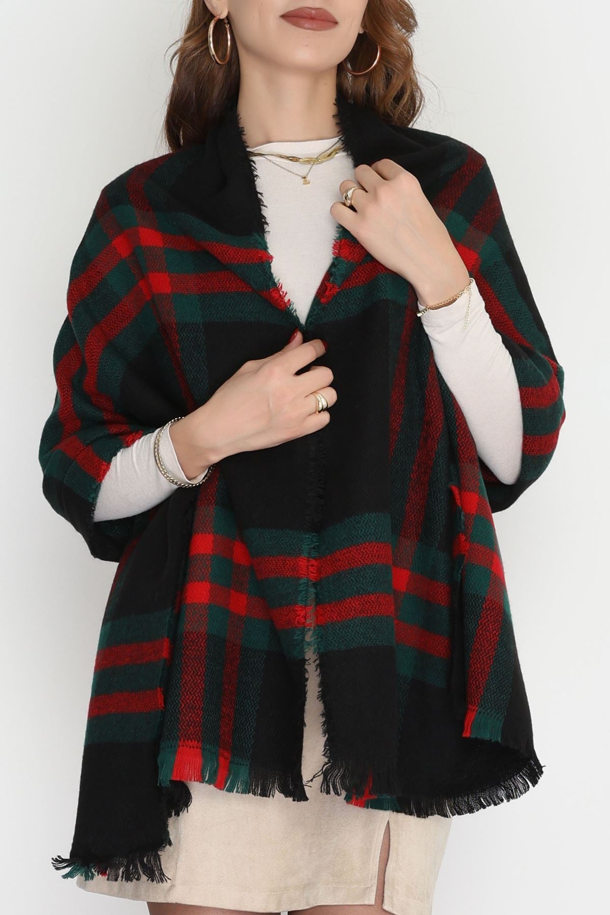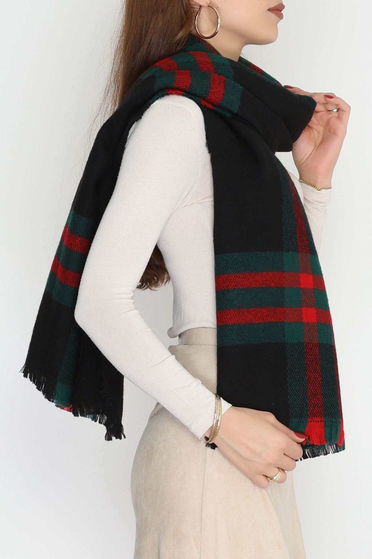 Desenli Kaşe Şal Siyahyeşil - 70811.750.