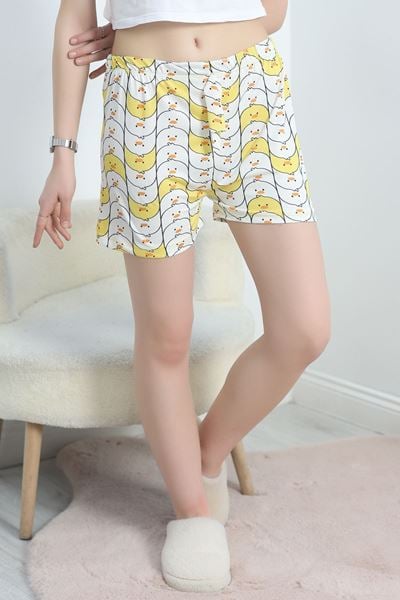 Desenli Milan Kumaş Pijama Şort Beyazsarı - 60241.1878.