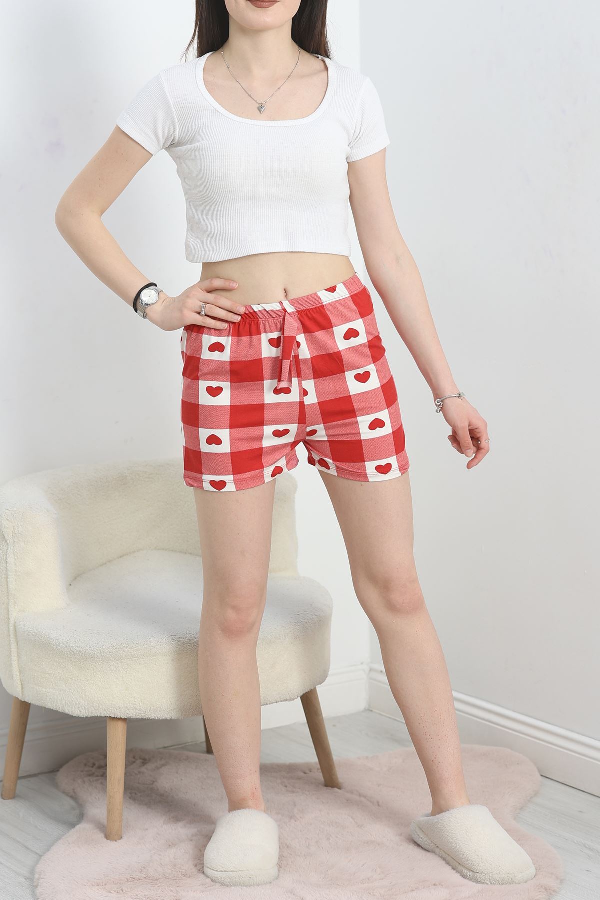 Desenli Milan Kumaş Pijama Şort Kırmızıkareli - 60241.1878.