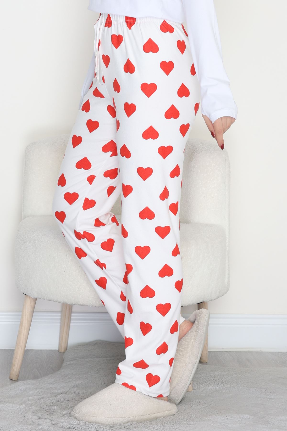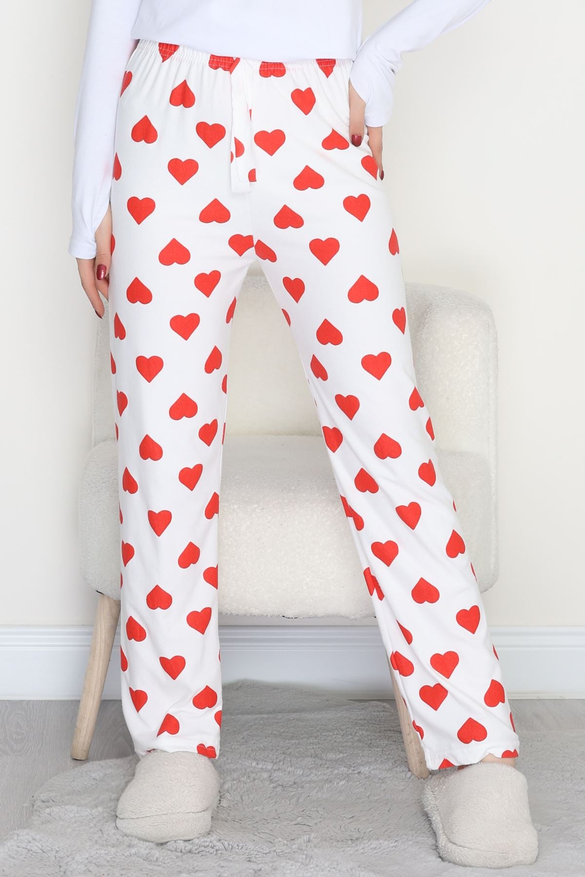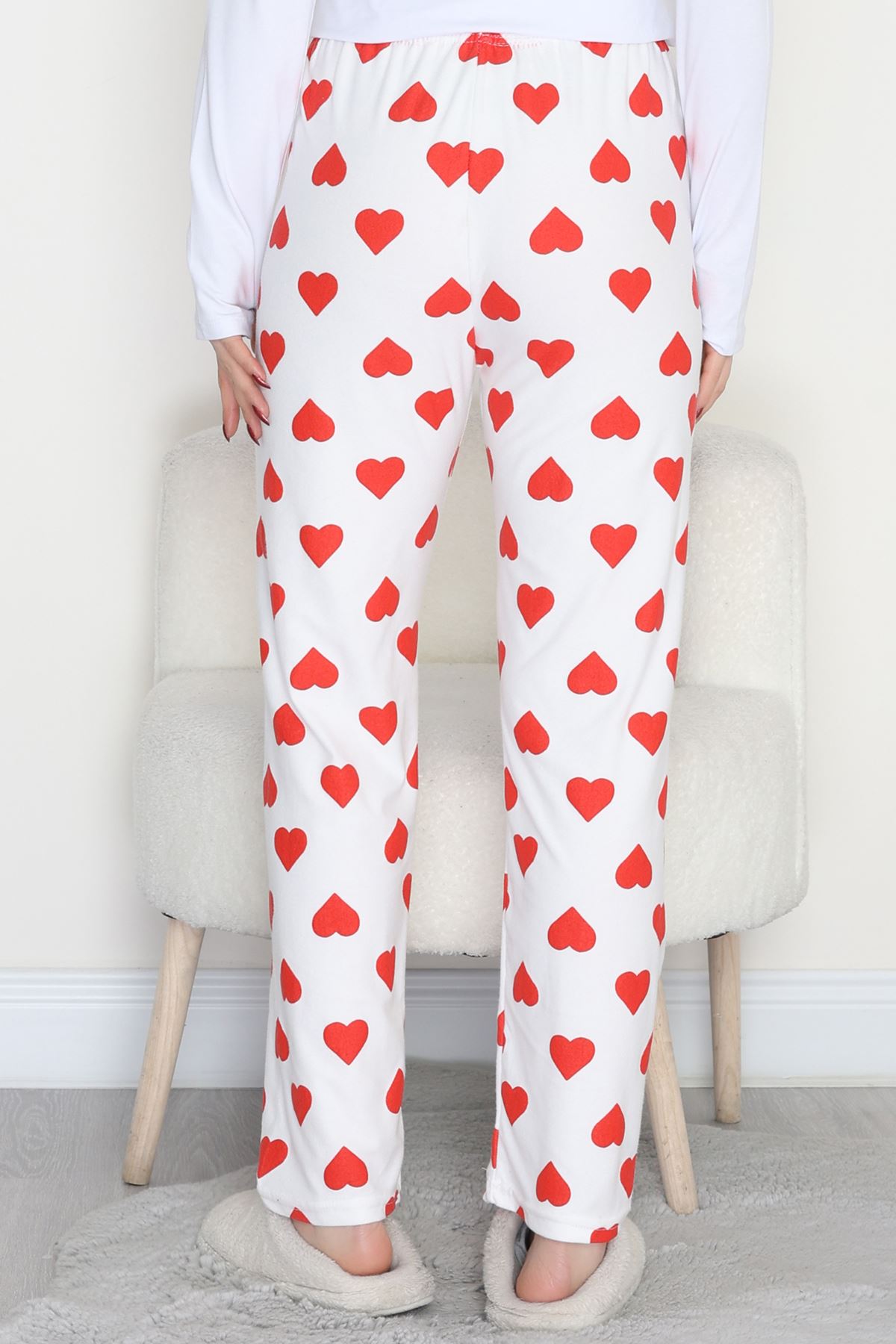 Desenli Süet Pijama Altı Beyazkırmızıkalp - 103.1287.