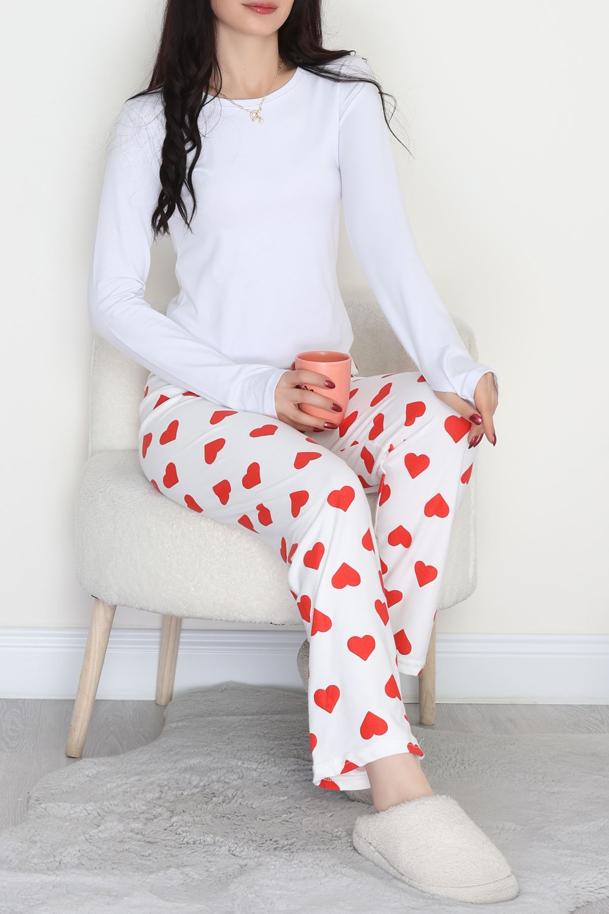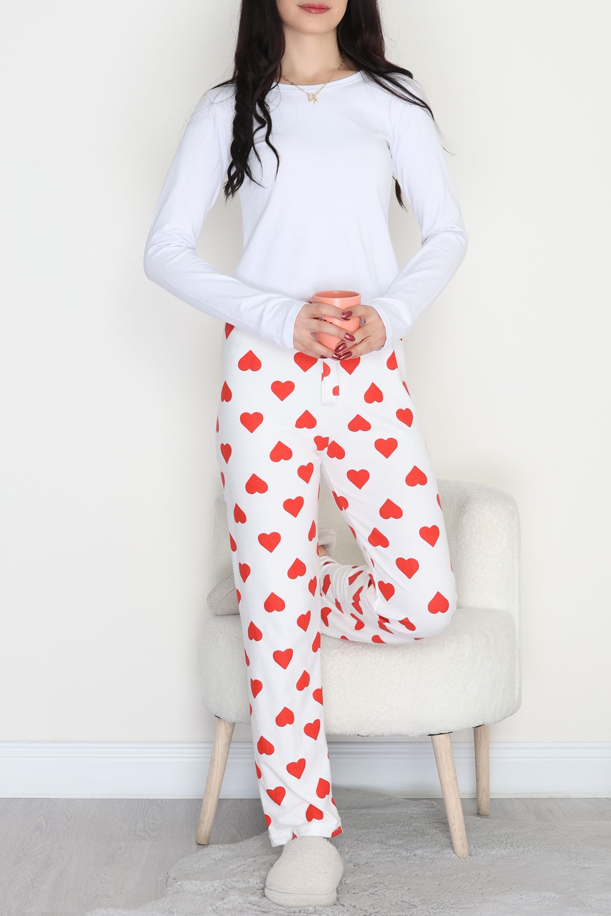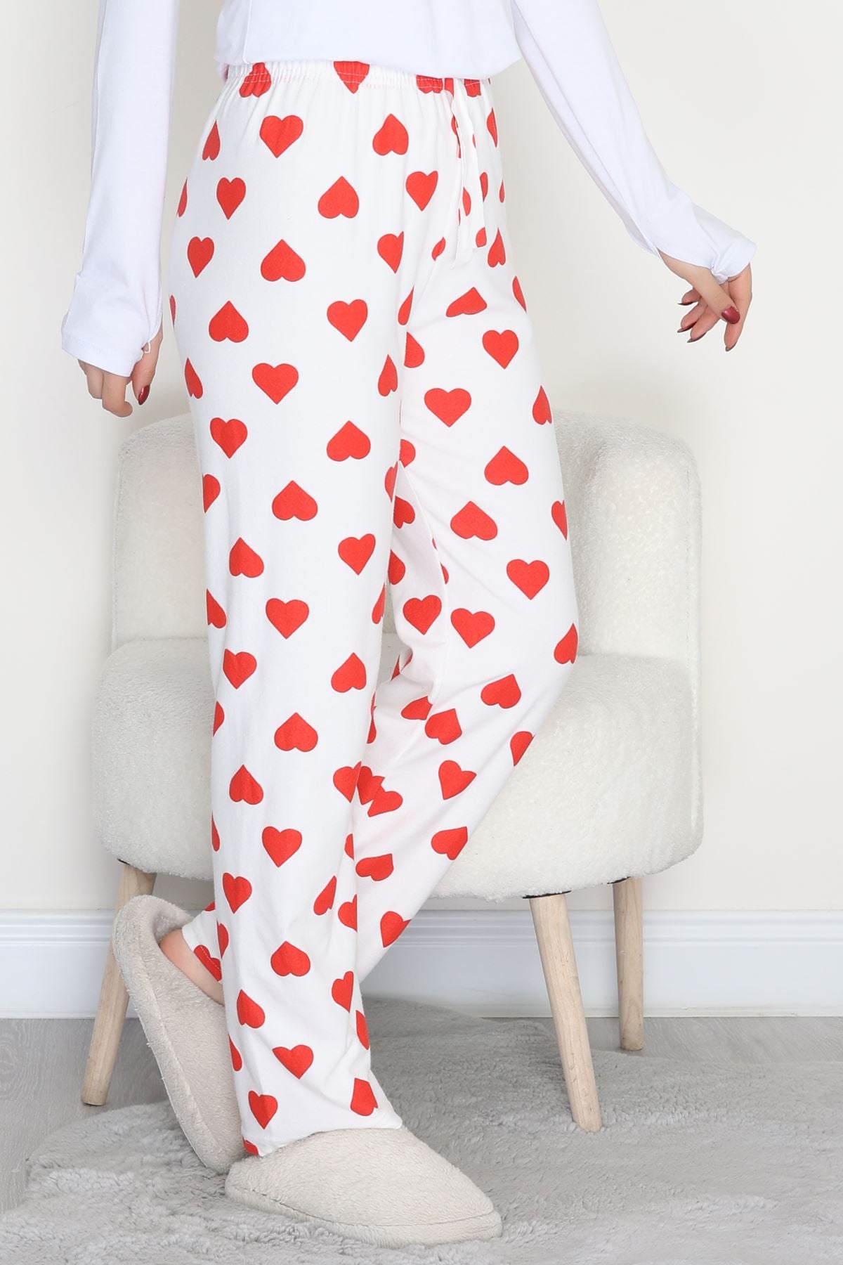 Desenli Süet Pijama Altı Beyazkırmızıkalp - 103.1287.