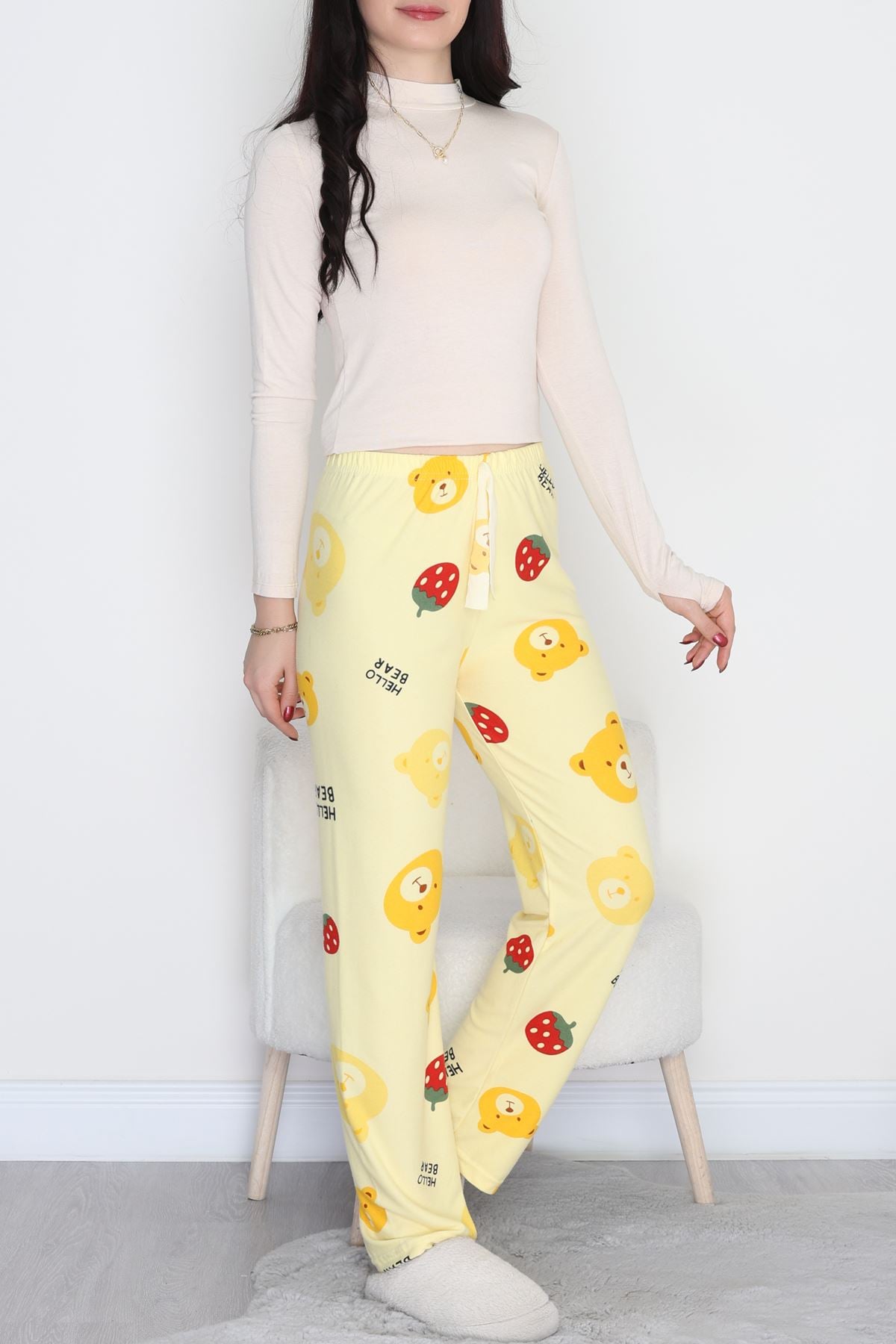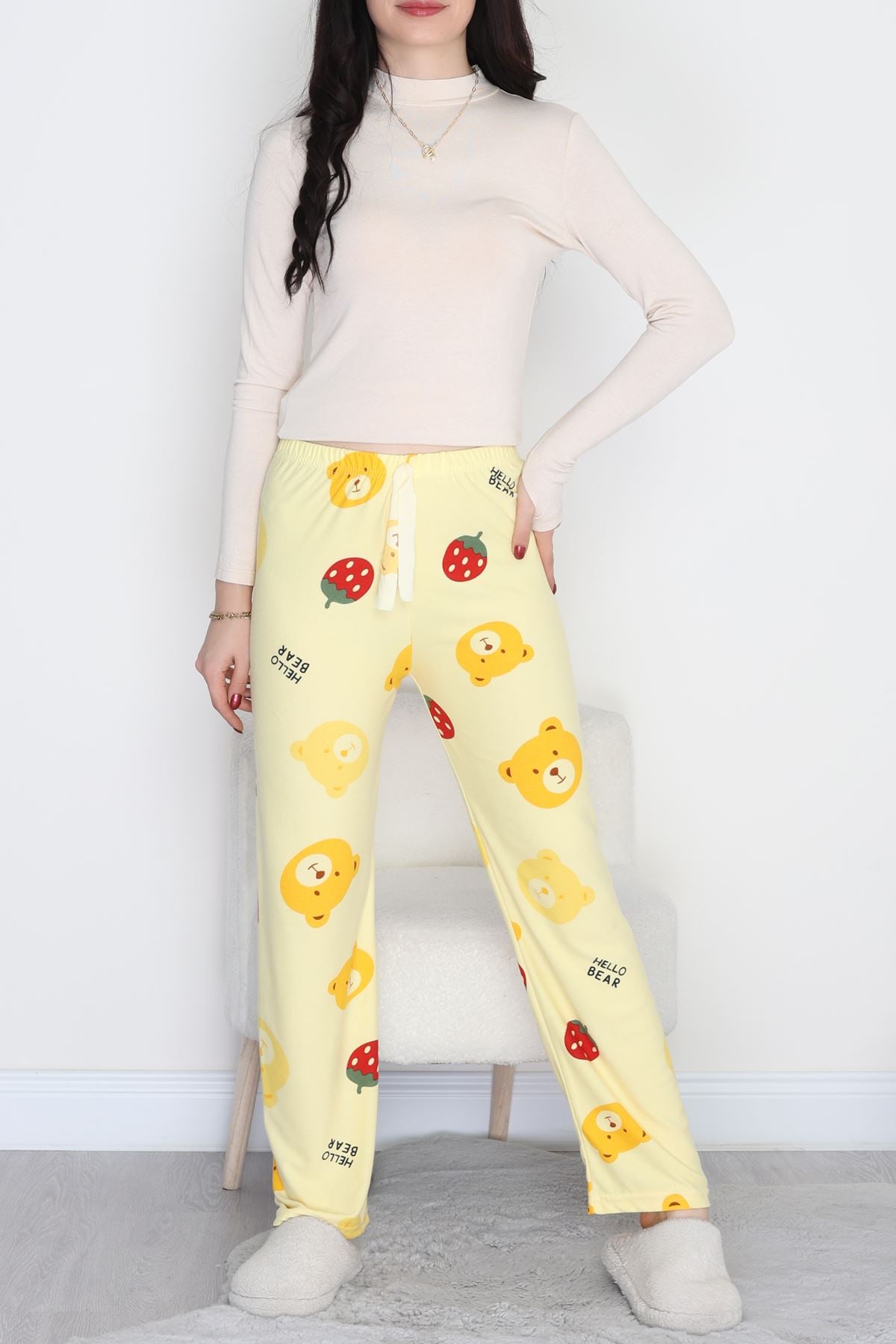 "Desenli Süet Pijama Altı, rahat kesimi ve yumuşak dokusuyla evde konforu hissetmeniz için ideal. Yumuşak süet dokusu sayesinde cildinizle uyumlu bir his sunar. Esnek yapısı gün boyu rahat hareket etmenizi sağlar ve günlük kullanım için idealdir. Evde dinlenme zamanları için mükemmel bir tercih olup, keyifli anlarınızda konfor sağlar. Ürün, uzun süreli kullanım için uygun bakımı yapıldığında dayanıklılığını korur. Soğuk suyla hassas yıkama önerilir. Spor bir üstle veya basic bir tişörtle kombinlenerek hem şık hem rahat bir görünüm yakalayabilirsiniz. "