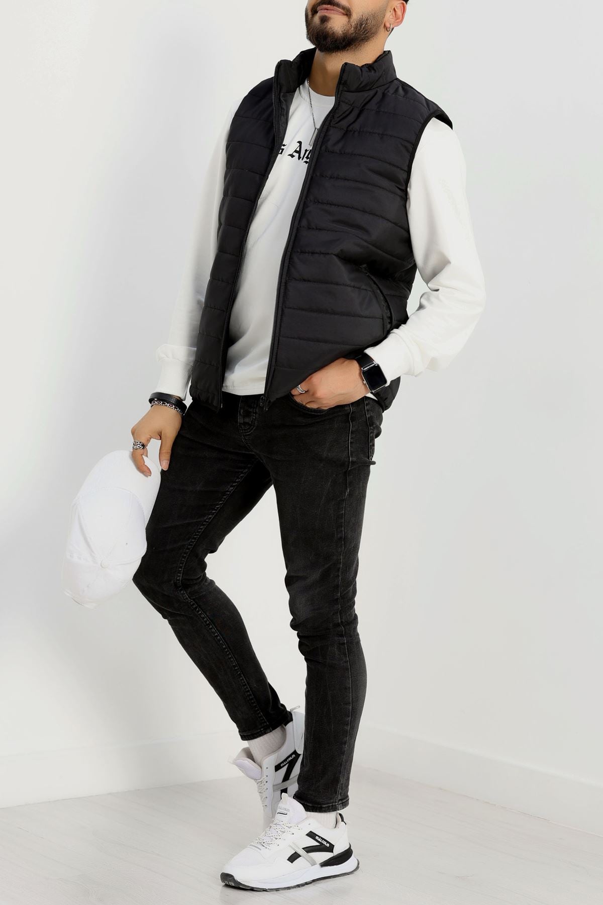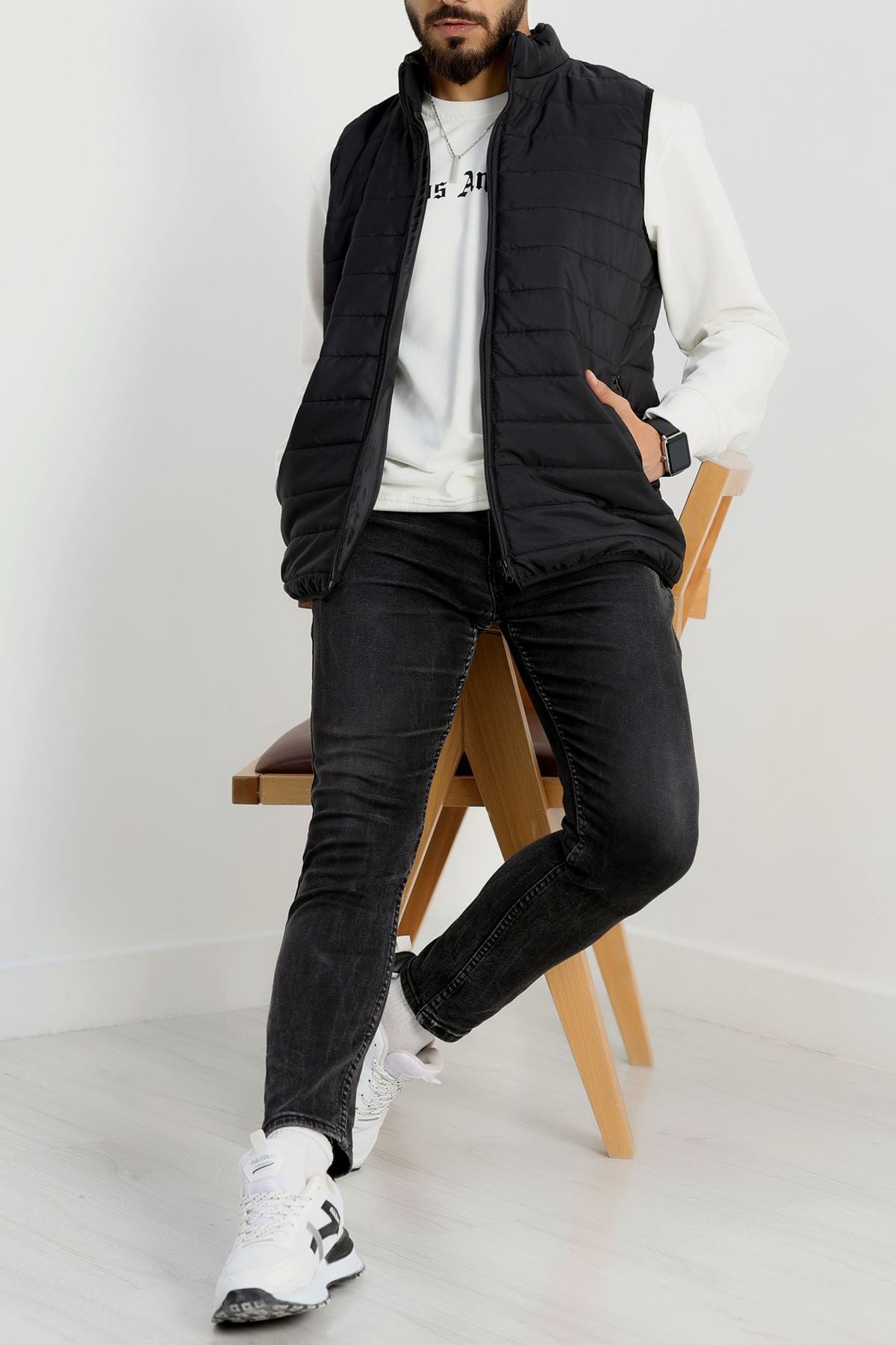 Dik Yaka Kapitone Erkek Yelek Siyah - 42511.1970.