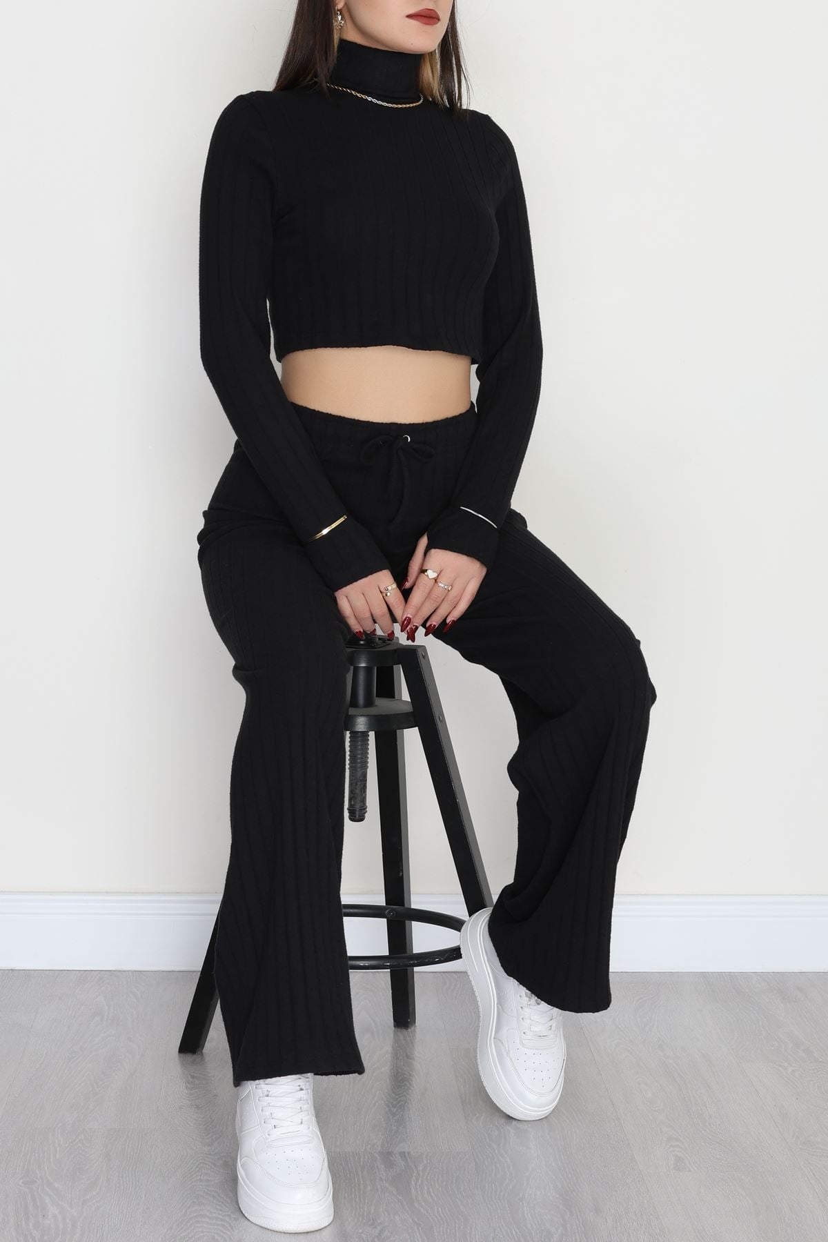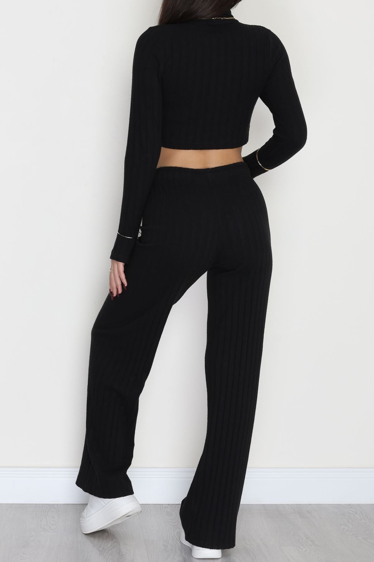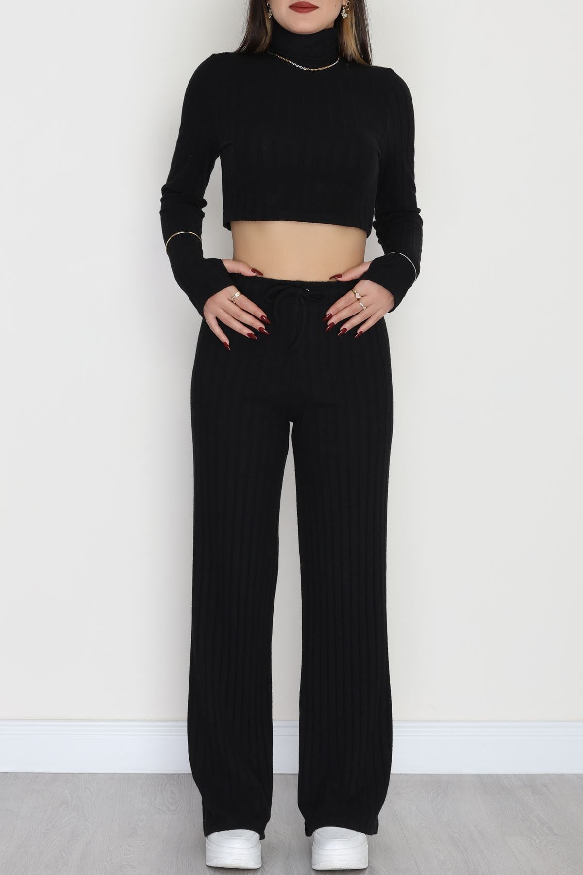 Dik Yaka Likralı Raporlu İnterlok Takım Siyah - 90972.1748.