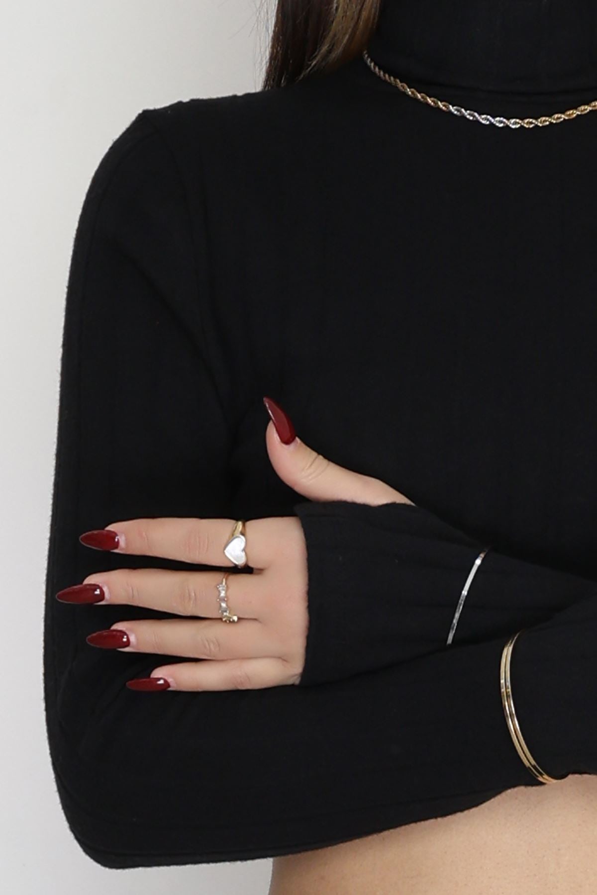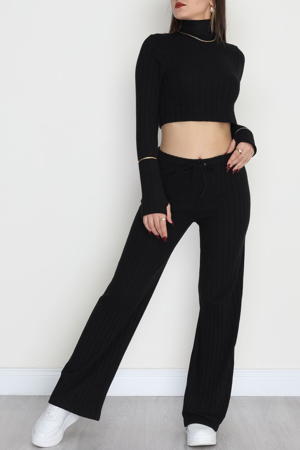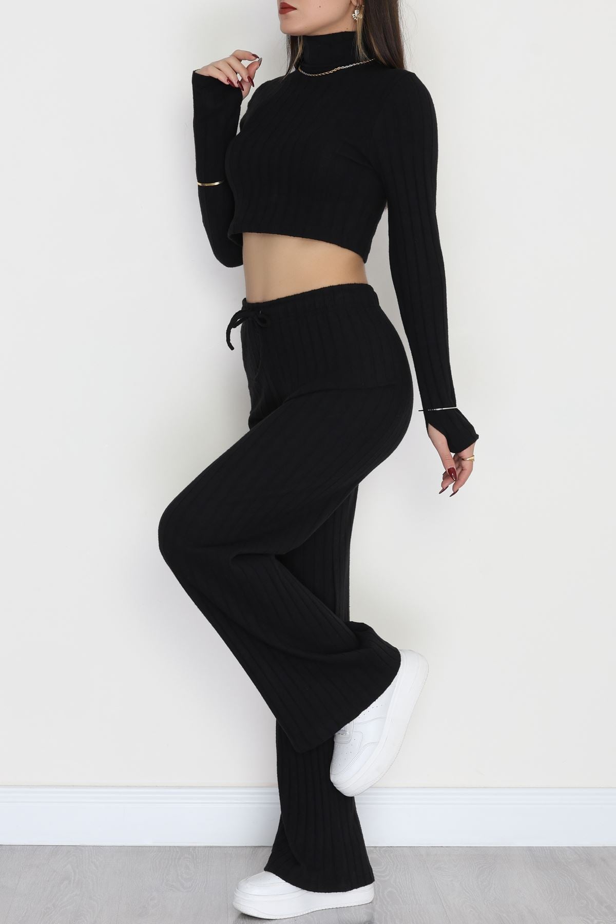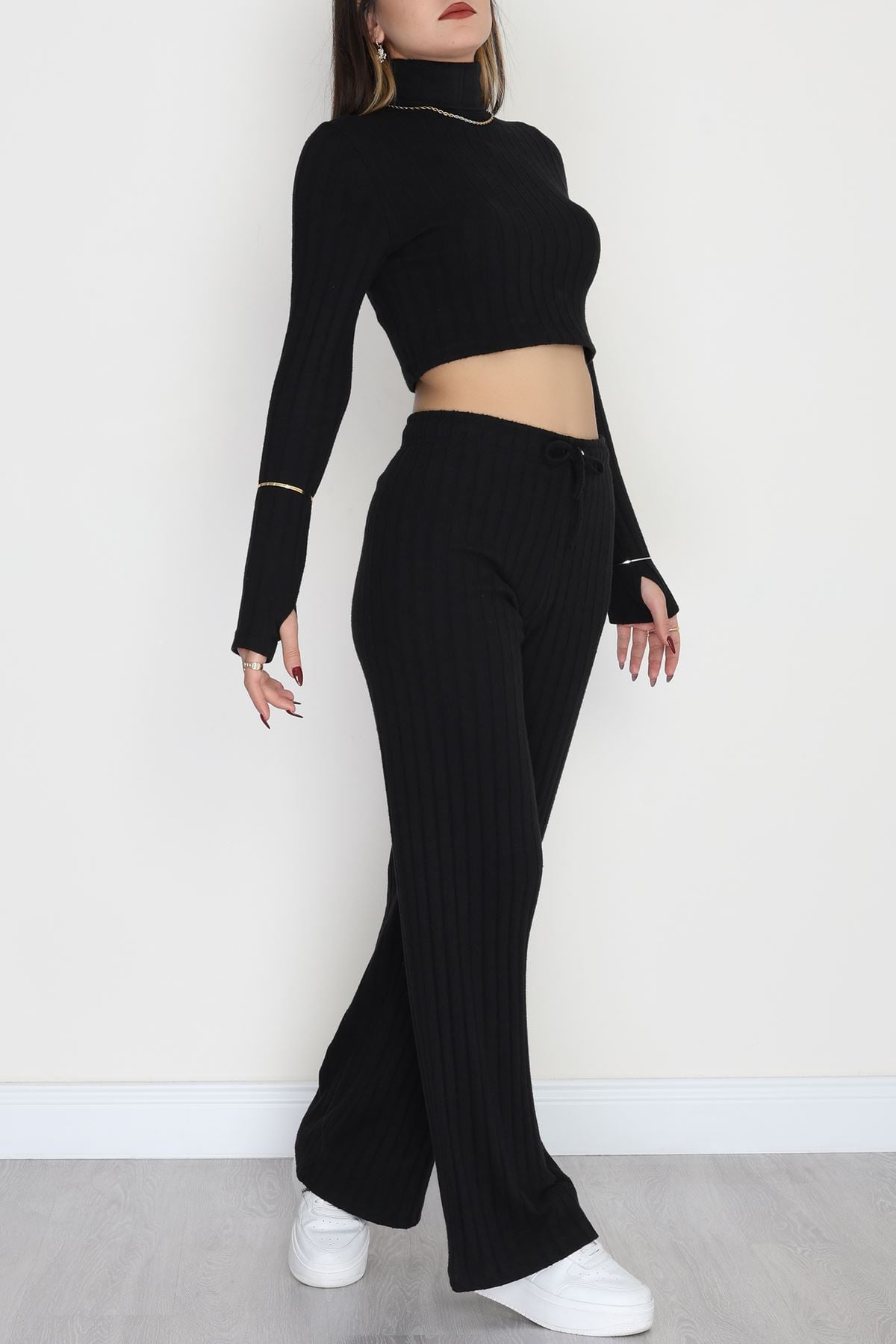 Dik Yaka Likralı Raporlu İnterlok Takım Siyah - 90972.1748.