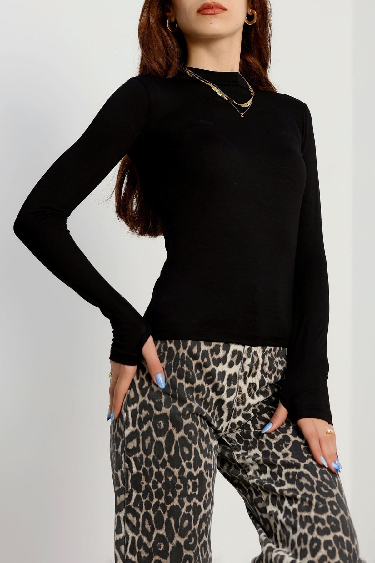 Dik Yaka Parmak Geçmeli Viskon Body Siyah - 40076.599.