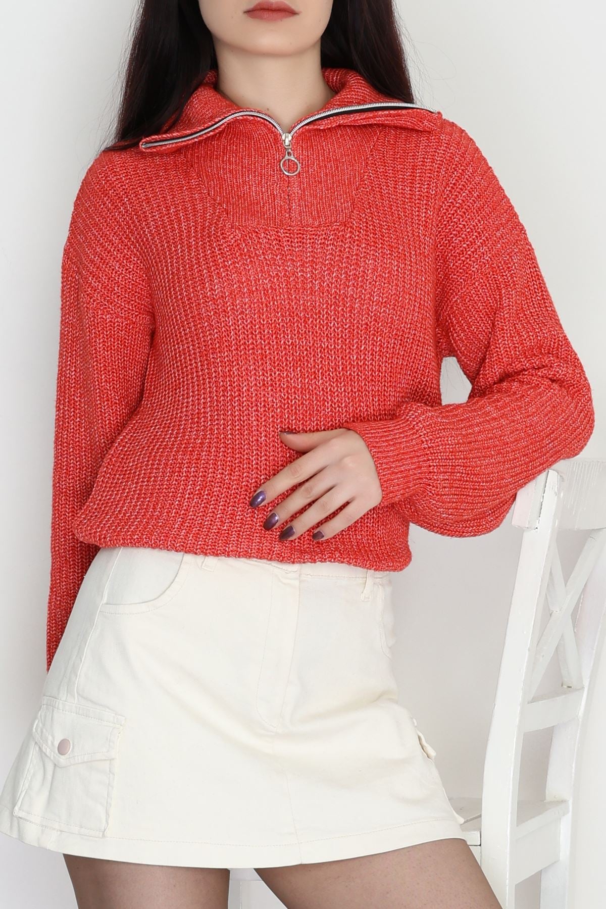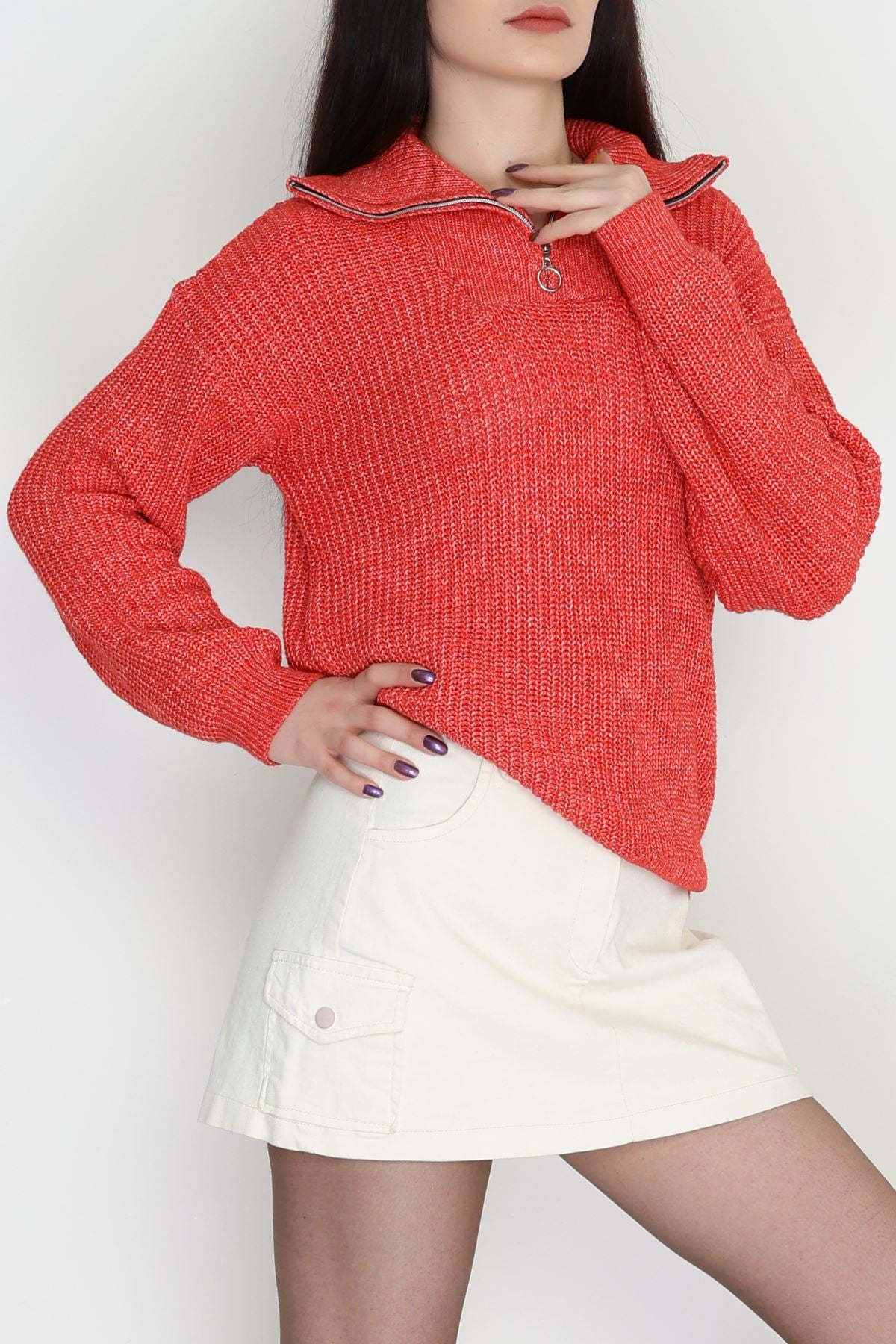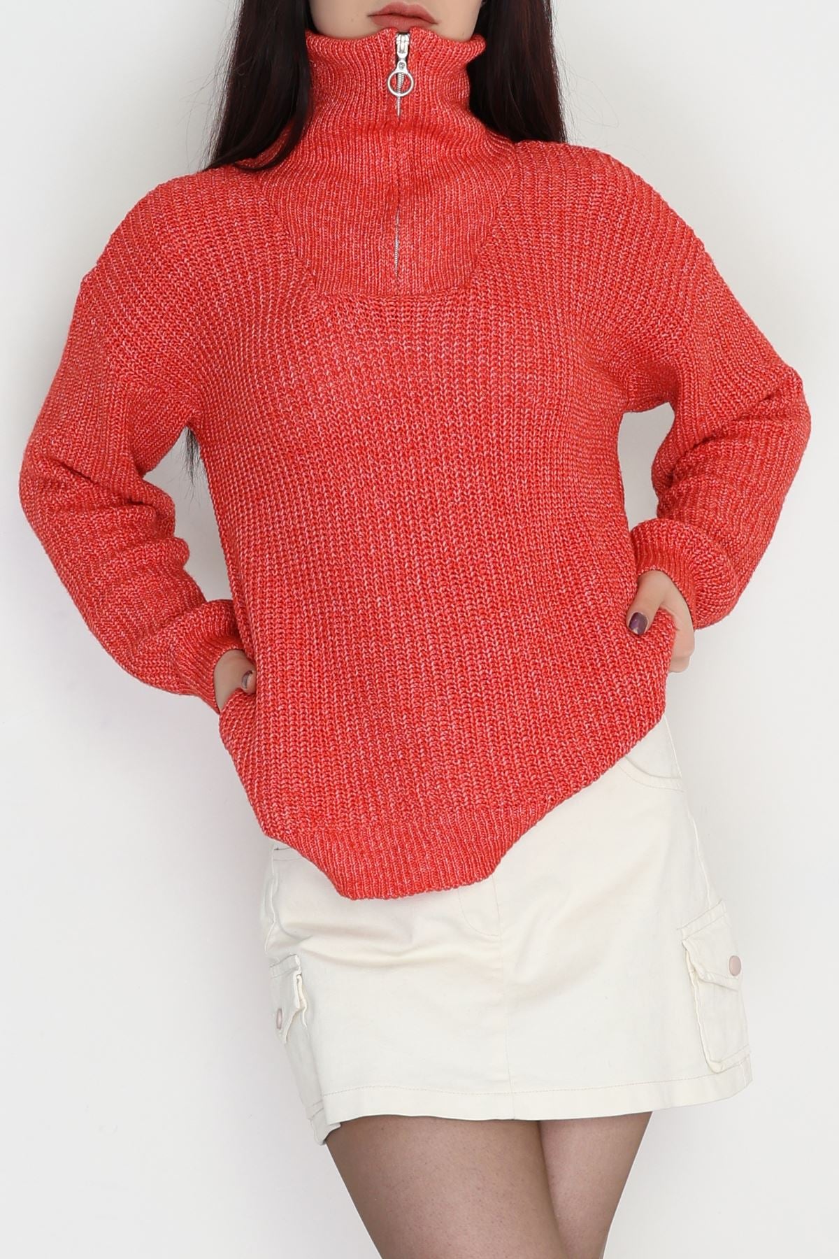 Dik Yaka Triko Kırmızı - 31055.1766.