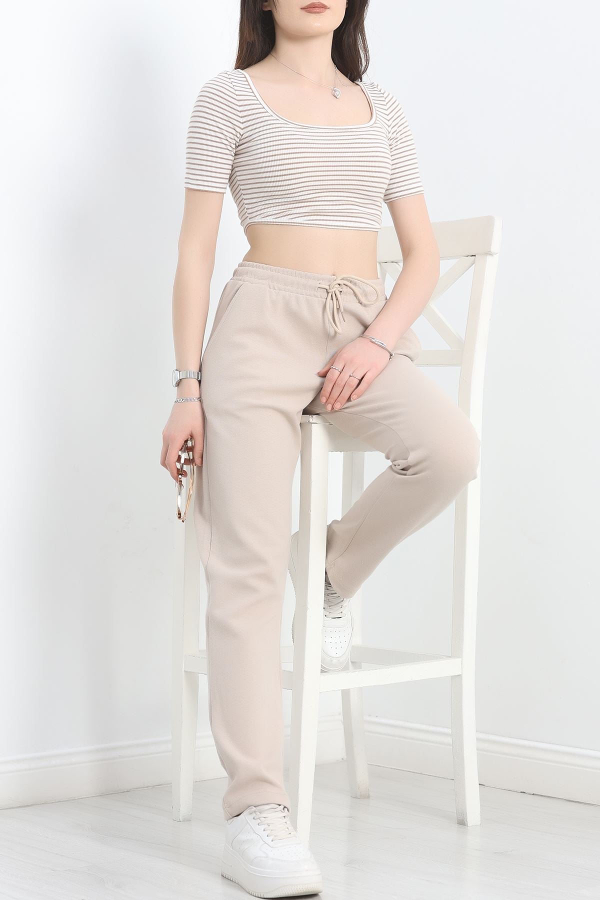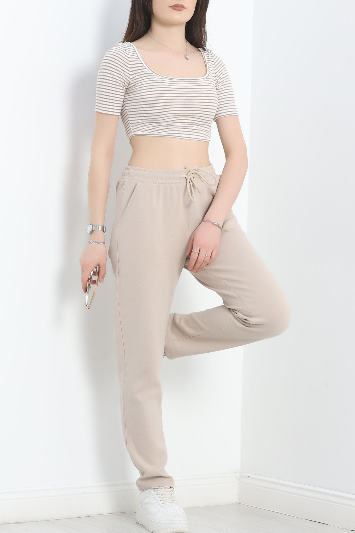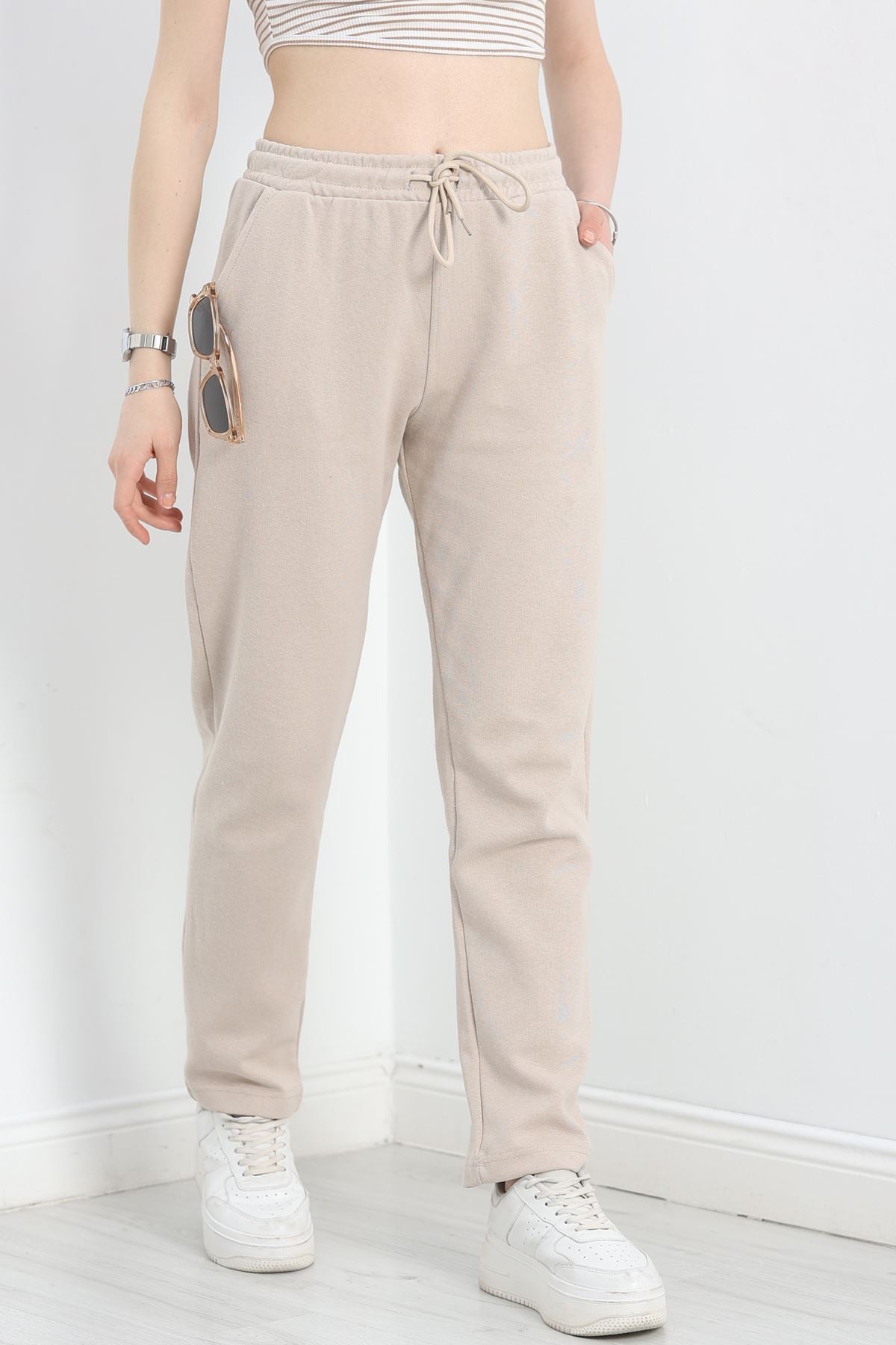 Double Face Kumaş Eşofman Altı Bej - 40554.1431.