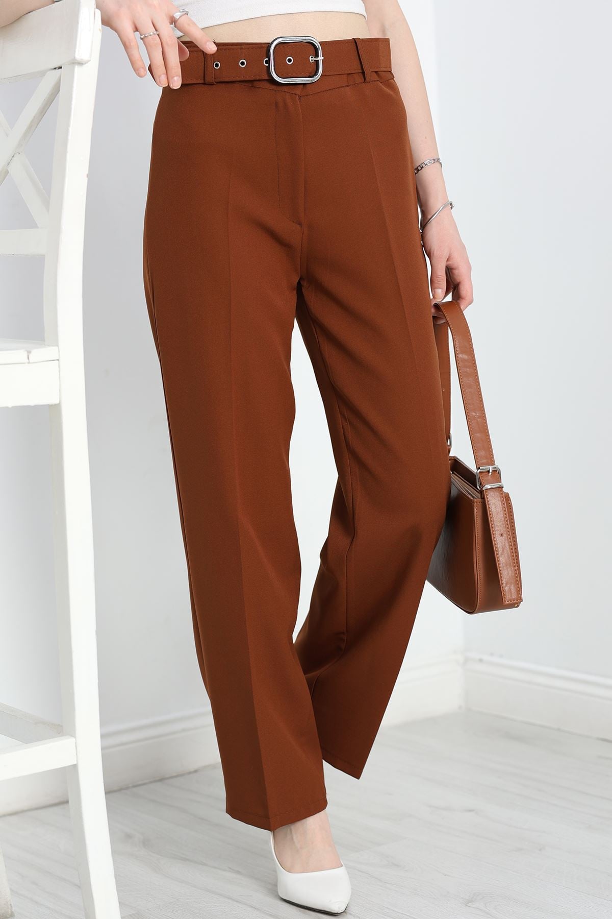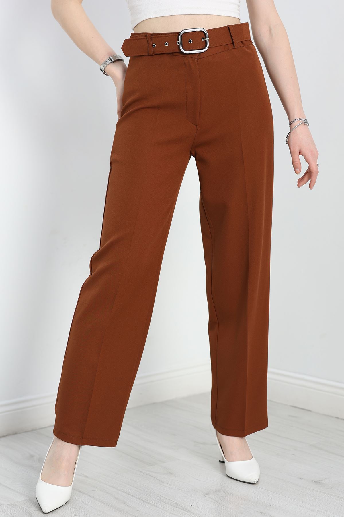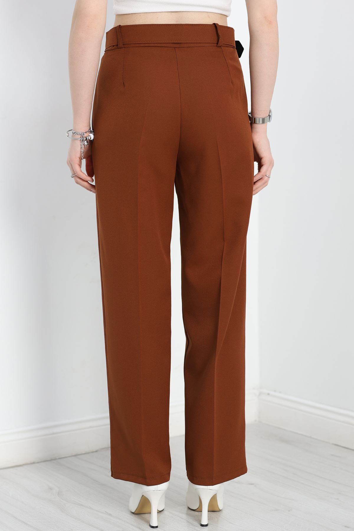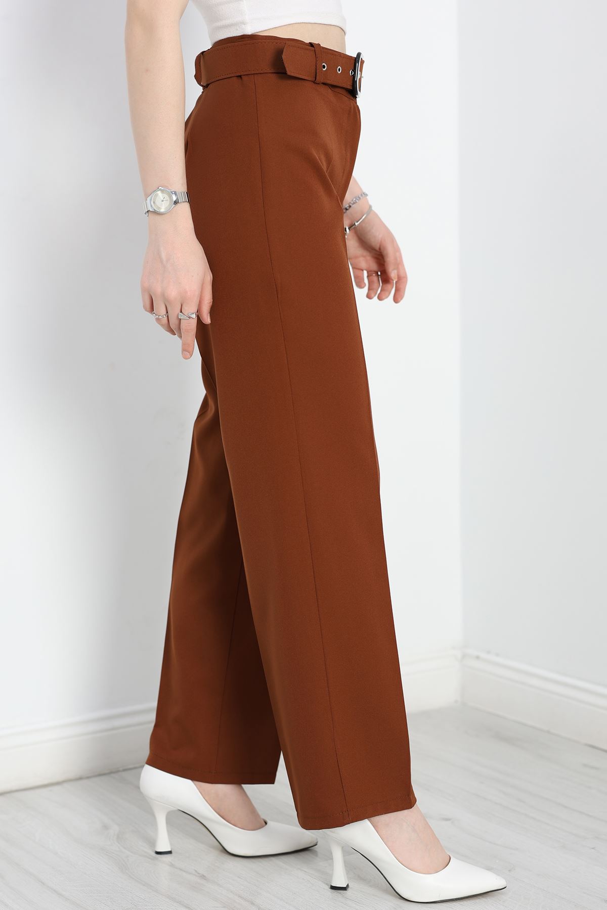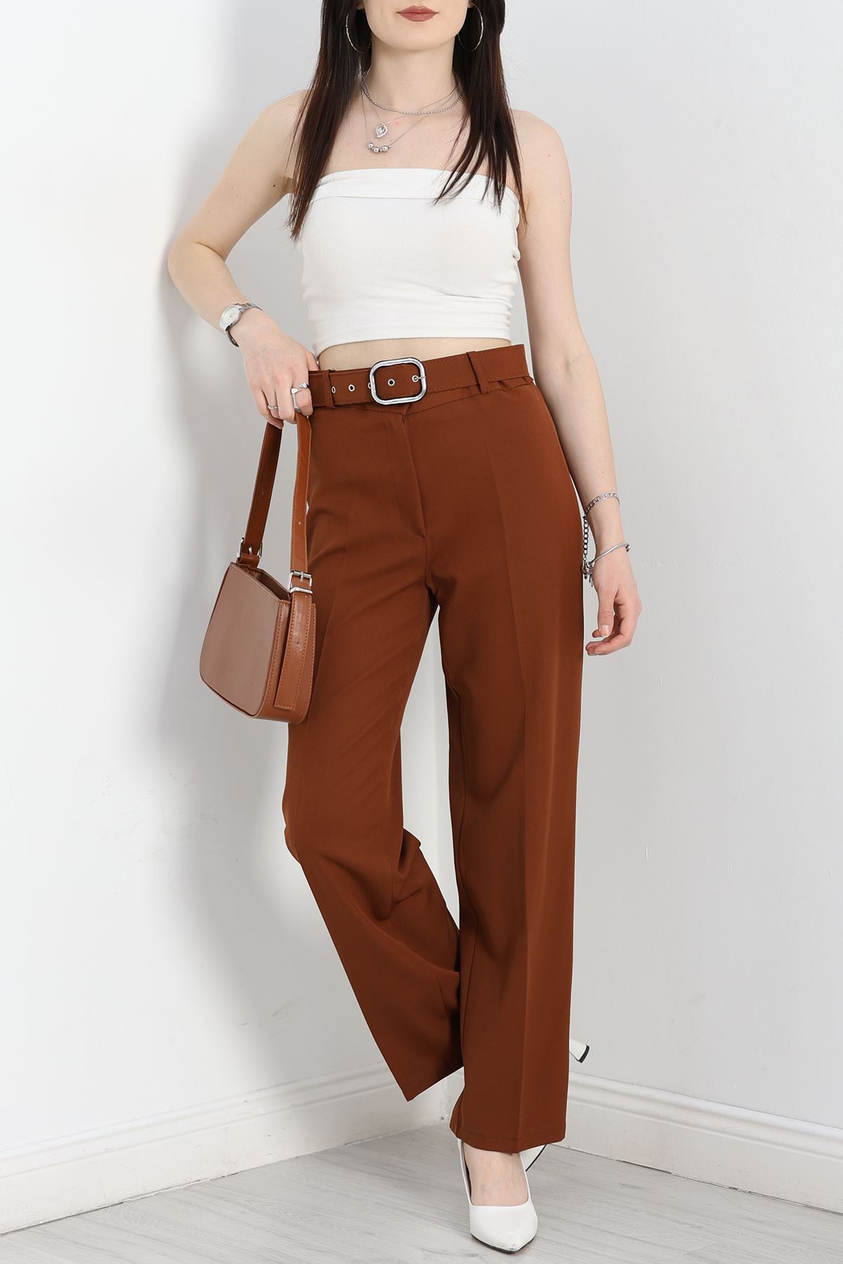 Double Kumaş Kemerli Bol Paça Pantolon Acıkahve - 20903.1397.