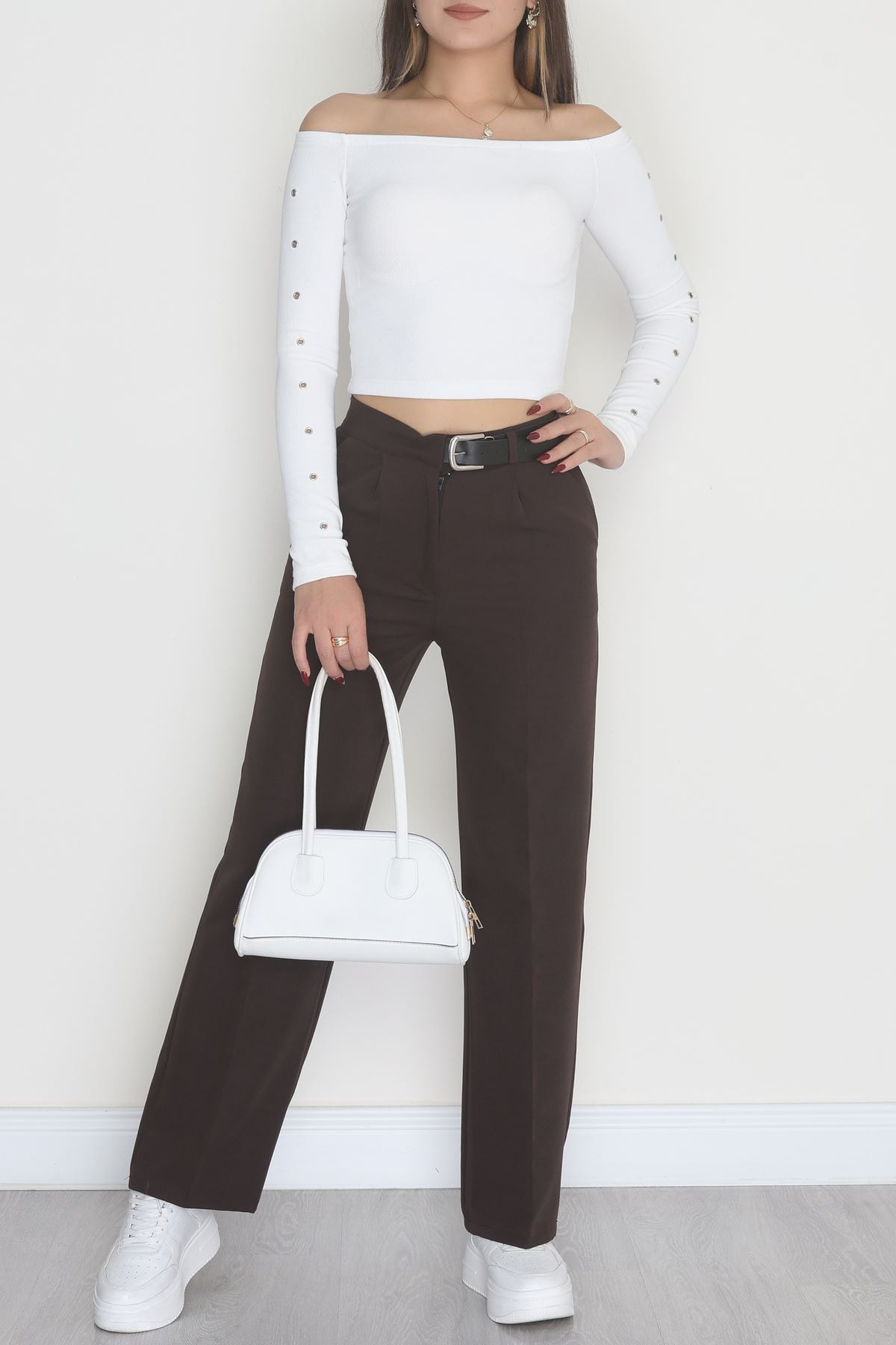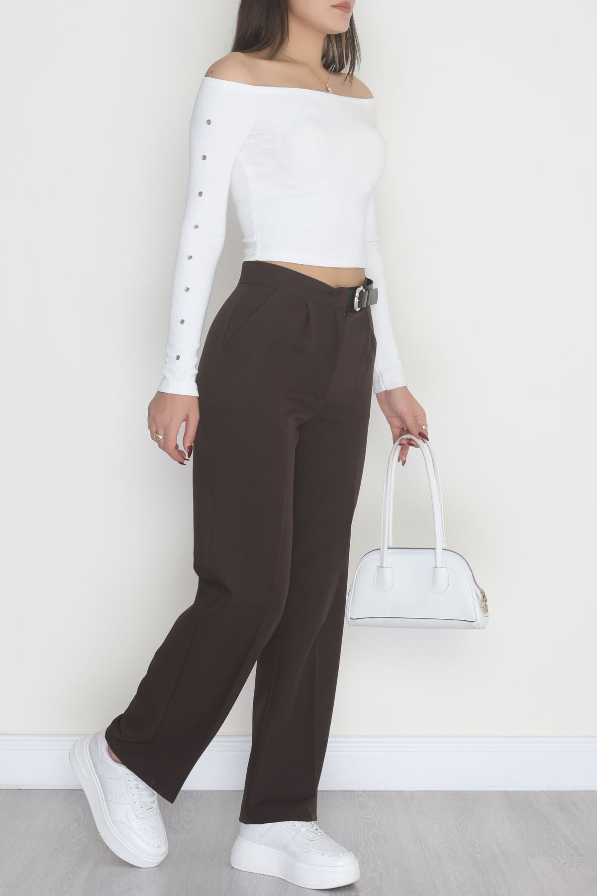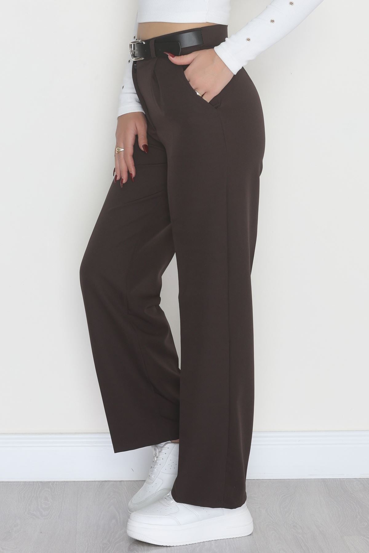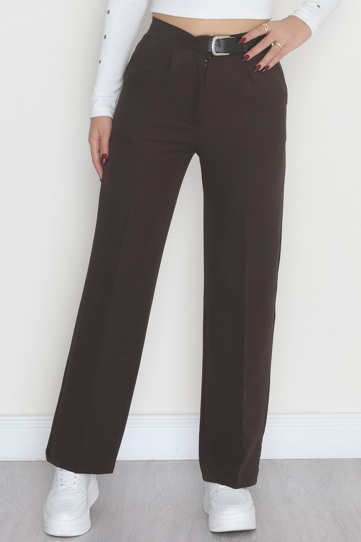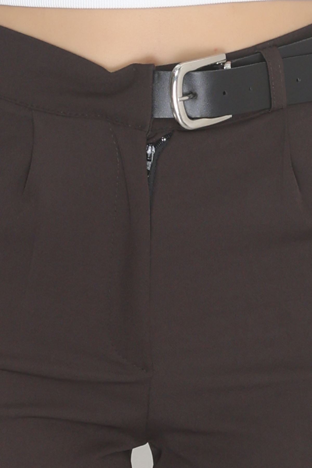 Double Kumaş Kemerli Palazzo Pantolon Koyukahve - 30760.1397.