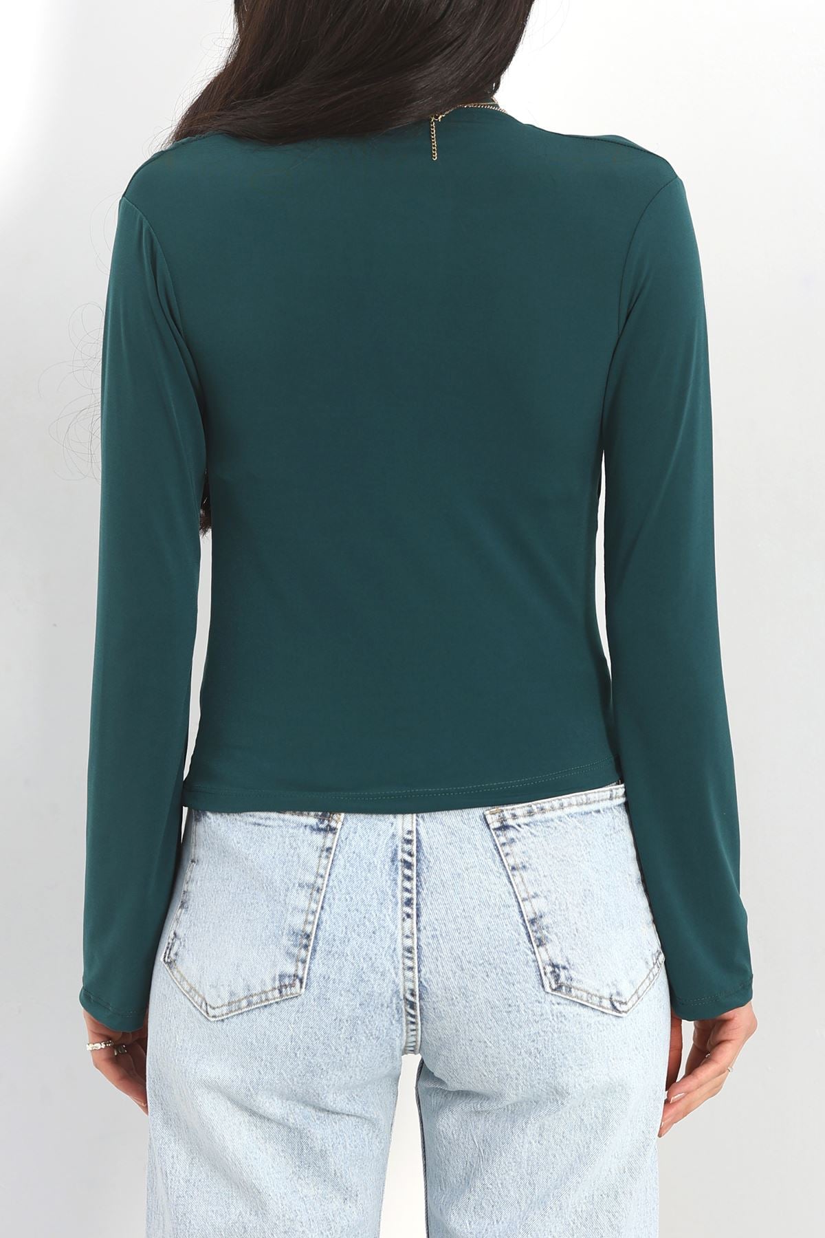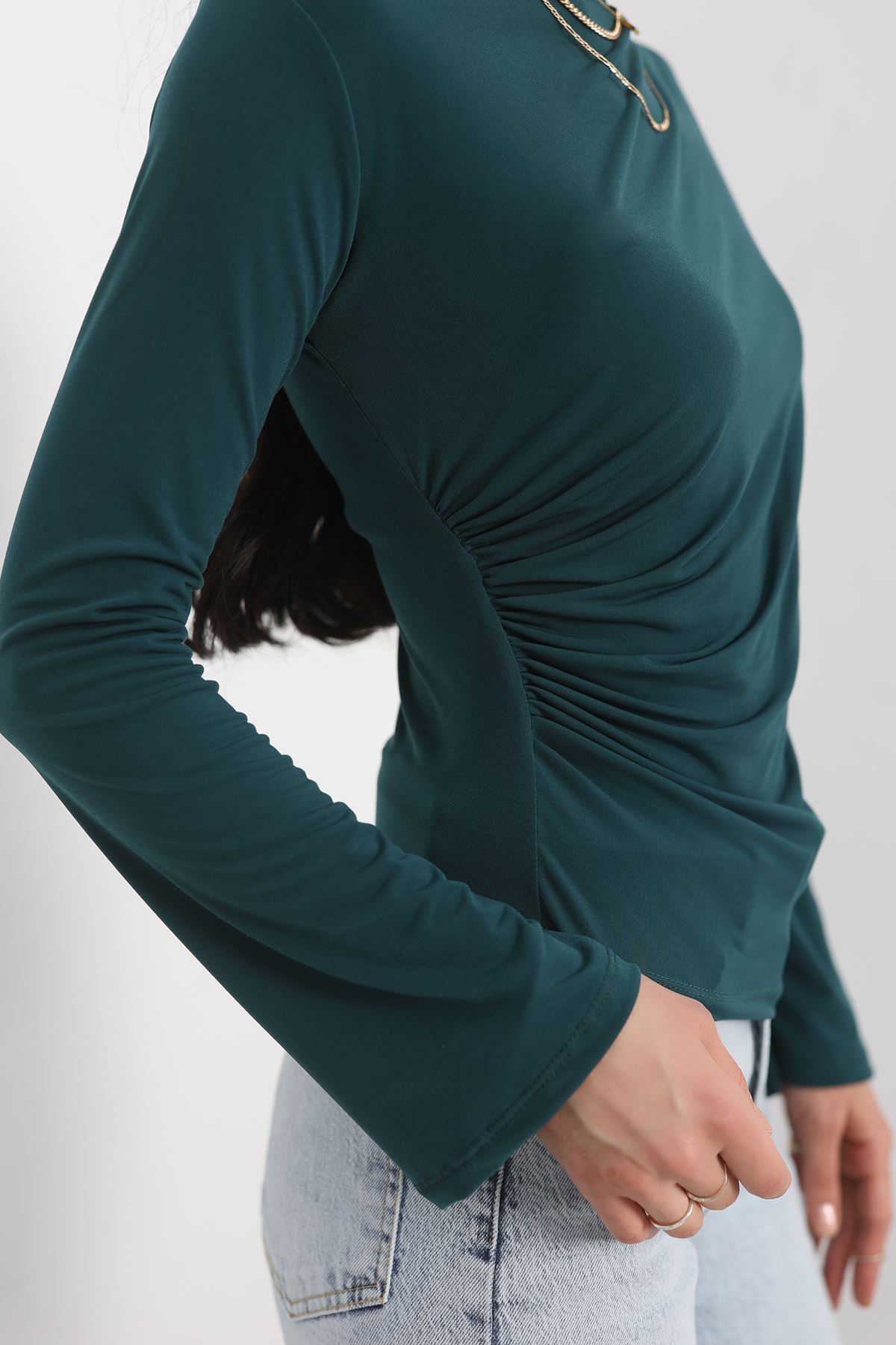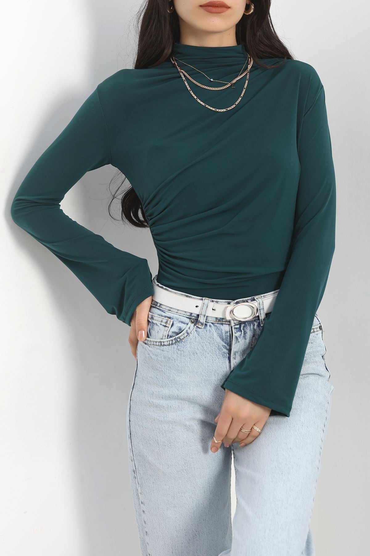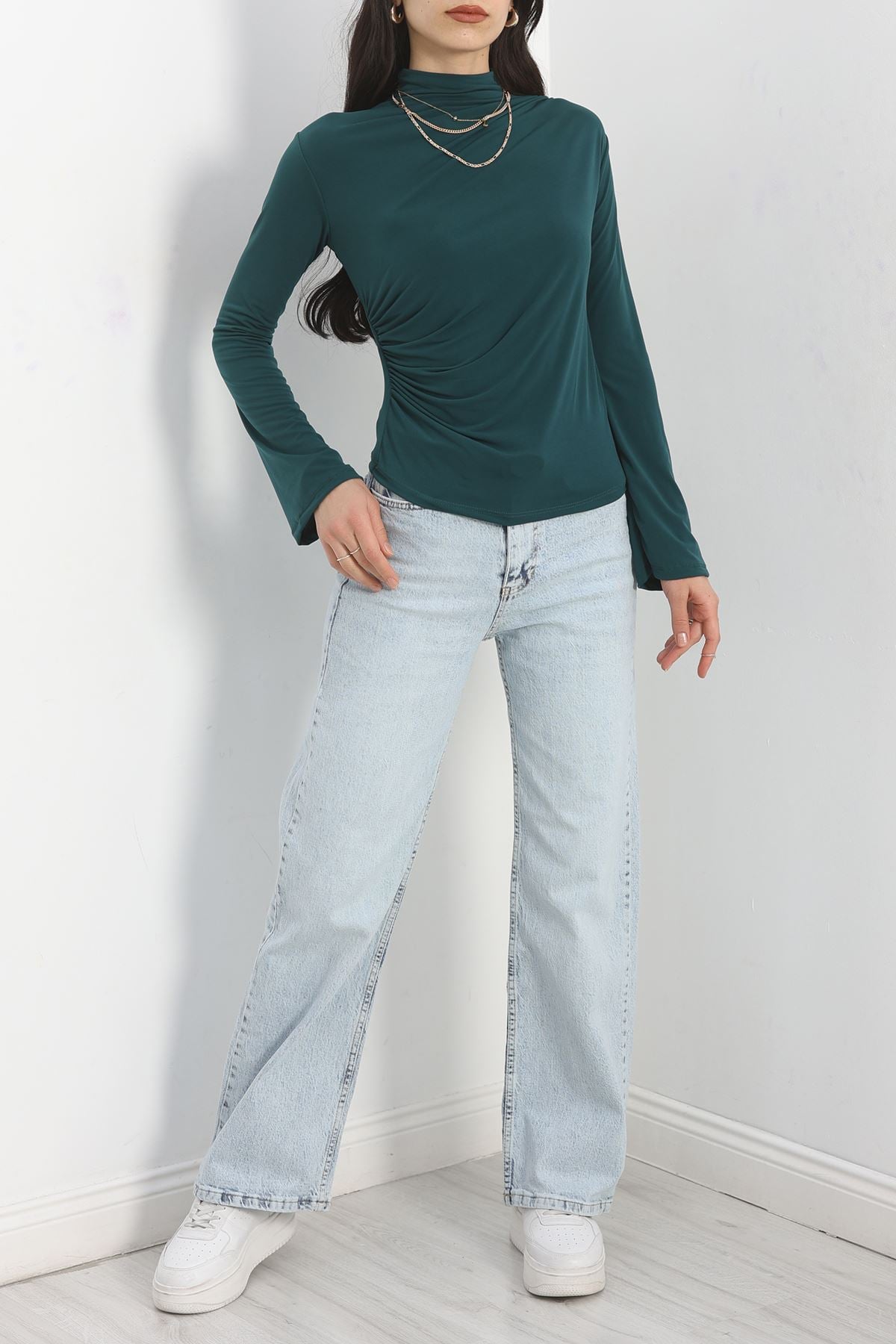 Drape Detay İspanyol Kol Bluz Zümrüt - 40288.1949.