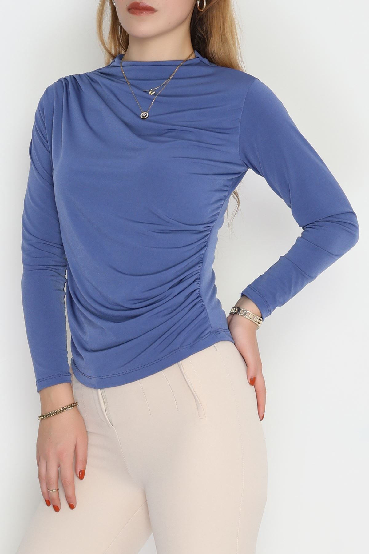 Drape Detay Sandy Bluz İndigo - 70698.1949.